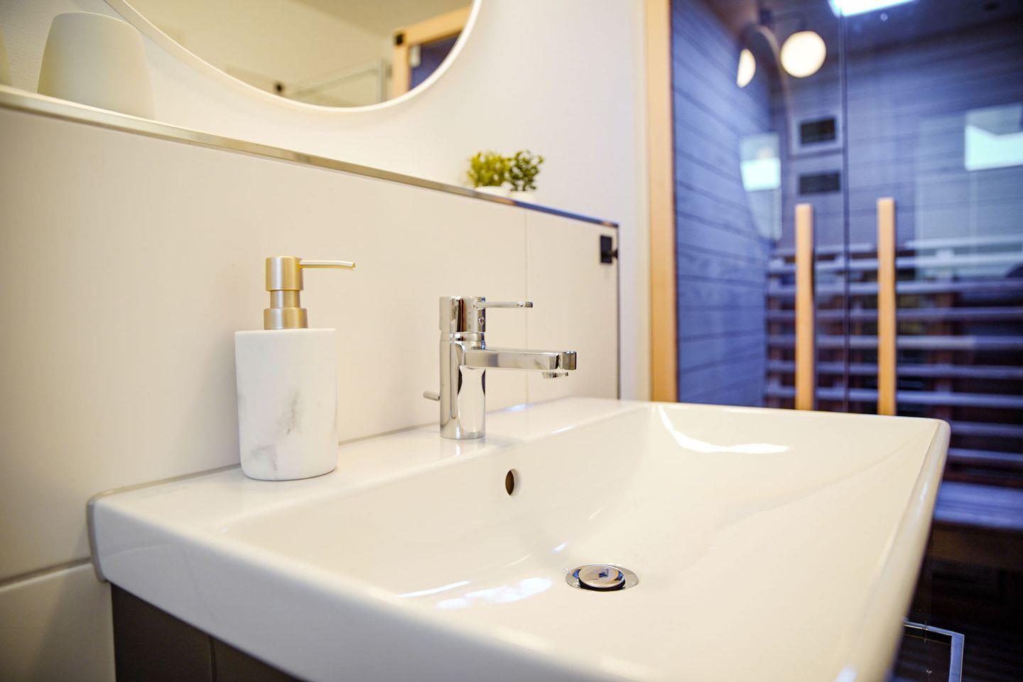 - Badezimmer mit ebenerdiger Dusche, Waschmaschine und kostenfreier Nutzung einer Infrarotkabine.