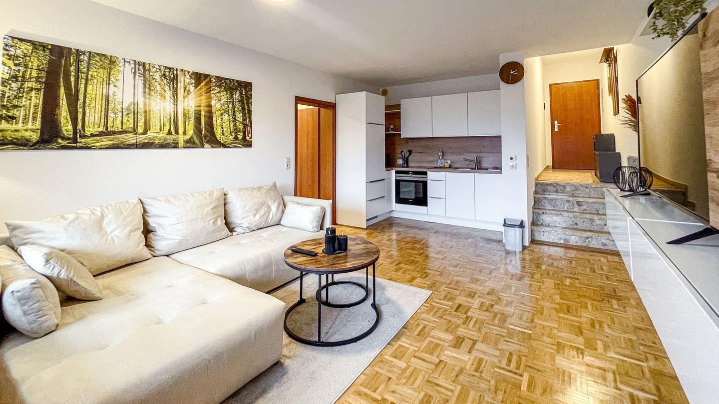 - Wohnbereich mit einem bequemen ausziehbaren Schlafsofa, Flachbild-TV