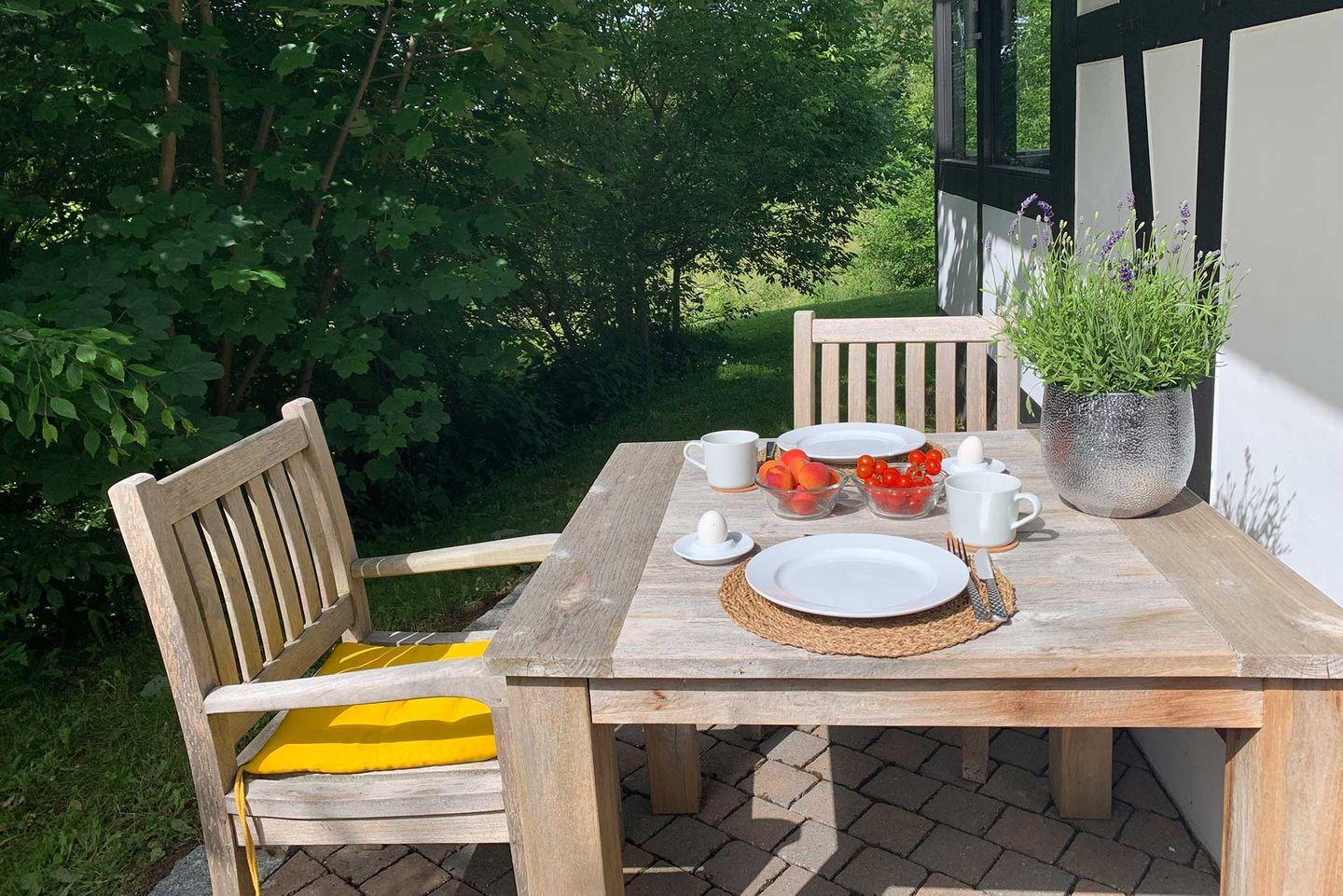 Idyllisch am Dorfrand gelegen und umgeben von Wiesen, Wald und einem sanften Bach.