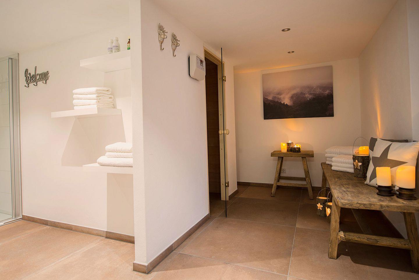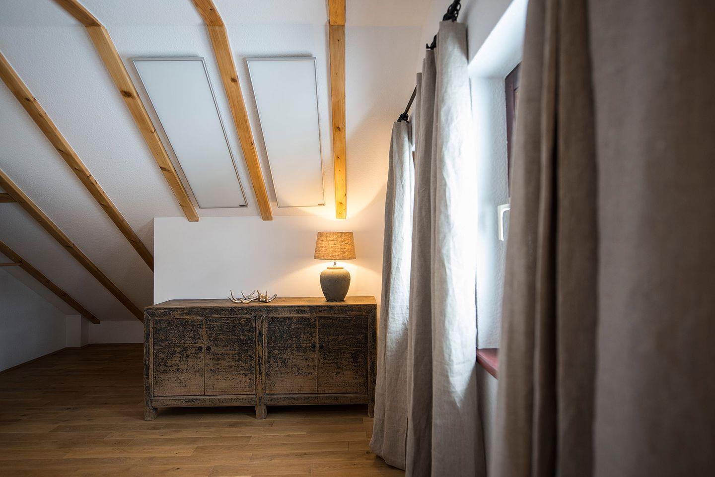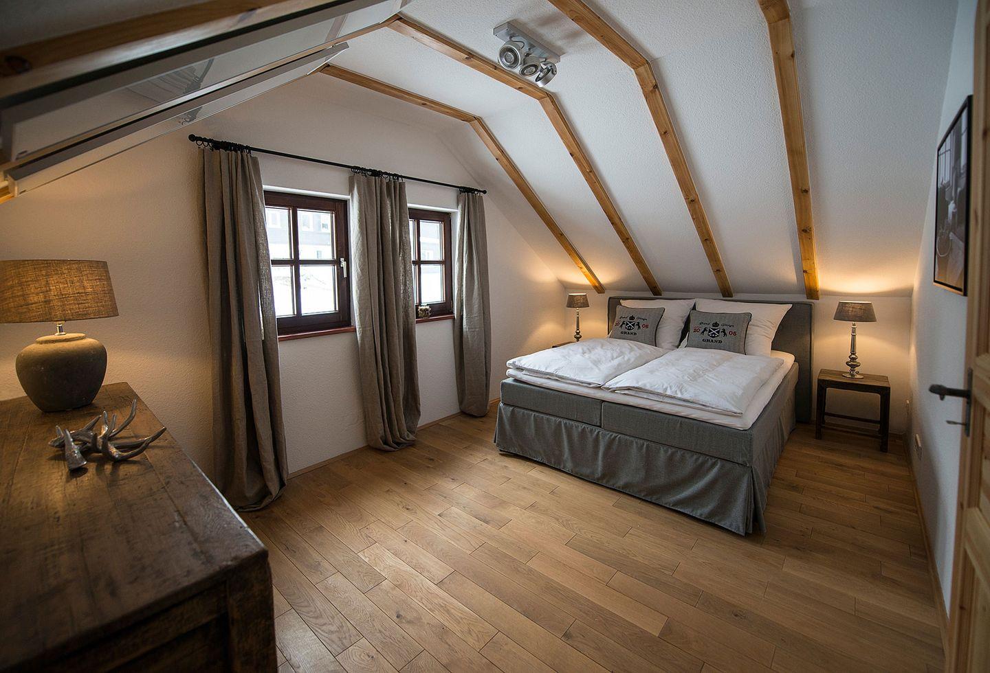 Entspannen Sie sich nach der Sauna eingehüllt in Decken vor dem Kamin. Genießen sie danach eine erholsame Nachtruhe in den beiden liebevoll mit hochwertigen Boxspringbetten ausgestatteten Schlafzimmern. Für zwei weitere Personen besteht die Möglichkeit, auf der Galerie auf einem Schlafsofa zu übernachten.
