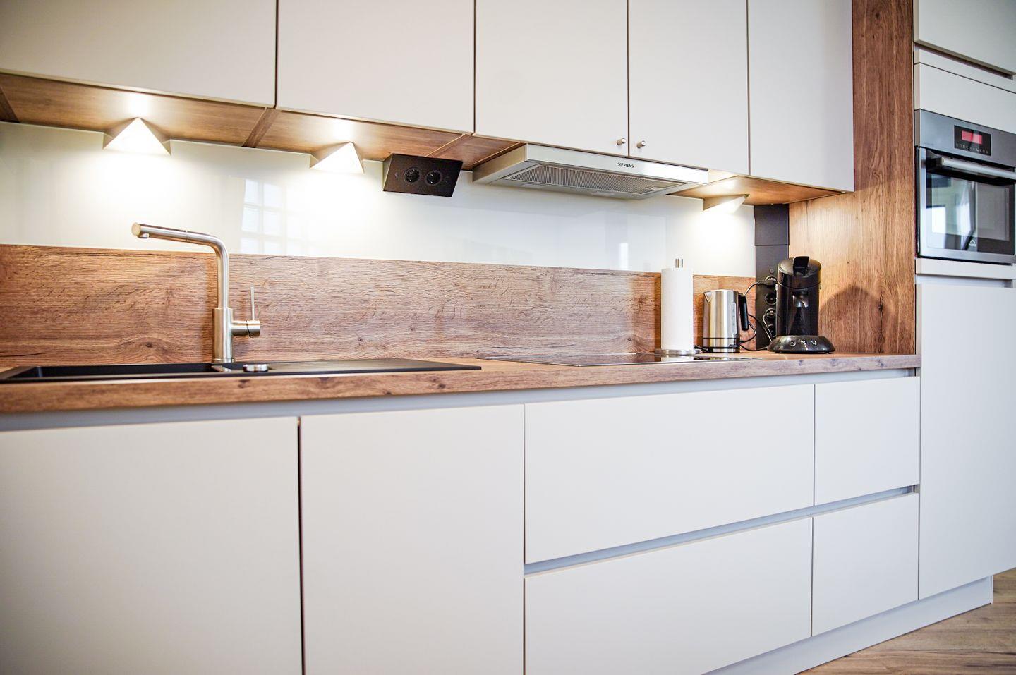 Die Wohnung befindet sich im 5. Stock, das bequem mit einem Aufzug erreichbar ist. Das helle Wohnzimmer ist der ideale Ort, um nach einem erlebnisreichen Tag zu entspannen. Hier erwartet Sie eine gemütliche Sofaecke, die zum Entspannen einlädt, und ein Esstisch, an dem Sie gemeinsam speisen und den Tag Revue passieren lassen können. Die offene Küche ist modern ausgestattet und verfügt über alle notwendigen Utensilien, um ihr Lieblingsgericht zuzubereiten. Genießen Sie den Komfort eines Backofens, einer Spülmaschine und einer Kaffeemaschine.