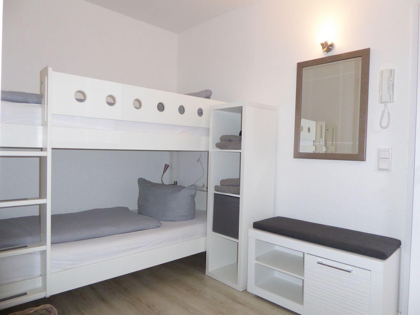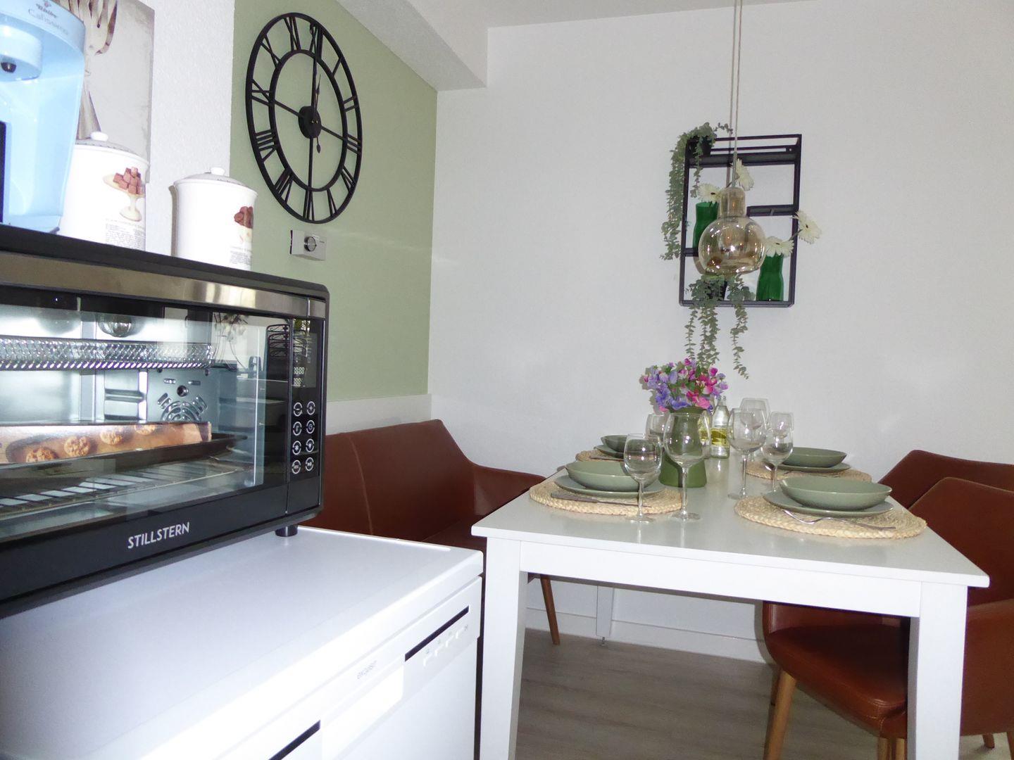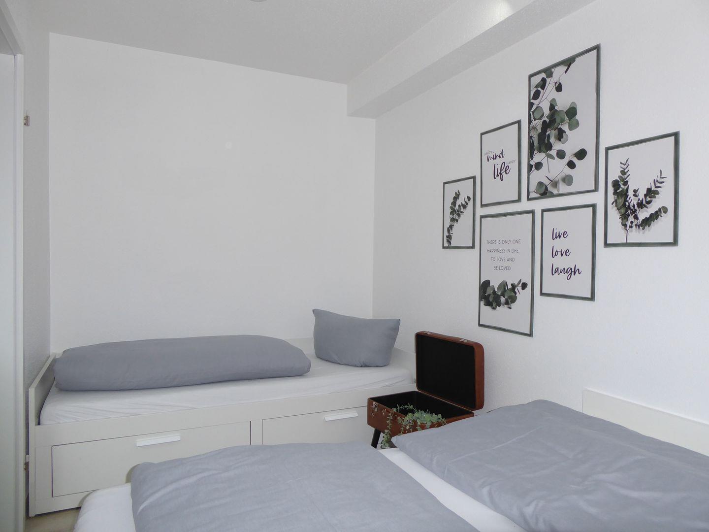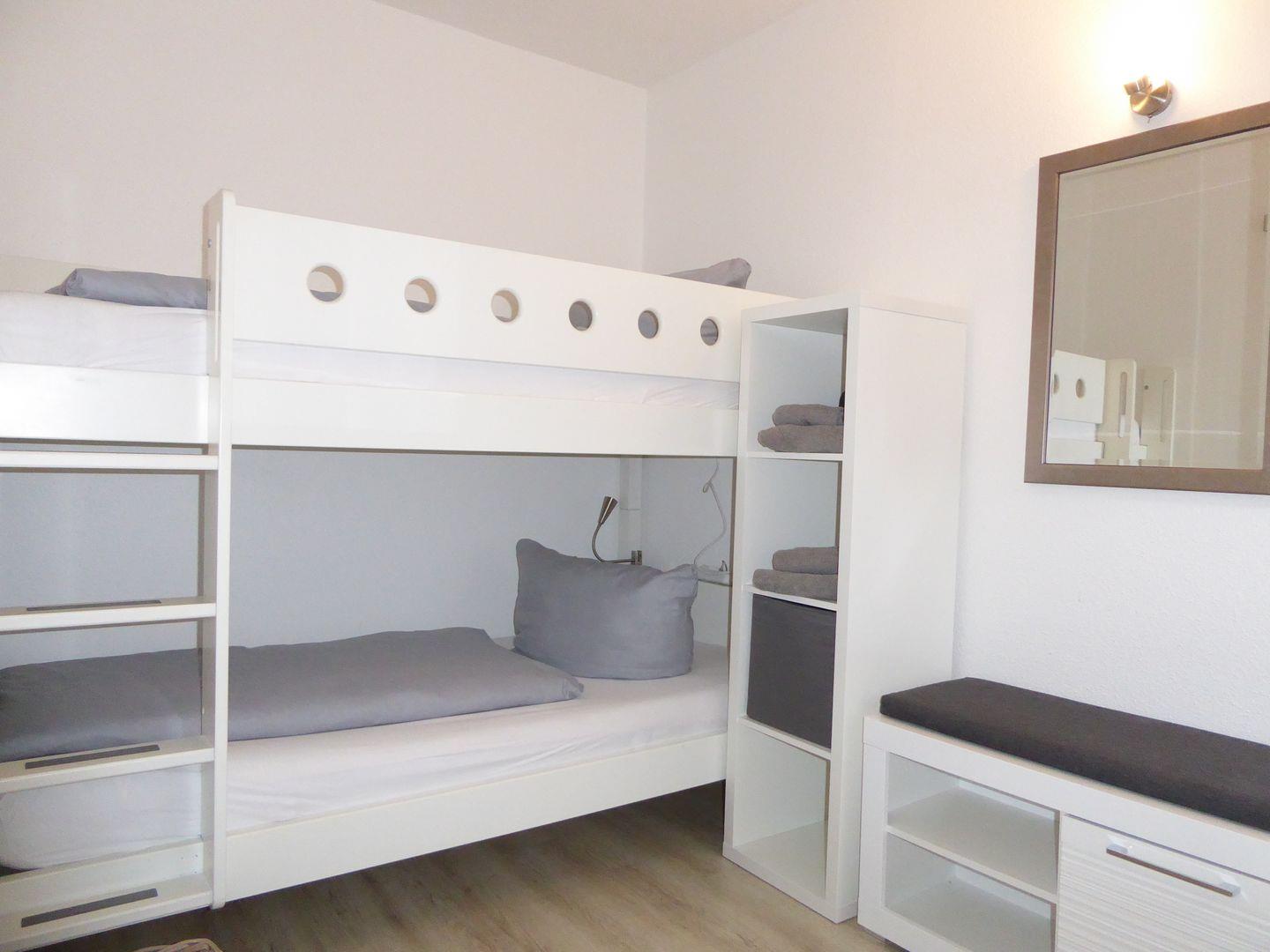 Die Wohnung ist sehr stylisch und gemütlich eingerichtet. Der offene Wohn /Essbereich ist perfekt zum verweilen mit der Familie oder Freunden. Die Küche ist mit allem wichtigen ausgestattet. Im ersten Schlafzimmer befindet sich ein Etagenbett. Im hinteren Schlafzimmer befindet sich ein Doppelbett und ein Einzelbett.