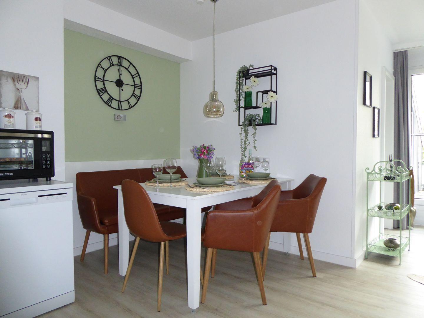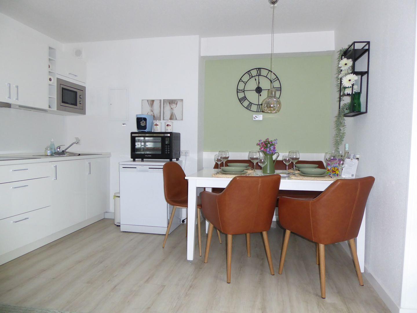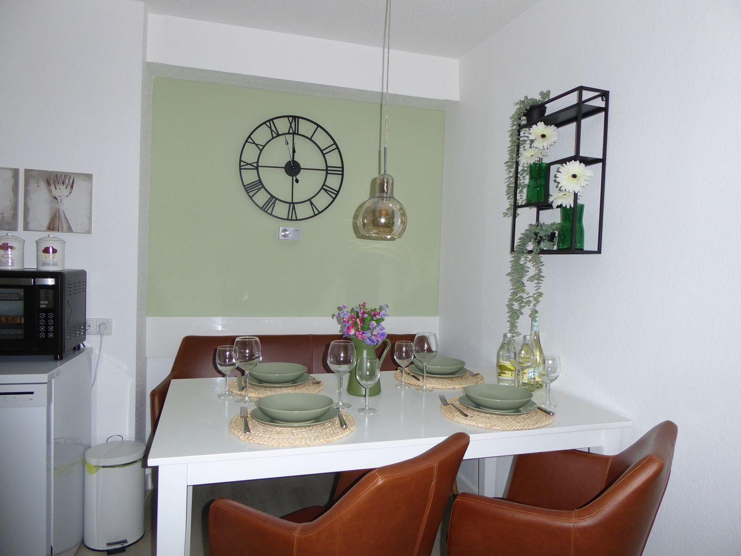 Die Wohnung ist sehr stylisch und gemütlich eingerichtet. Der offene Wohn /Essbereich ist perfekt zum verweilen mit der Familie oder Freunden. Die Küche ist mit allem wichtigen ausgestattet. Im ersten Schlafzimmer befindet sich ein Etagenbett. Im hinteren Schlafzimmer befindet sich ein Doppelbett und ein Einzelbett.