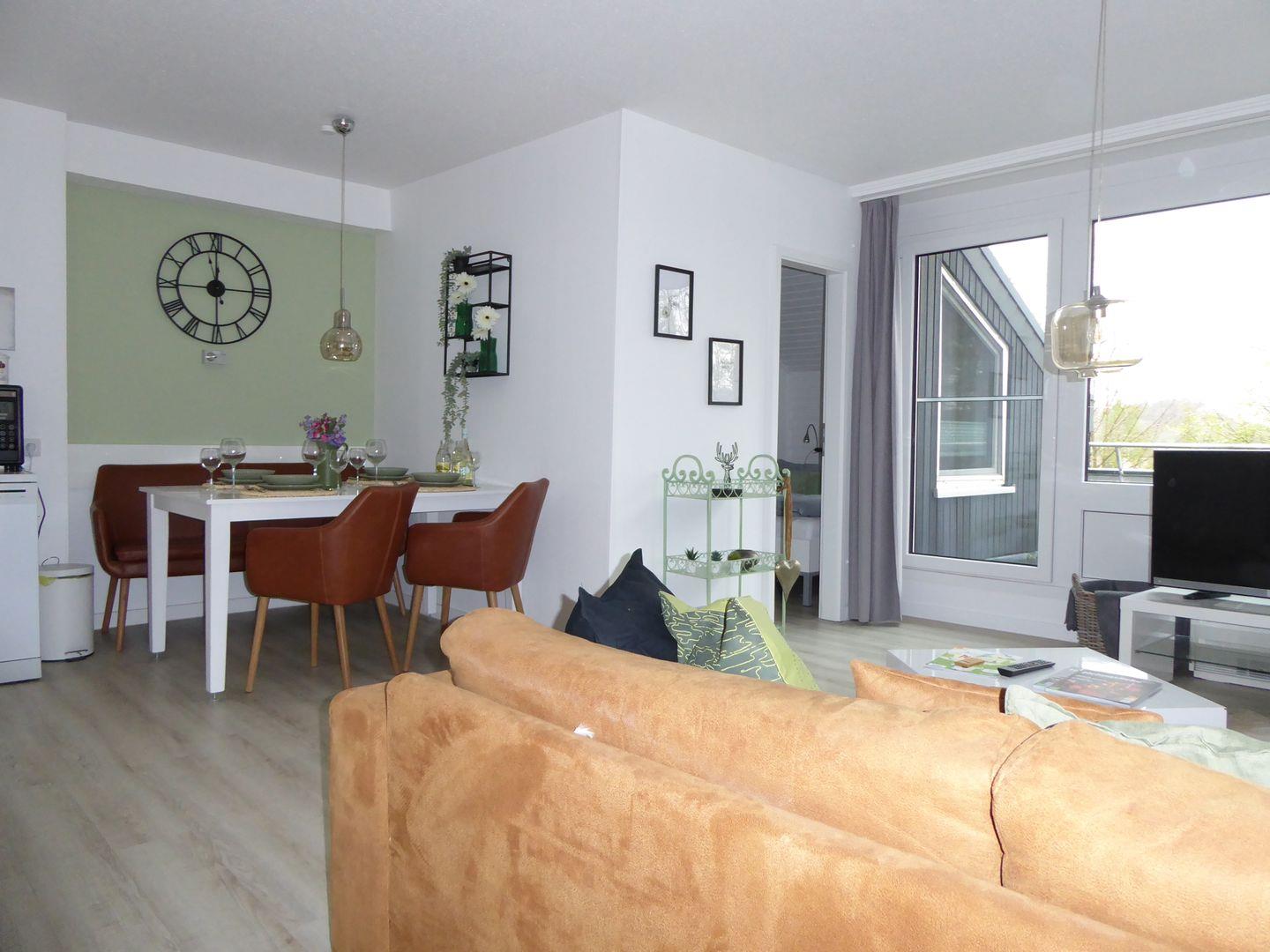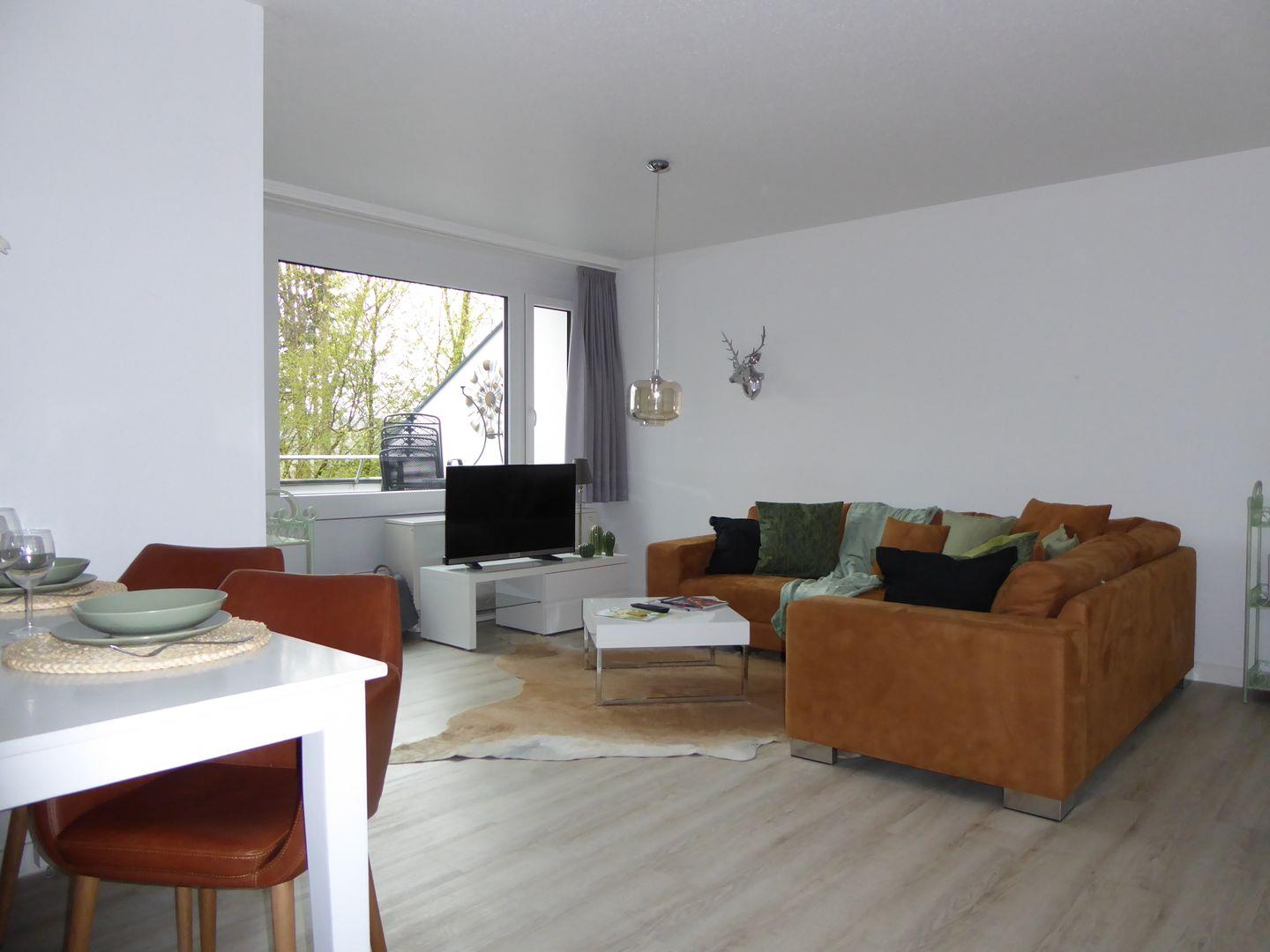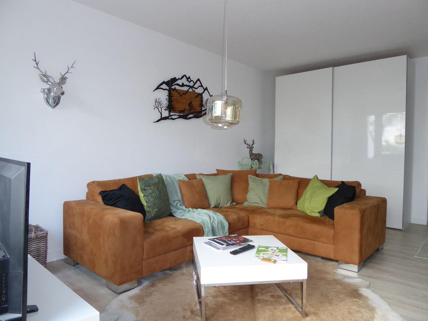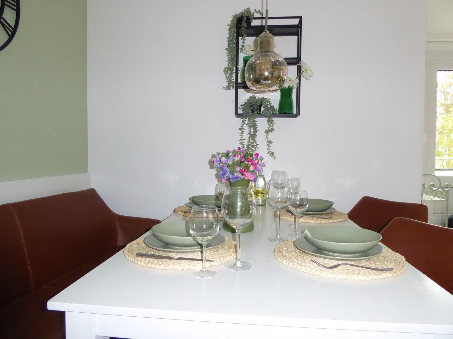 Die Wohnung ist sehr stylisch und gemütlich eingerichtet. Der offene Wohn /Essbereich ist perfekt zum verweilen mit der Familie oder Freunden. Die Küche ist mit allem wichtigen ausgestattet. Im ersten Schlafzimmer befindet sich ein Etagenbett. Im hinteren Schlafzimmer befindet sich ein Doppelbett und ein Einzelbett.