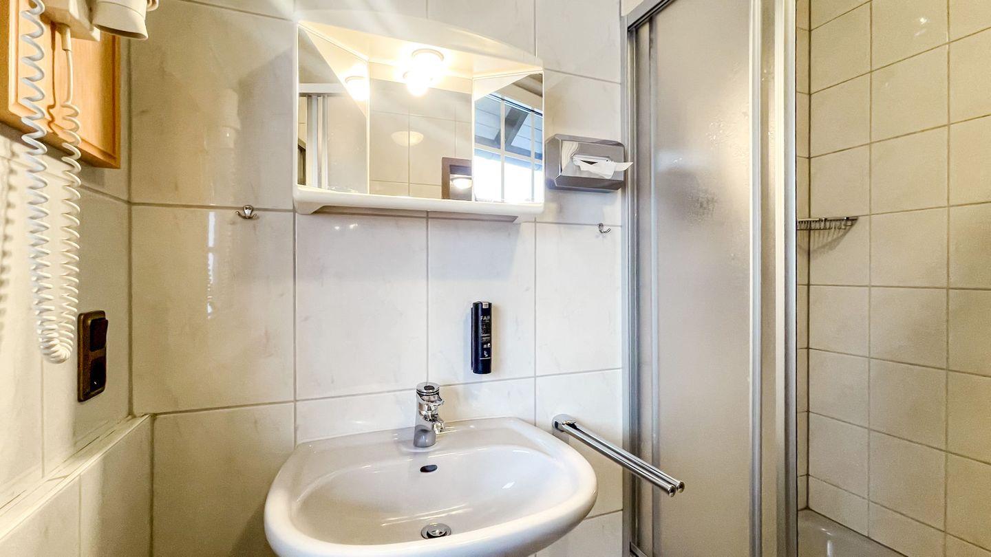 Willkommen in unserem 21 qm großen Zimmer für 2 Personen. Es ist mit einem komfortablen Doppelbetten ausgestattet. Zudem ein Fernseher. Das angrenzende Duschbad bietet Ihnen alles für Ihre Erfrischung.
