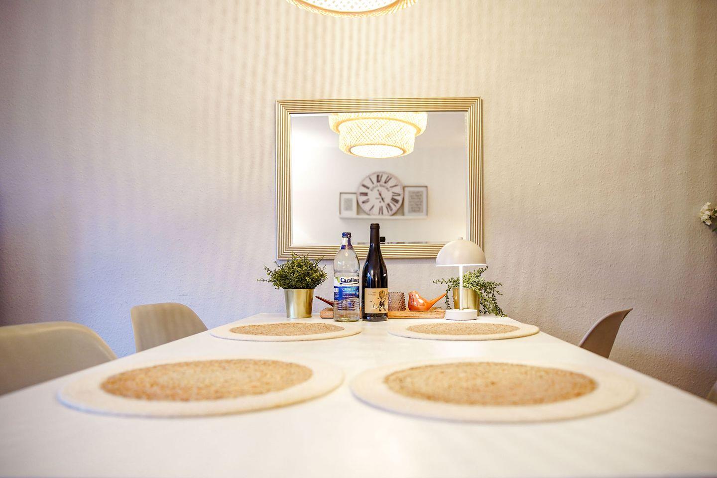 - Einen gemütlichen Ess- und Wohnbereich mit einem Schlafsofa. Der Wohnbereich ist ansprechend eingerichtet und mit einem Flachbildfernseher ausgestattet. Bei dem TV-Gerät handelt es sich um einen Internetfähiges Gerät mit Zugang zu den üblichen Apps wie .z.B. Netflix (Achtung: eigene Accounts sind notwendig und werden nicht von uns gestellt).