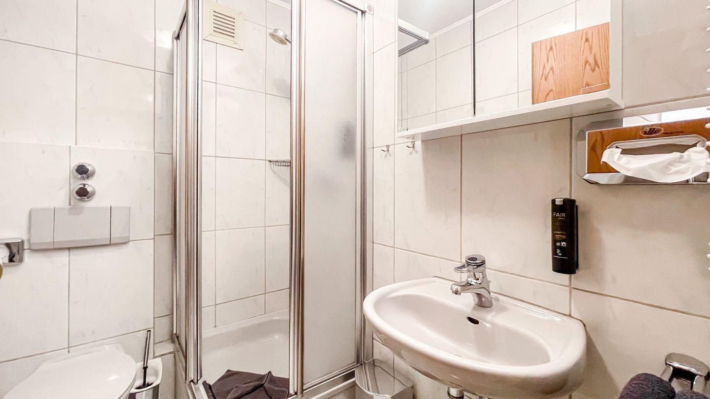 Das angrenzende Duschbad ist sowohl praktisch als auch stilvoll gestaltet und ermöglicht Ihnen eine erfrischende Dusche nach einem langen Tag.