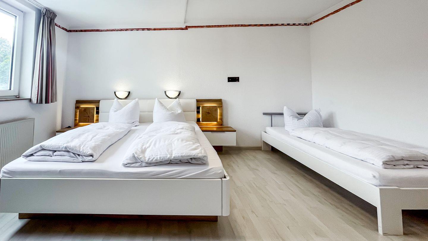 Willkommen in unserem charmanten Zimmer für bis zu drei Personen! Mit 26 qm bietet es ausreichend Platz zum Entspannen. Es verfügt über ein komfortables Doppelbett, ein Einzelbett, sowie einen modernen Fernseher.