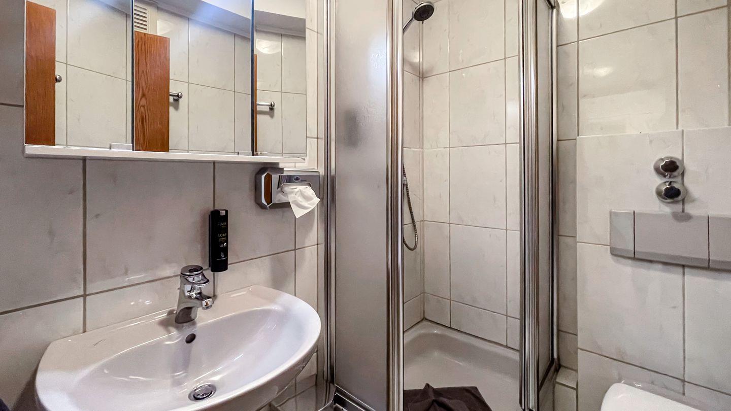 Das angrenzende Duschbad ist sowohl praktisch als auch stilvoll gestaltet und ermöglicht Ihnen eine erfrischende Dusche nach einem langen Tag.