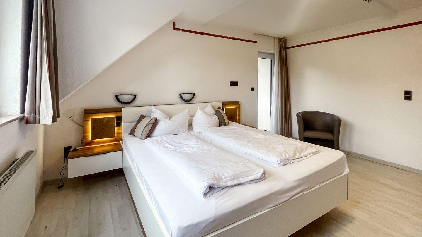 Willkommen in unserem charmanten Zimmer für bis zu drei Personen! Mit 26 qm bietet es ausreichend Platz zum Entspannen. Es verfügt über ein komfortables Doppelbett, ein Einzelbett, sowie einen modernen Fernseher. Ein Balkon ist vorhanden.