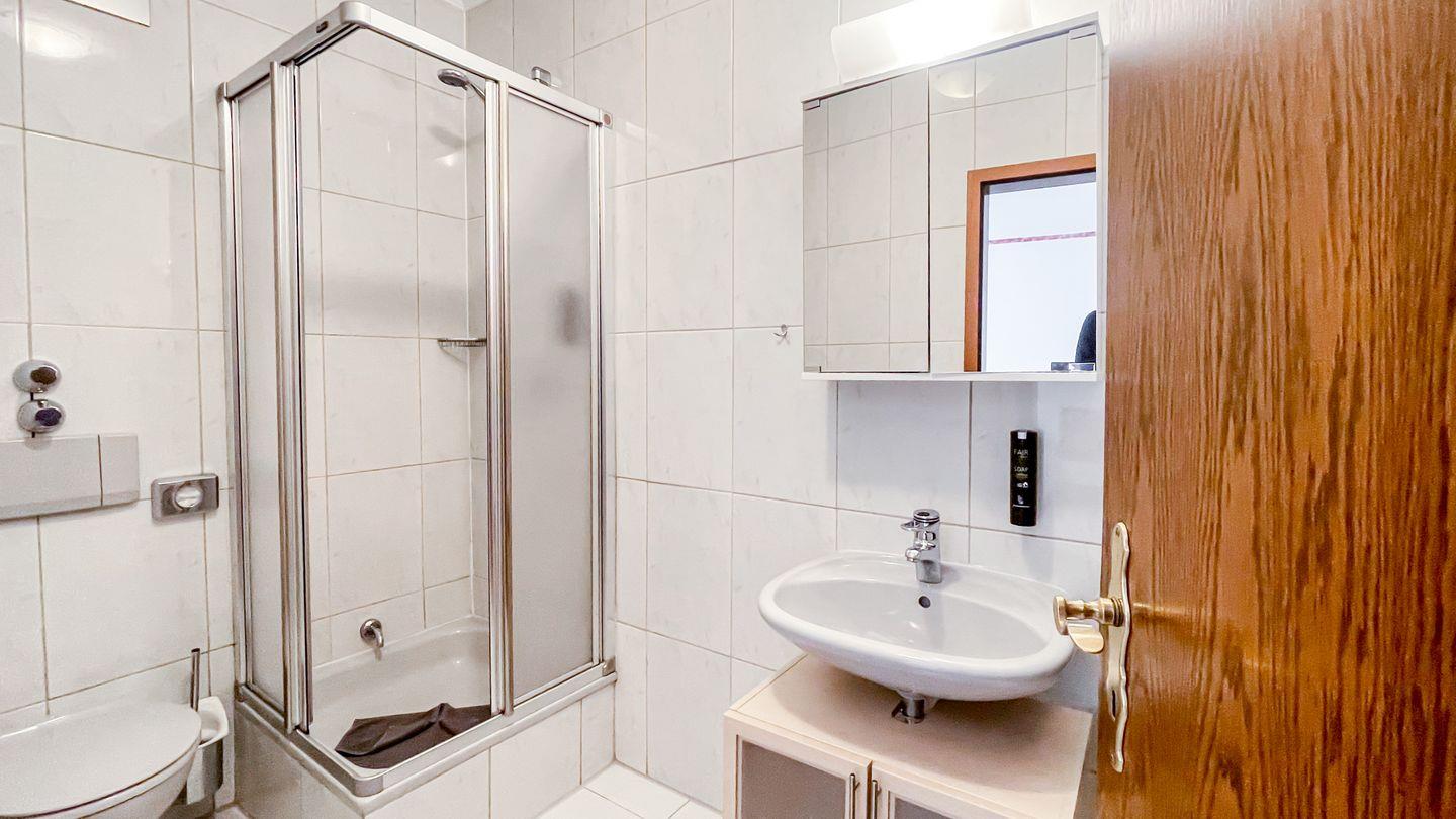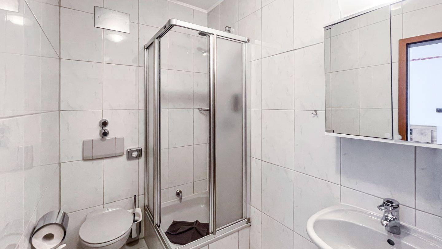 Das angrenzende Duschbad ist sowohl praktisch als auch stilvoll gestaltet und ermöglicht Ihnen eine erfrischende Dusche nach einem langen Tag.