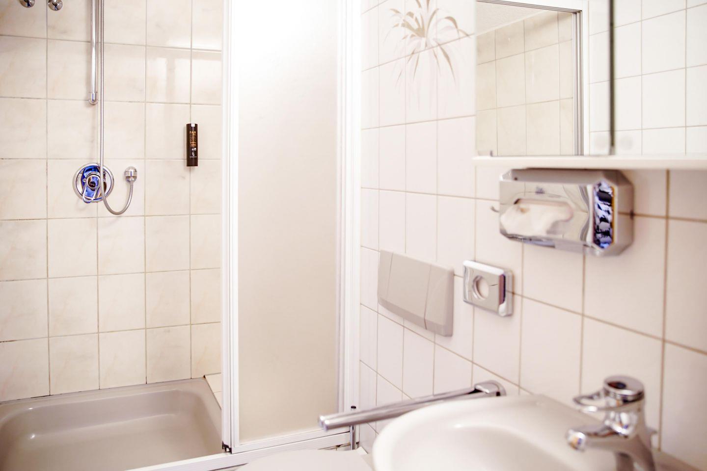 Das angrenzende Duschbad ist sowohl praktisch als auch stilvoll gestaltet und ermöglicht Ihnen eine erfrischende Dusche nach einem langen Tag.