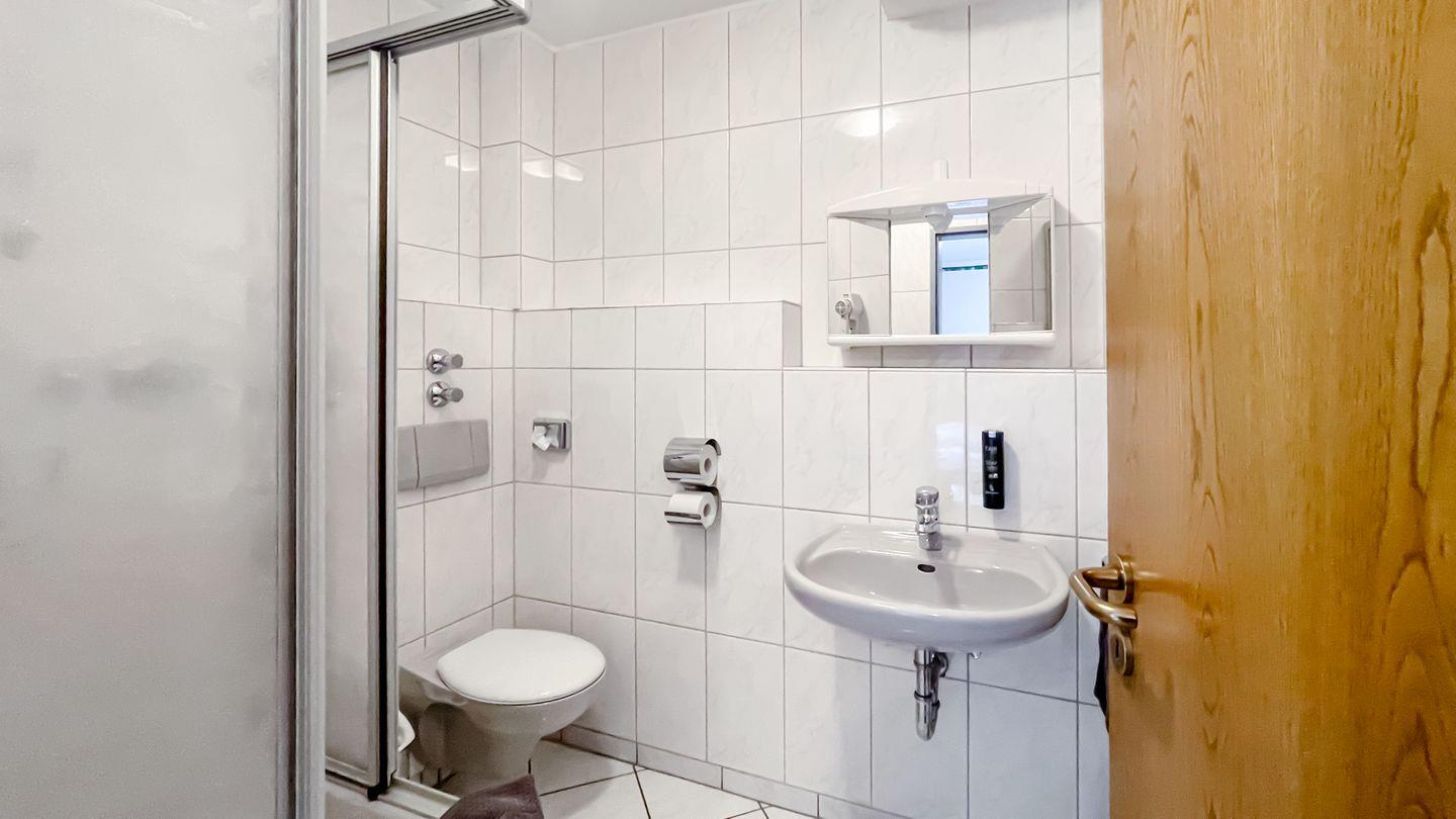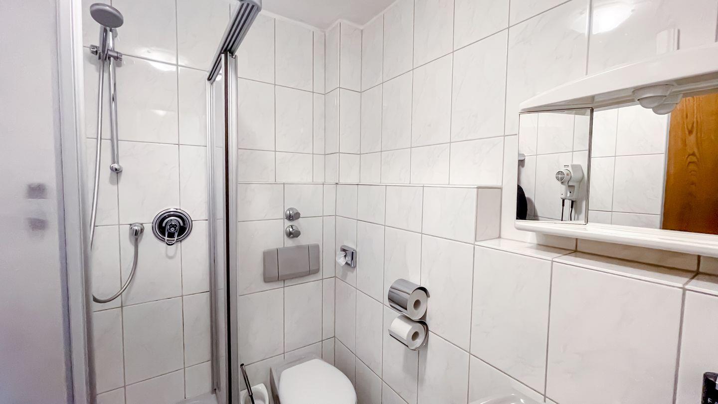 Das angrenzende Duschbad ist sowohl praktisch als auch stilvoll gestaltet und ermöglicht Ihnen eine erfrischende Dusche nach einem langen Tag.