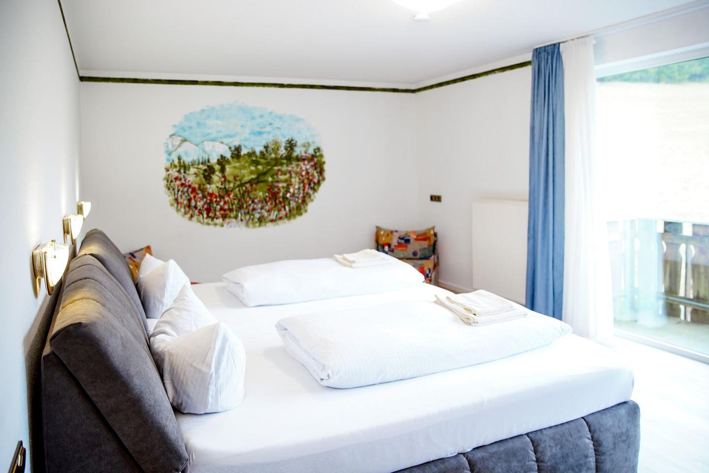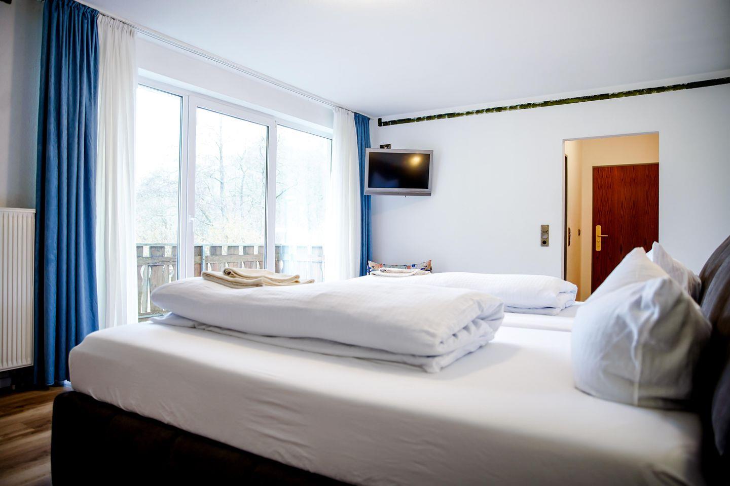 Willkommen in unserem charmanten Zimmer für bis zu 2 Personen! Mit 32 qm bietet es ausreichend Platz zum Entspannen. Es verfügt über ein komfortables Doppelbett, sowie einen modernen Fernseher.