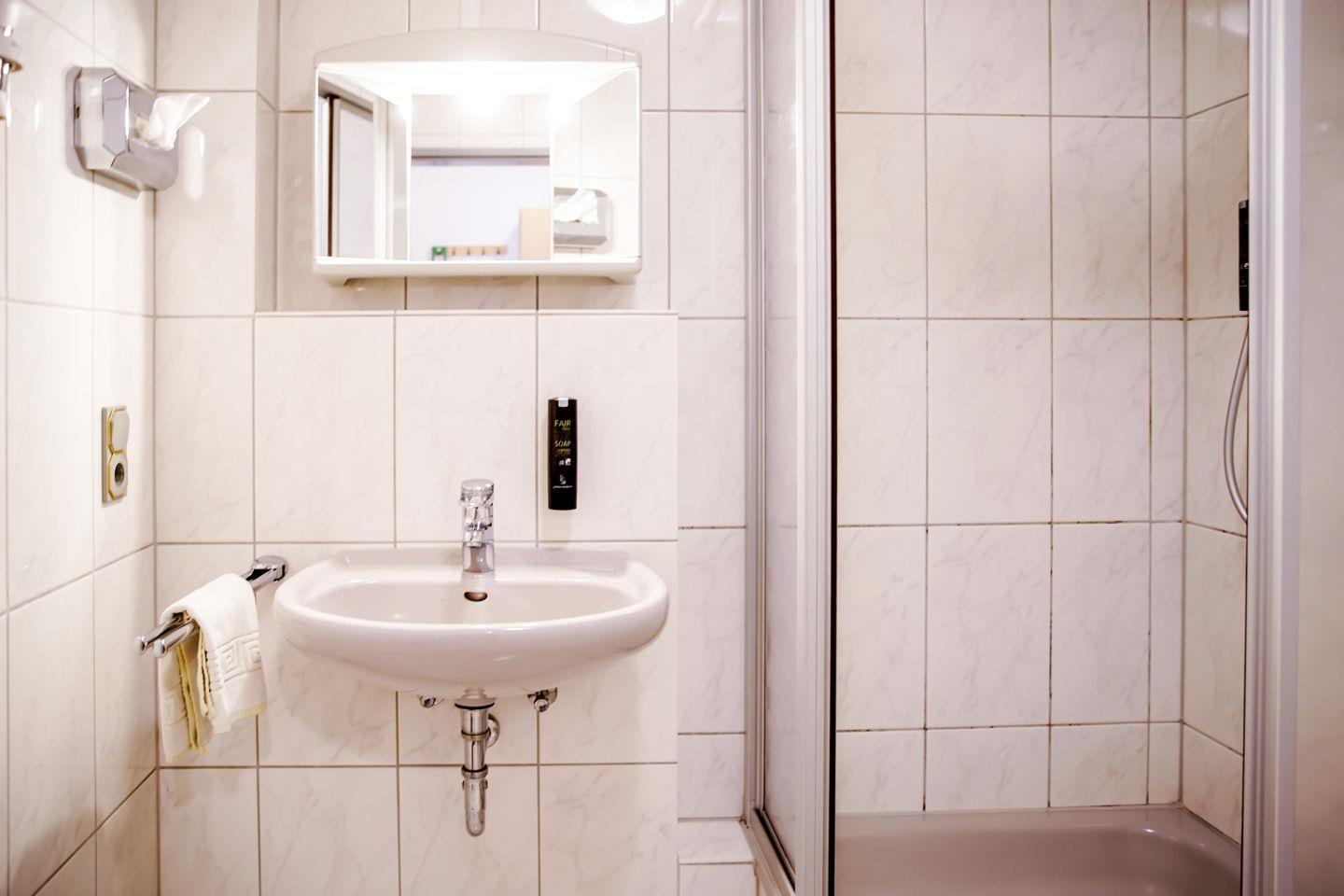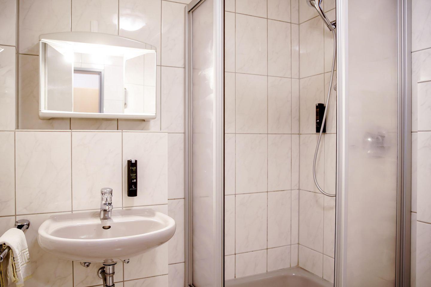Das angrenzende Duschbad ist sowohl praktisch als auch stilvoll gestaltet und ermöglicht Ihnen eine erfrischende Dusche nach einem langen Tag.