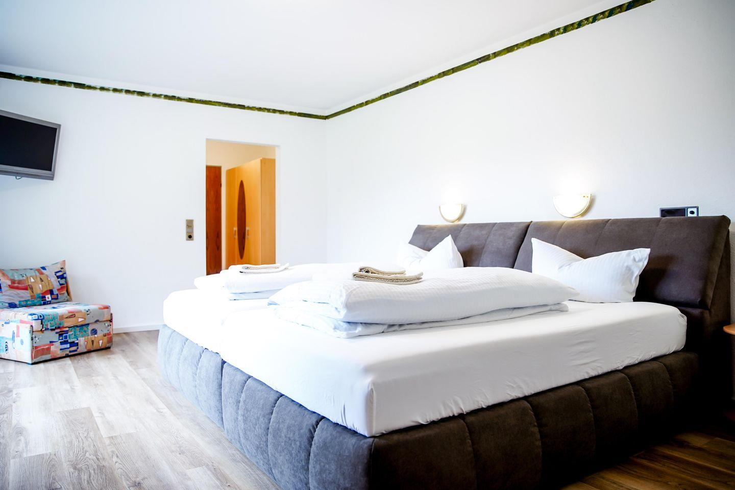 Herzlich willkommen in unserem charmanten Zimmer, das perfekt für 2 Personen geeignet ist. Mit einer großzügigen Fläche von 32 qm bietet es viel Raum zum Entspannen und Wohlfühlen. Ausgestattet mit einem bequemen Doppelbett, sorgt es für eine erholsame Nachtruhe. Ein moderner Fernseher steht Ihnen zur Verfügung, um Ihre Lieblingssendungen zu genießen.