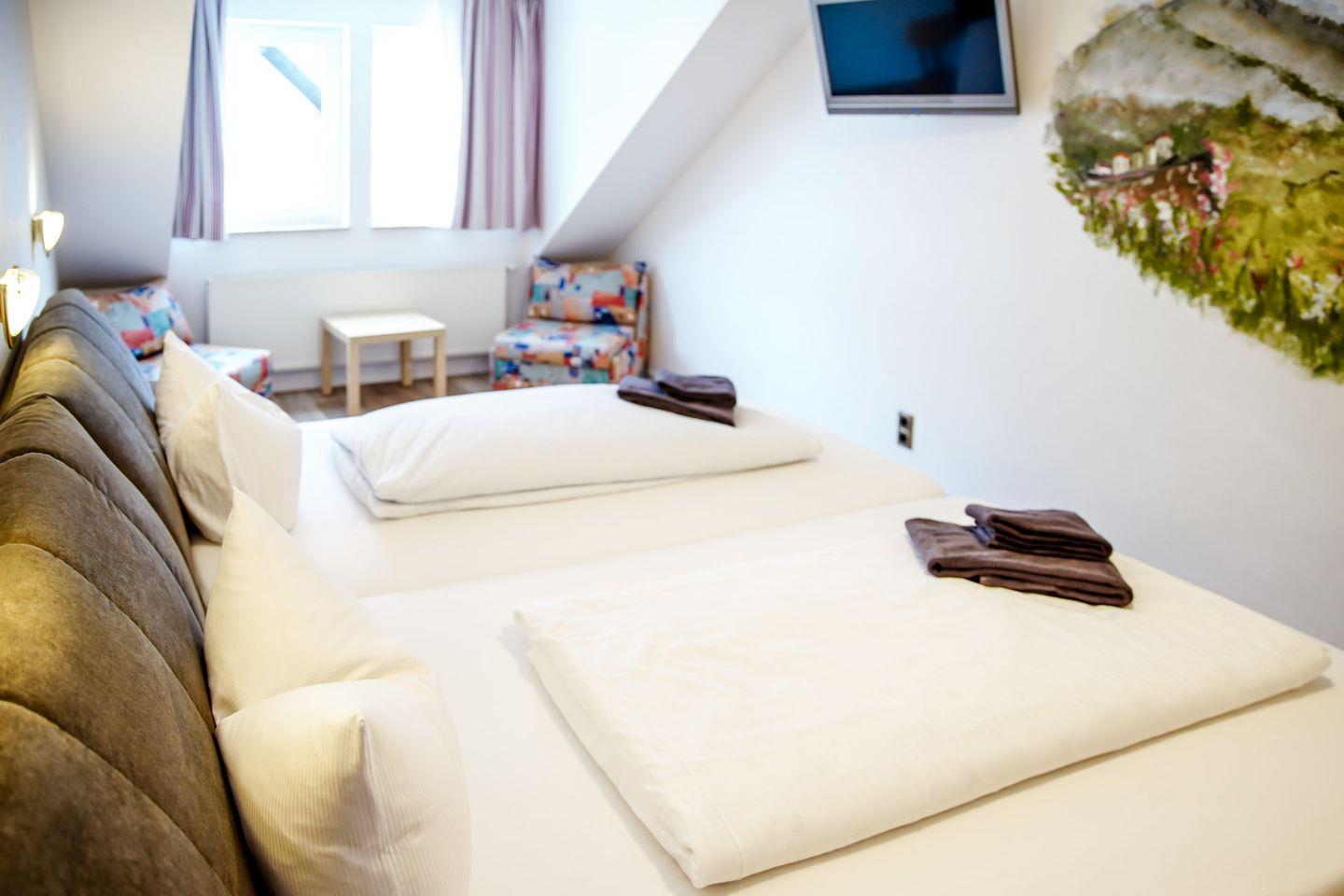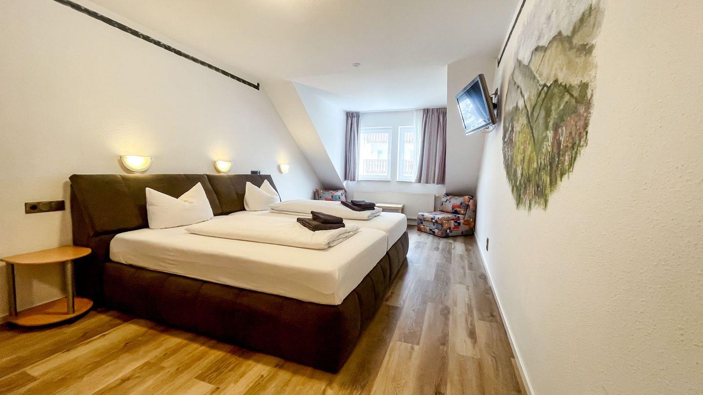 Willkommen in unserem charmanten Zimmer für bis zu 2 Personen! Mit 29 qm bietet es ausreichend Platz zum Entspannen. Es verfügt über ein komfortables Doppelbett, sowie einen modernen Fernseher.