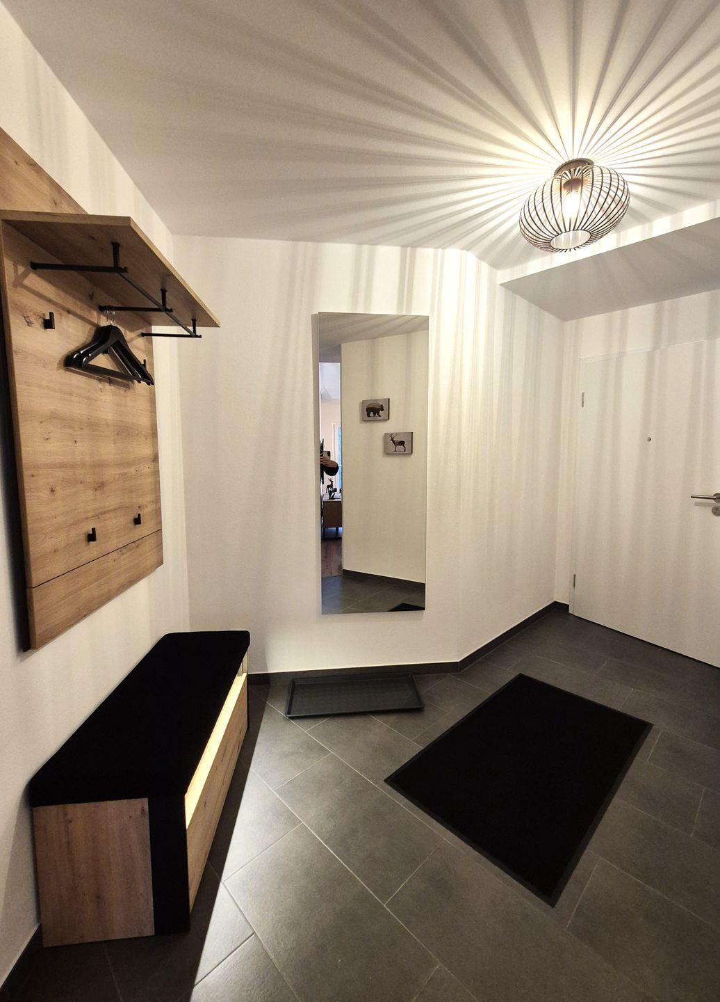 Zu dieser komfortablen Ferienwohnung gehört ein PKW-Stellplatz in der Tiefgarage, in der sich auch ein abschließbarer Kellerraum für Ihre Fahrräder, Skier, Schlitten und Skischuhe befindet.