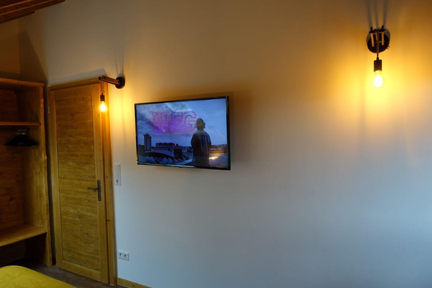 Die exklusive Ausstattung umfasst eine offene, vollständig ausgestattete Küche, die direkt an das großzügige Wohnzimmer angeschlossen ist. Hier finden Sie neben Induktionsherd, Backofen, Mikrowelle, Spülmaschine, Kühlschrank mit Gefrierfach und zahlreichen Küchenutensilien auch eine Kaffeemaschine sowie eine Espressomaschine (Senseo). Geschirr, Besteck, Küchenhandtücher, Eierkocher, Toaster und Wasserkocher sind ebenfalls vorhanden, sodass die Selbstversorgung leicht fällt. In der gemütlichen Sofaecke mit Sessel und Kaminofen können Sie entspannte Abende verbringen, während Ihnen vier moderne Satelliten-TVs (35–44 Zoll) mit internationalen Kanälen, eine HiFi-Anlage, Radio und kostenfreies WLAN mit VDSL-Geschwindigkeit (ab 25 MBit/s) beste Unterhaltung und Komfort bieten.