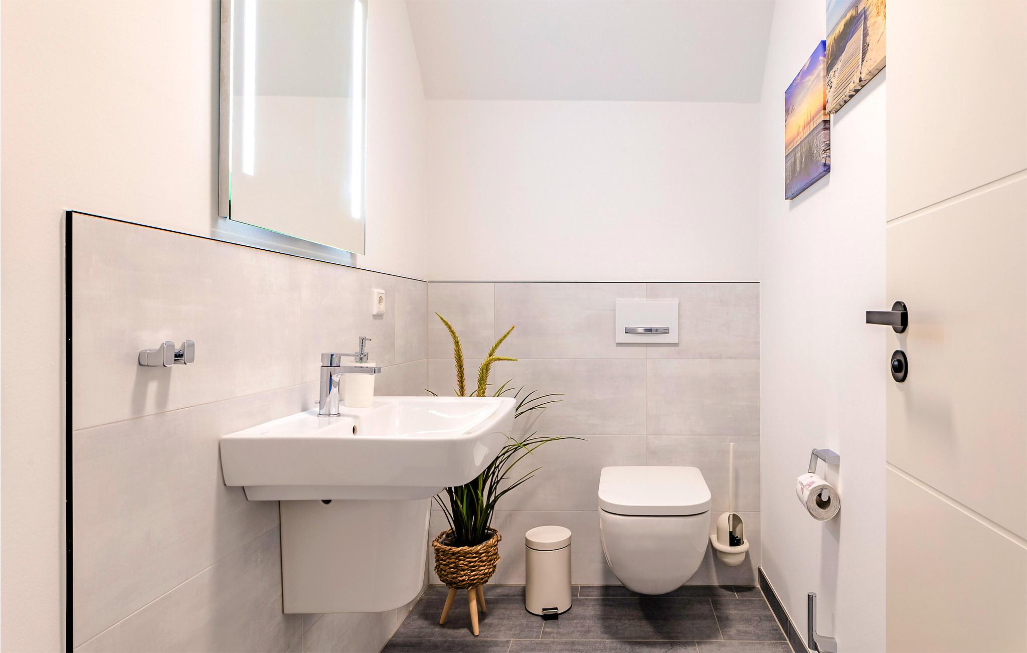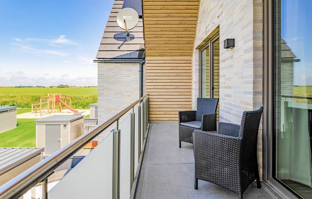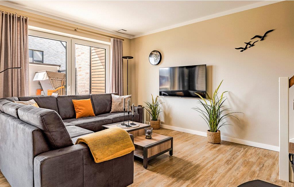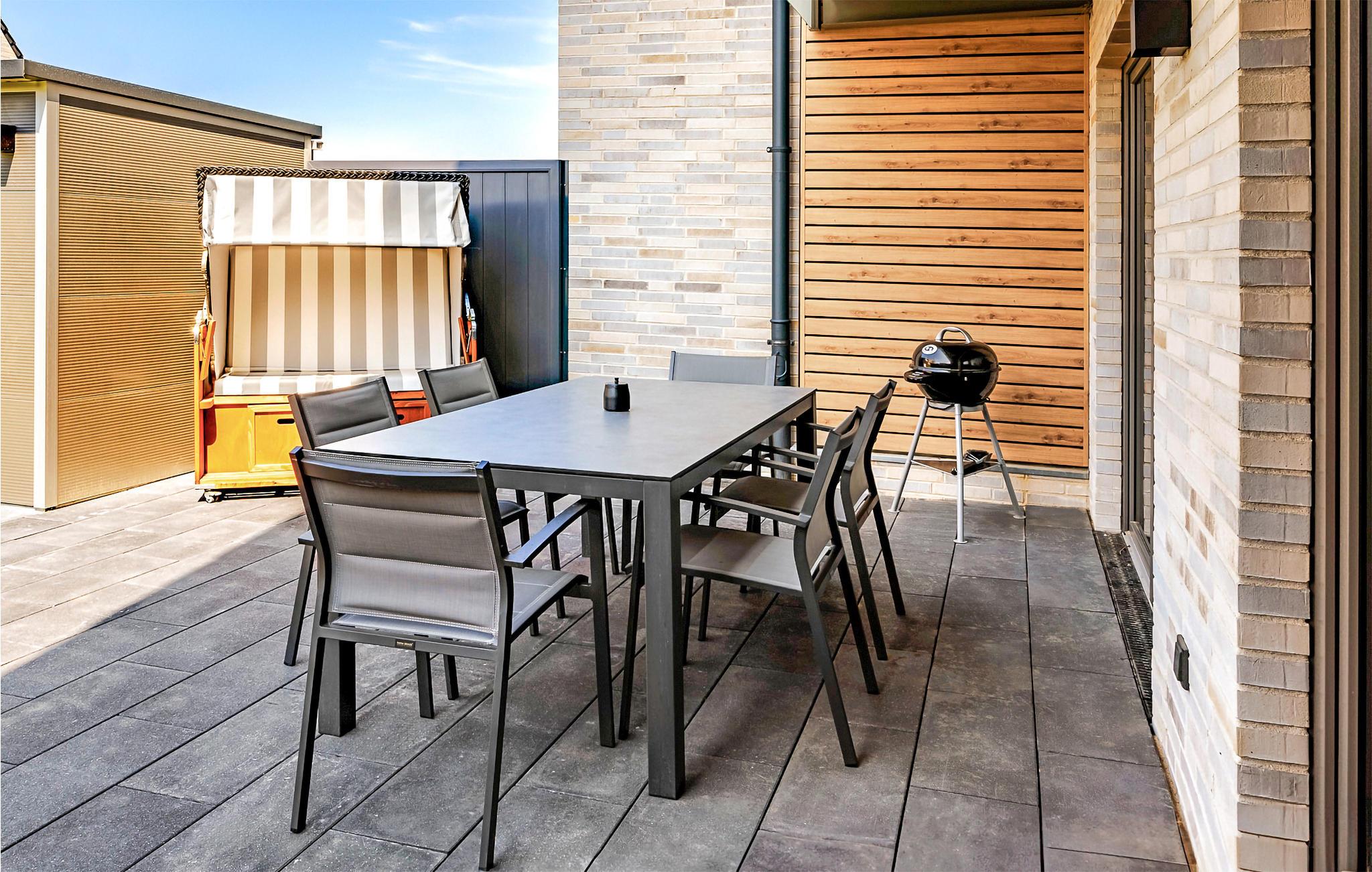 I jeres sommerhus kan I forvente en høj komfort i den landlige stil. Her møder moderne arkitektur elegant indretning og beherskede farver, så I kan slappe af i en elegant atmosfære. Nyd solnedgangen fra jeres egen terrasse eller balkon eller dvæle i de rummelige værelser. Efter en dejlig dag på stranden eller en tur i området kan I slappe af i hotellets sauna eller brænde jer selv ud med et spil bordfodbold inden middagen sammen. En grund tilhørende hvert af de forskudte rækkehuse gør "An den Wehlen" til et tilflugtssted uden kompromiser.