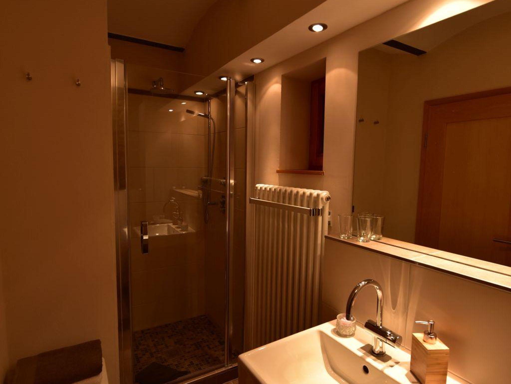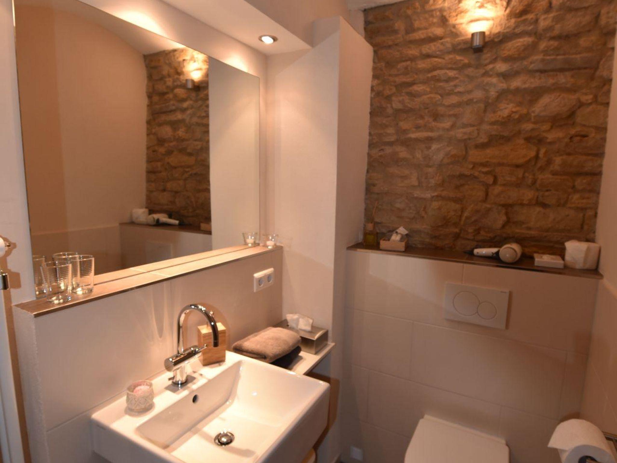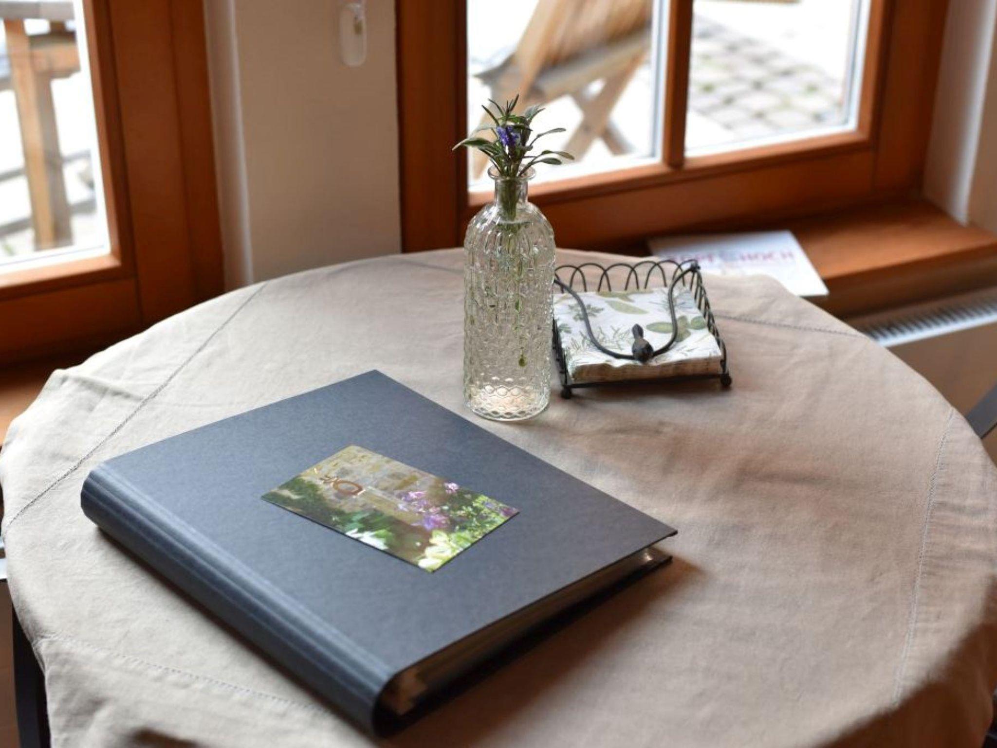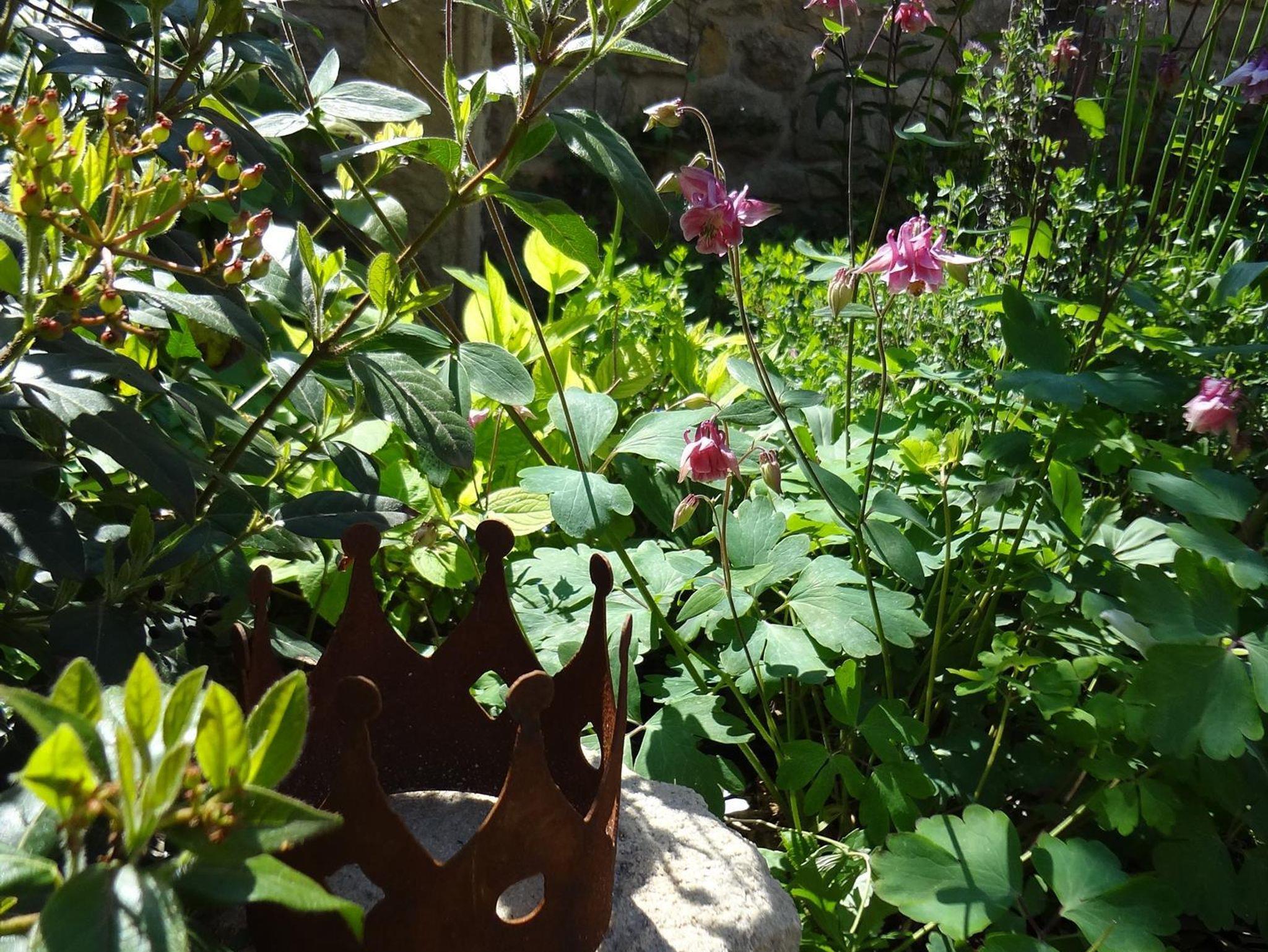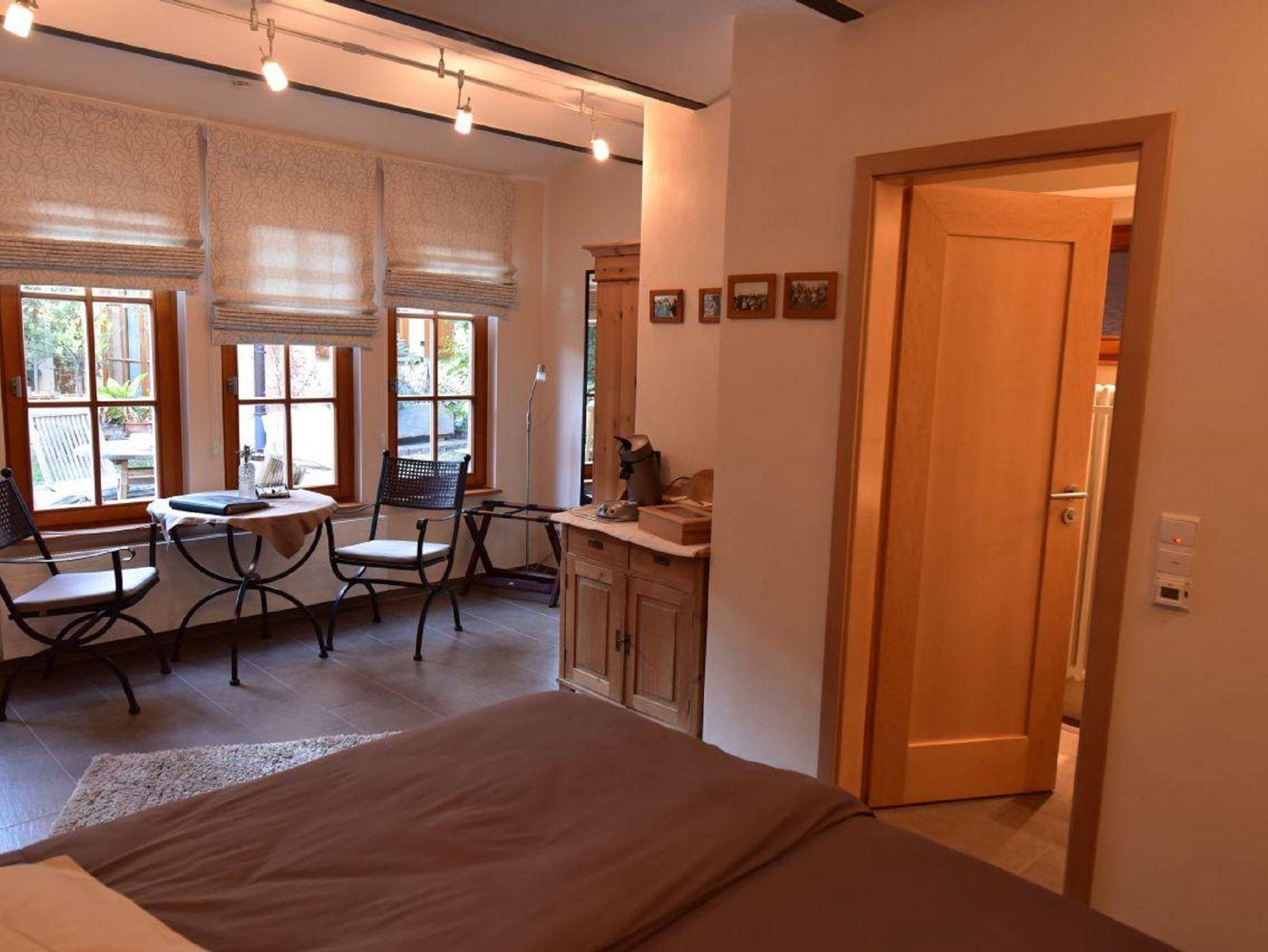 Das Zimmer Thymian ist liebevoll und hell eingerichtet. Zum Zimmer gehört ein schönes Bad mit Regenschauerdusche . Zimmer und Bad erhalten ihr besonderes Flair durch eine Kappendecke und sichtbarem Natursteinmauerwerk aus der Zeit der Erbauung des Hauses. Eine Frühstücksmöglichkeit an einem kleinen Tisch im Zimmer mit Blick in den Garten ist vorhanden.
