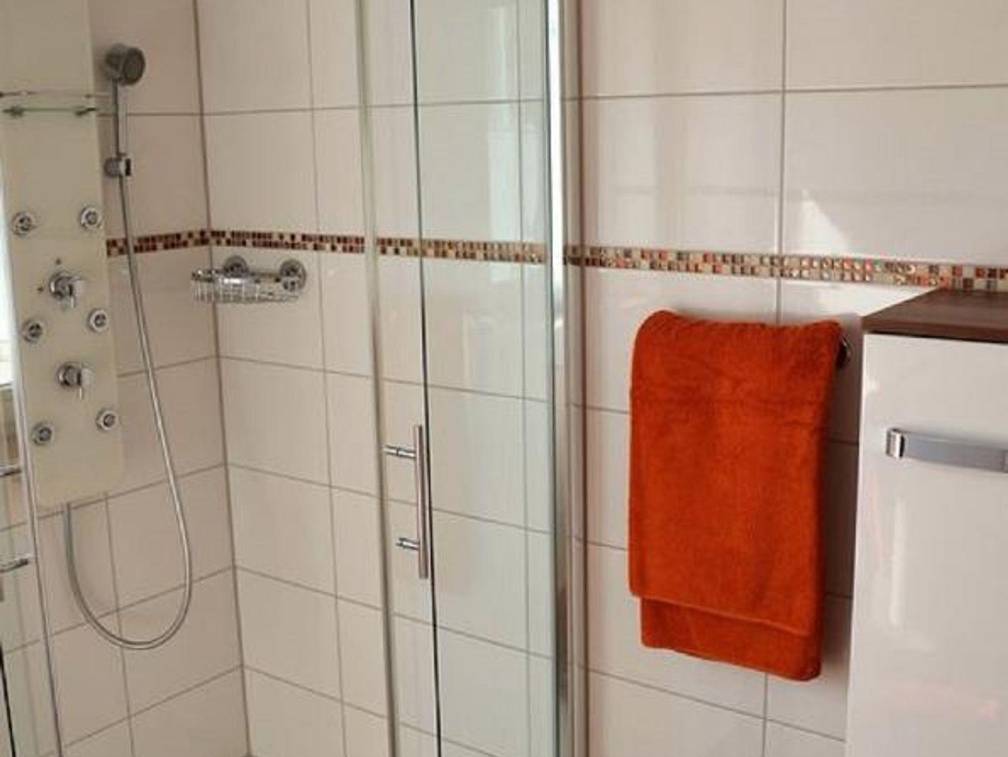 Ferienwohnung 4-7 Personen: Ferienwohnung mit speratem Eingang im Erdgeschoss, ca. 120 qm, 3 Schlafzimmer, 2 Bäder (Whirlwanne, Massagedusche), Einbauküche, großes Wohn- Esszimmer, 2 große überdachte Terassen, 2 Sat-TV, Garage