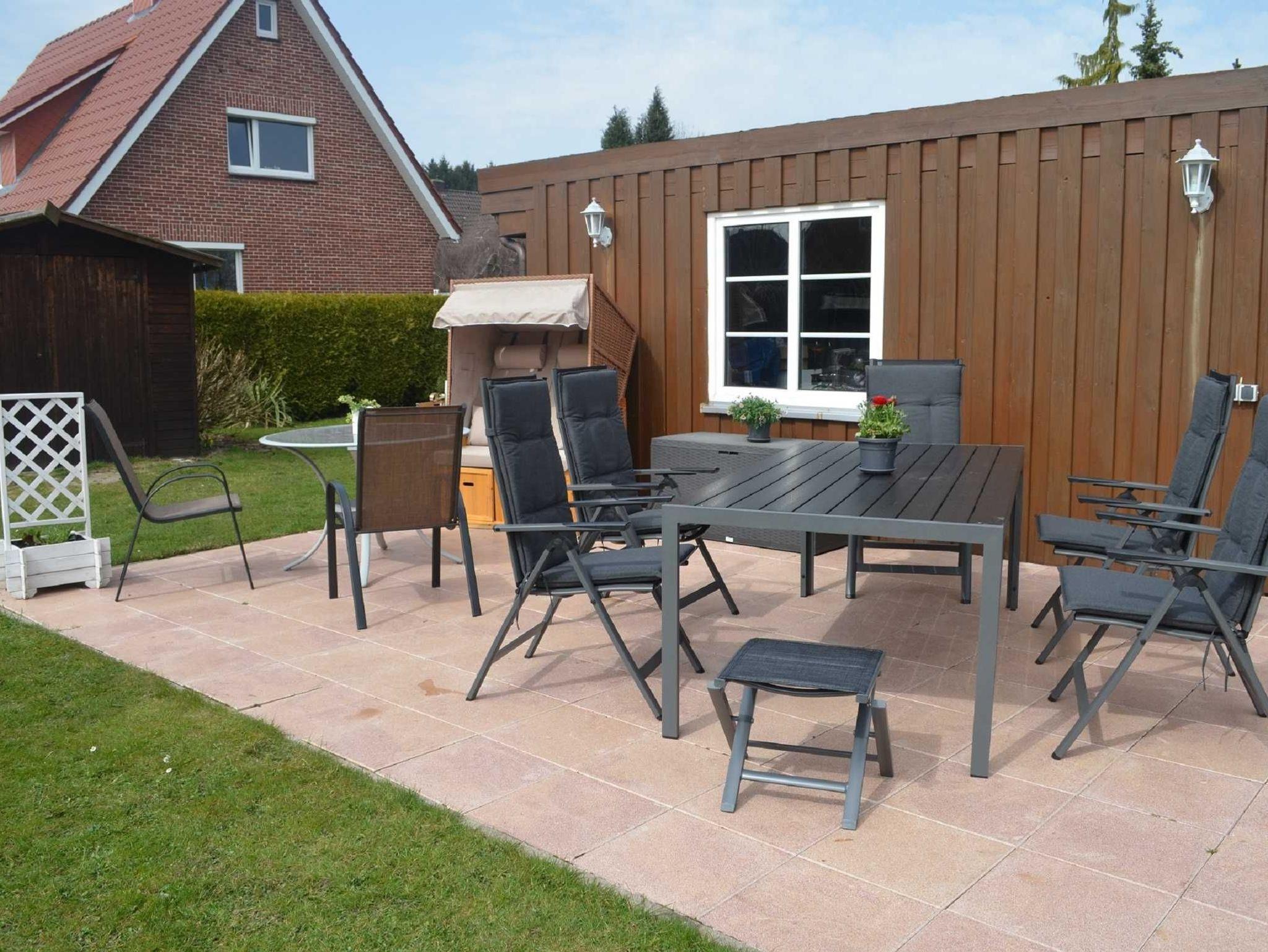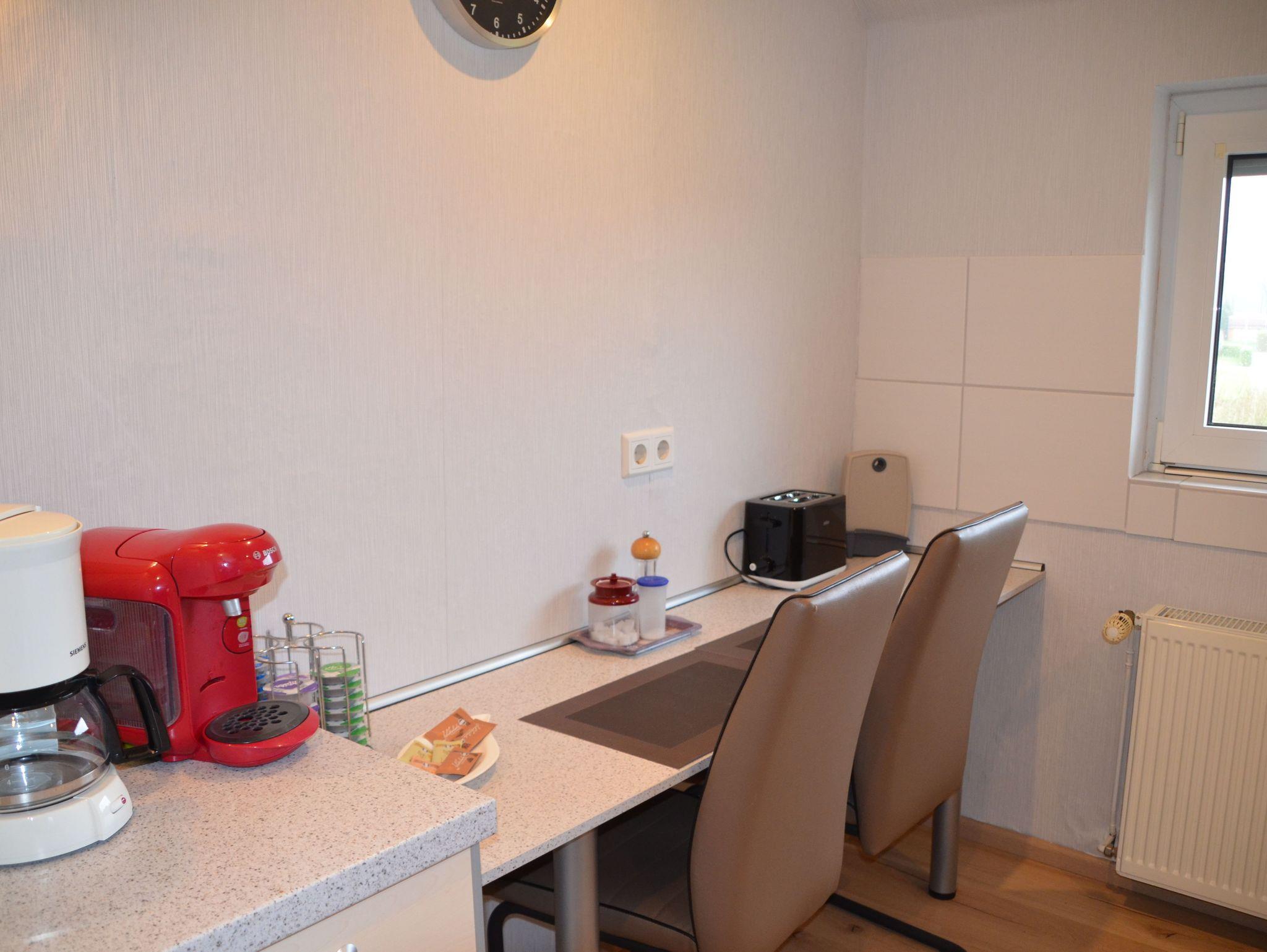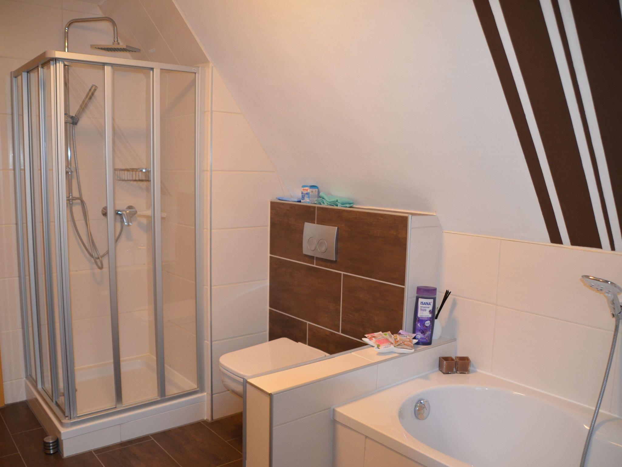 Moderne Ferienwohnung, ausgestattet mit Laminat und Fliese. 1 OG. Treppe, Nichtraucherwohnung, Terrasse.