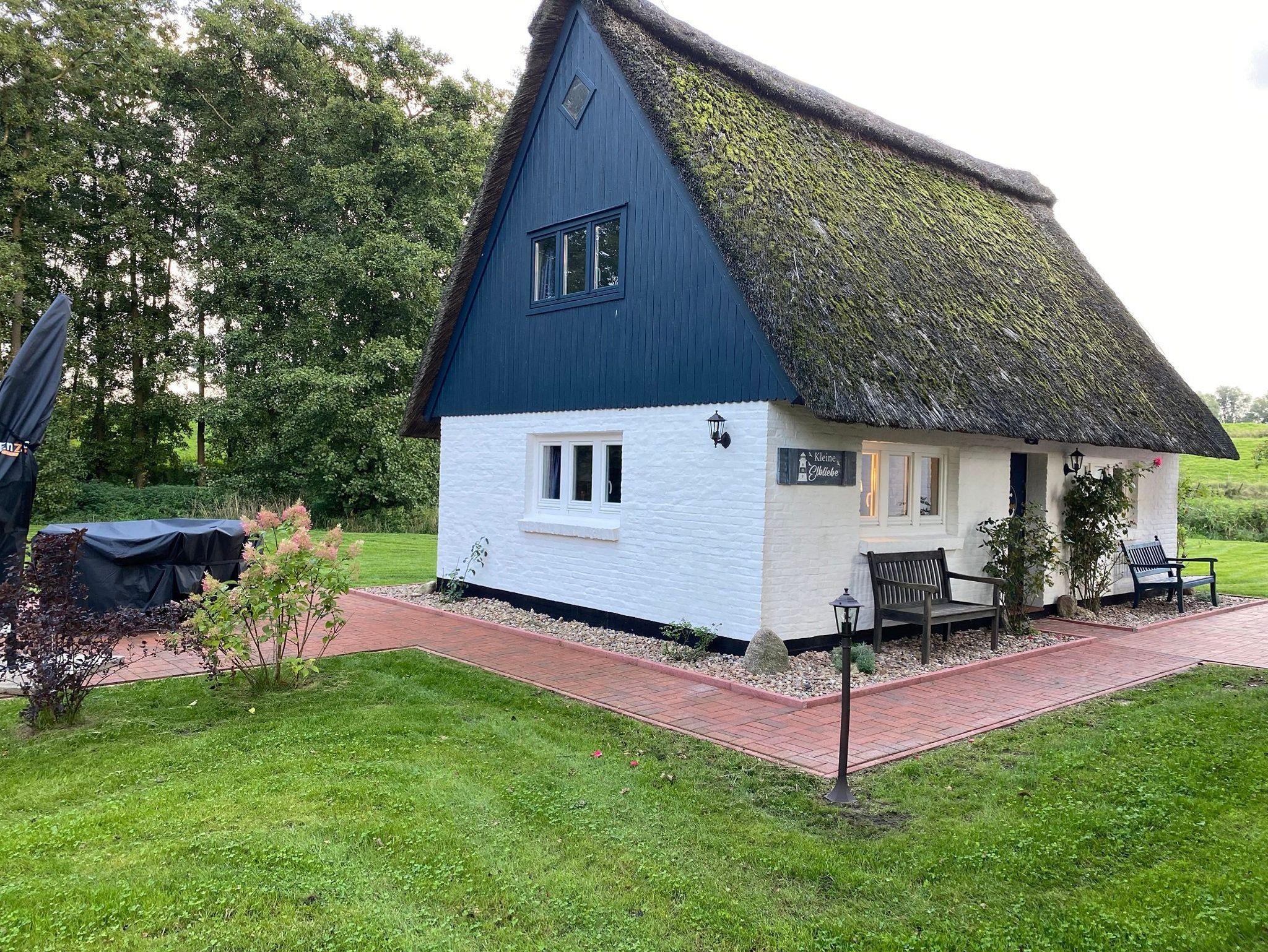 Ganzes Ferienhaus; ruhig gelegen; Nichtraucherhaus; niedrige Deckenhöhe, eigene Terrasse mit Gartenmöbeln; Grillecke, Doppelbett; 2 Einzelbetten; Alte kleine Reetdachkate. Besonderes Highlight ist der SPA-Bereich im Garten, Nutzung und Reinigung sind inklusive.