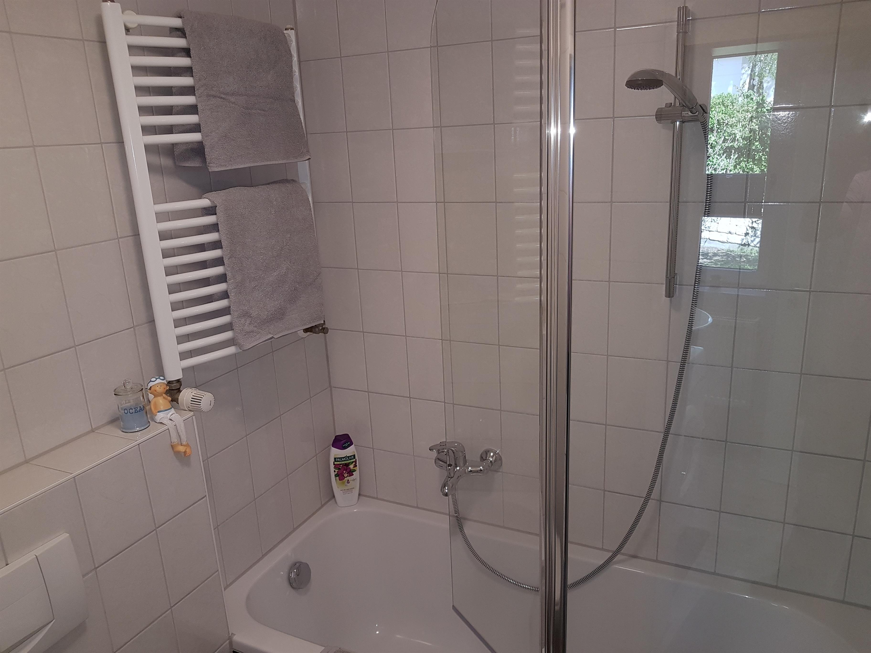Im EG befindet sich das Bad sowie die Wohnküche mit TV.