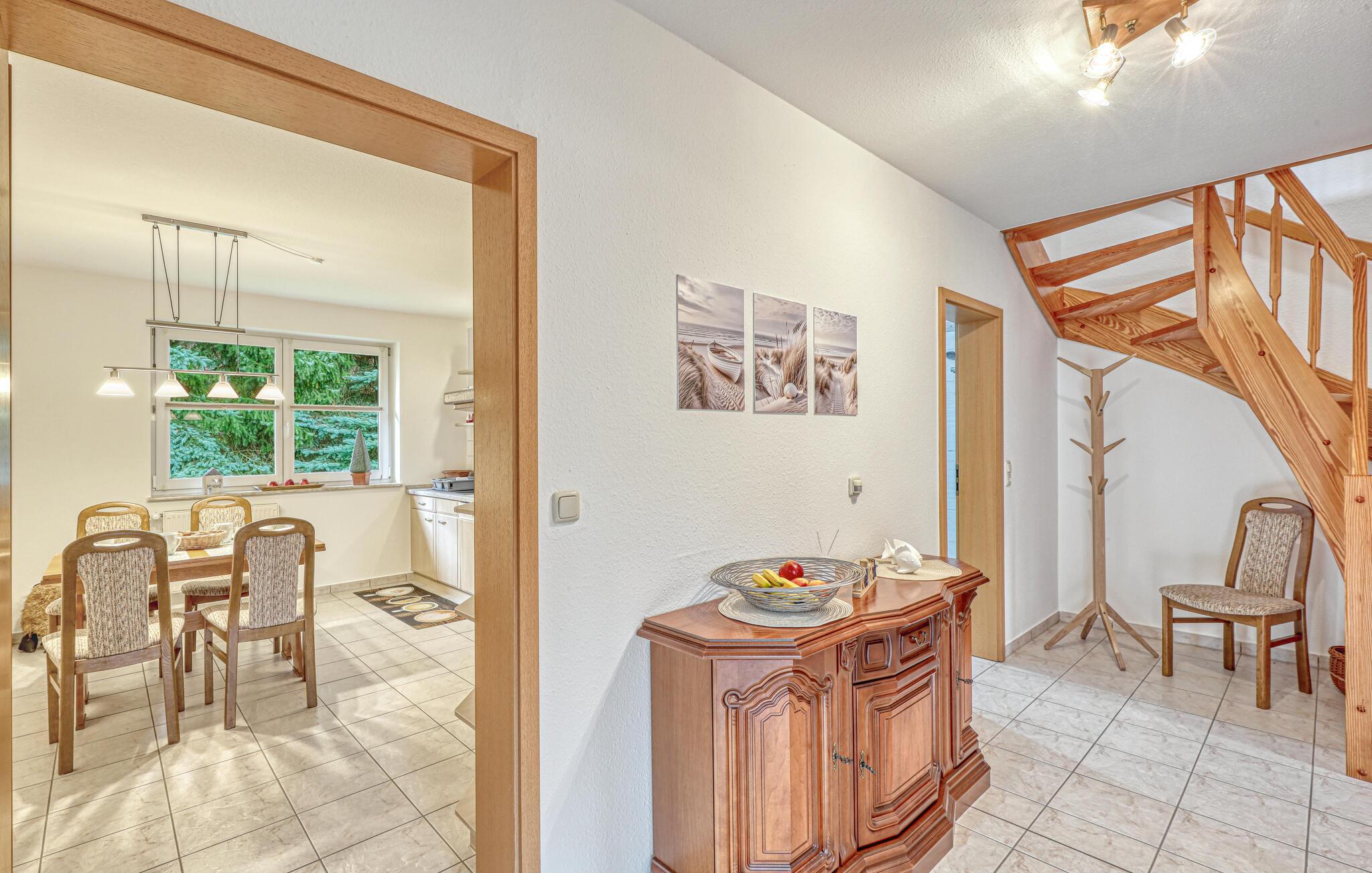 Uanset om I sætter pris på nærheden til havet eller en sø, elsker cykelture eller ønsker at besøge UNESCOs verdensarvsbyer Wismar og Schwerin – alt er let tilgængeligt med bil og cykel fra dette feriehus. Opholdsstuen med adgang til terrassen og udsigt over frugtplantagen er komfortabelt møbleret med en hyggelig sofa, fjernsyn og gennemtænkte detaljer. Slap af med en god bog eller nyd at tilbringe tid med familie eller venner. Tilbered jeres yndlingsmåltider og nyd hyggelige sammenkomster i det lyse køkken med spiseplads. Ovenpå finder I endnu en rummelig opholdsstue med adgang til en balkon – det perfekte sted til rolige øjeblikke med udsigt over det omkringliggende grønne område.