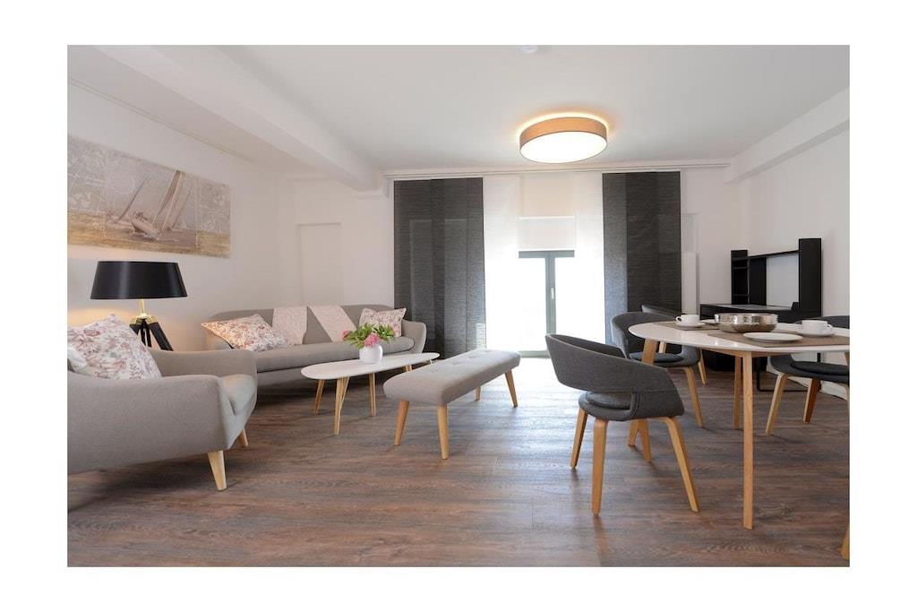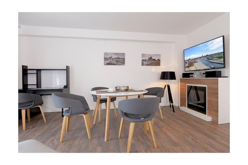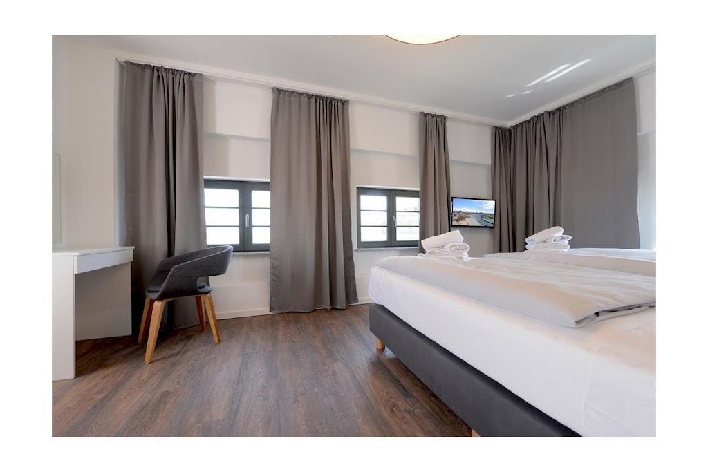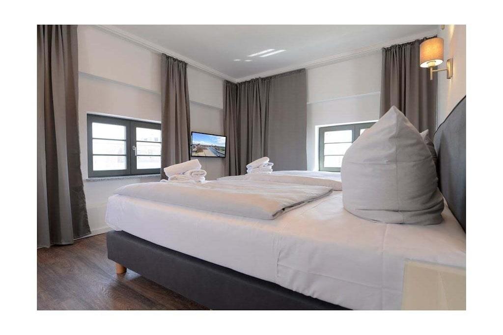 Ferielejligheden ligger i det ombyggede Ohlerich-kornmagasin, hvor I vil blive budt velkommen i receptionen. Når I tager elevatoren til 6. sal, vil I blive begejstrede over udsigten fra lejligheden med udsigt over den gamle bydel.