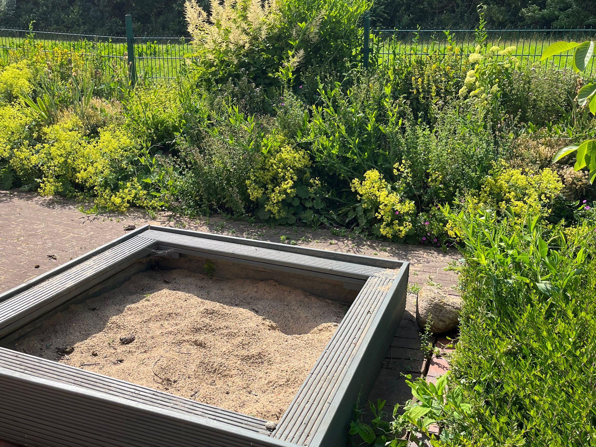 Kinderbett, Hochstuhl, Kindergeschirr und Steckdosenschutz ist vorhanden.