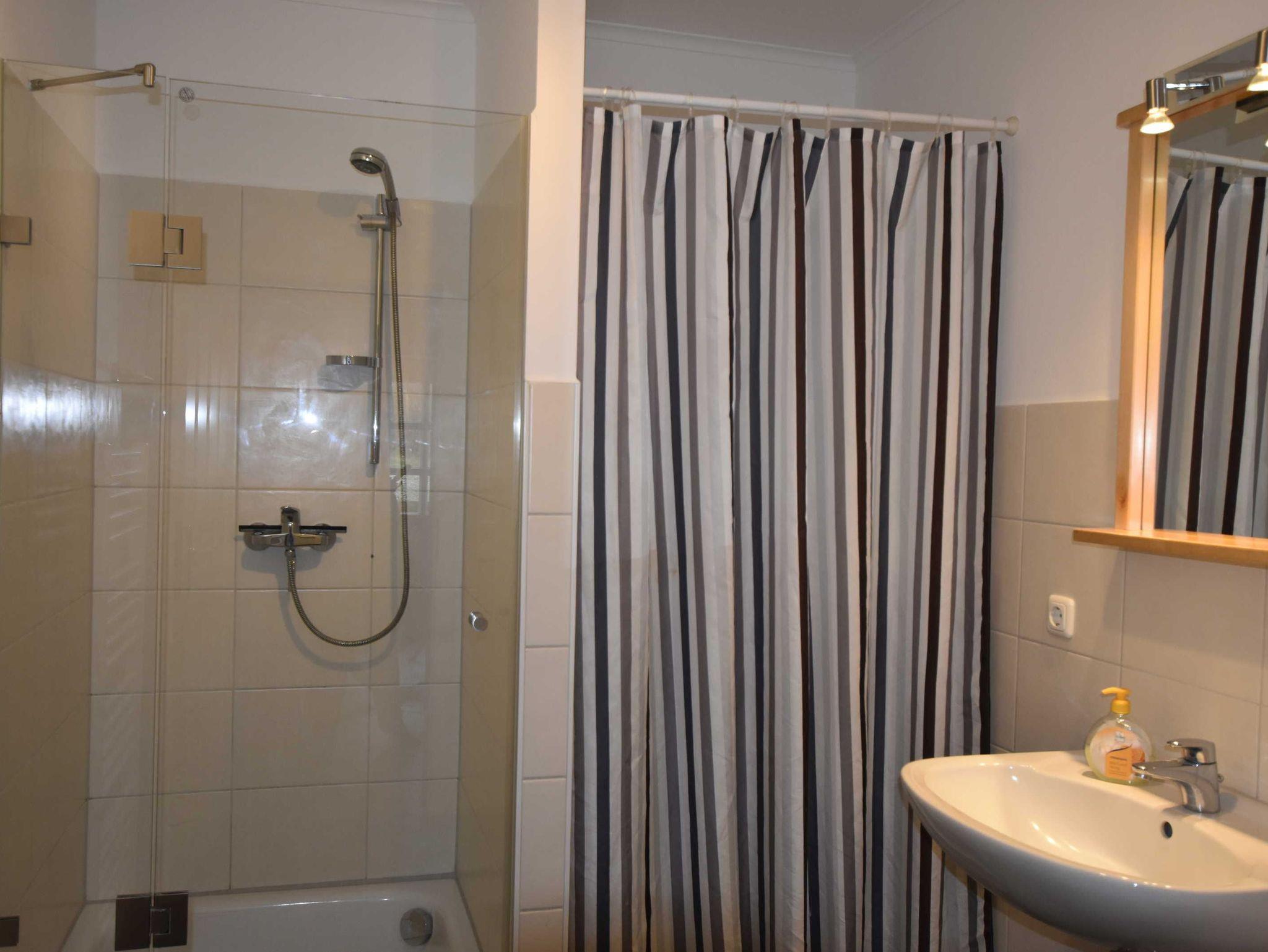Fewo hat einen Wohnbereich mit gemütliche Sitzecke, Eßtisch und mit voll ausgestatteter Küche. 1 Schlafzimmer mit Doppelbett, 1 Schlafzimmer mit Einzelbett und ausklappbaren Zustellbett. Eine zusätzliche Aufbettung wäre auf der Couch im Wohnzimmer machbar. Badezimmer mit Du / WC / Waschmachine.