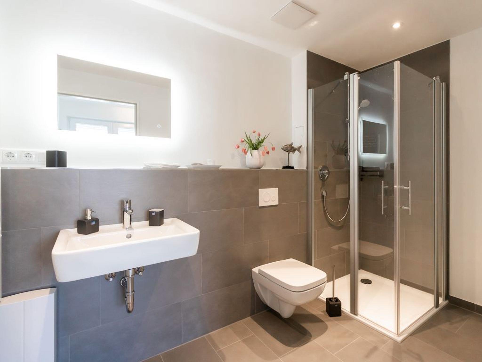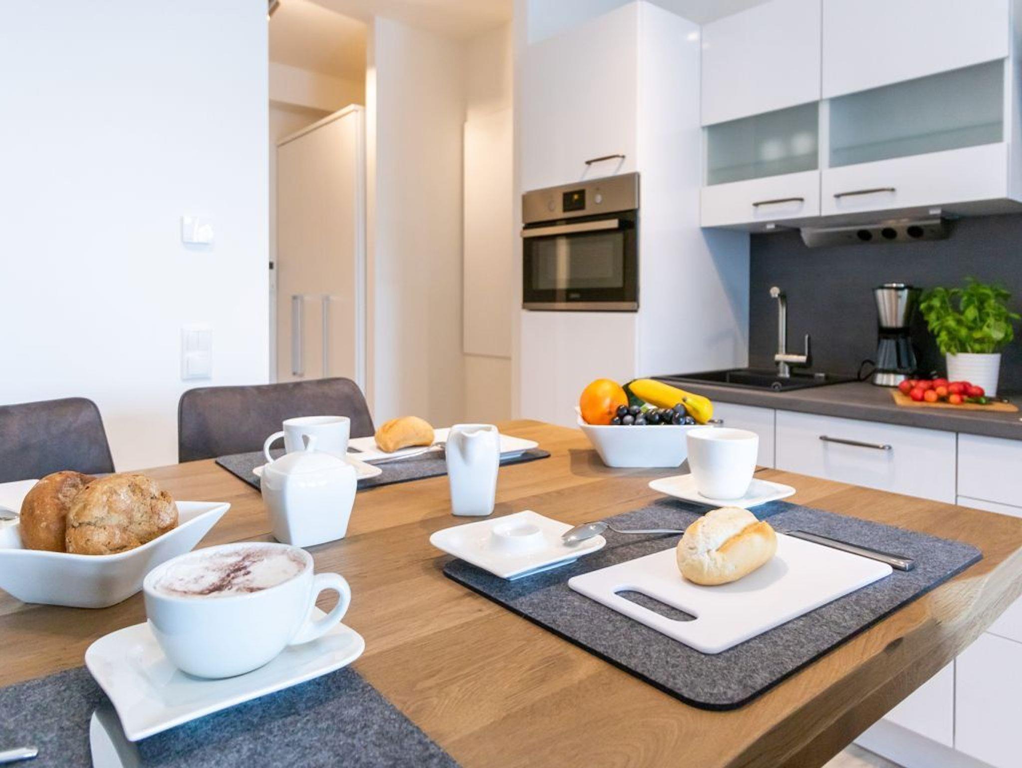 Die in den Wohnraum integrierte und voll ausgestattete Küchenzeile ermöglicht die Selbstversorgung, sollten Sie einmal nicht in einem der zahlreichen Restaurants speisen. Die Ferienwohnung verfügt über ein separates Schlafzimmer mit Doppelbett und Kleiderschrank. Bei Anreise sind als inklusive Leistung die Betten für 2 Personen bereits bezogen und Handtücher liegen bereit. Für weitere Gäste ist gegen Aufpreis die zu Buchung von Wäschepaketen möglich. Auch ein modernes Duschbad, das direkt an das Schlafzimmer grenzt ist vorhanden. Bitte beachten Sie, dass es sich um eine Nichtraucherwohnung handelt.