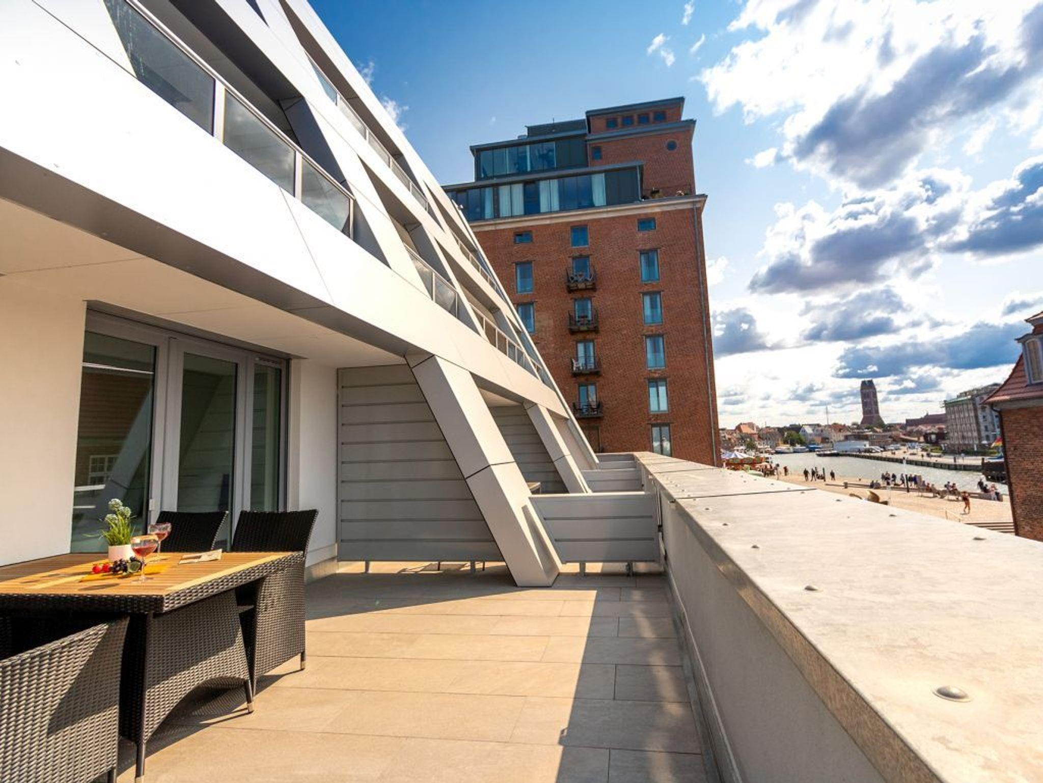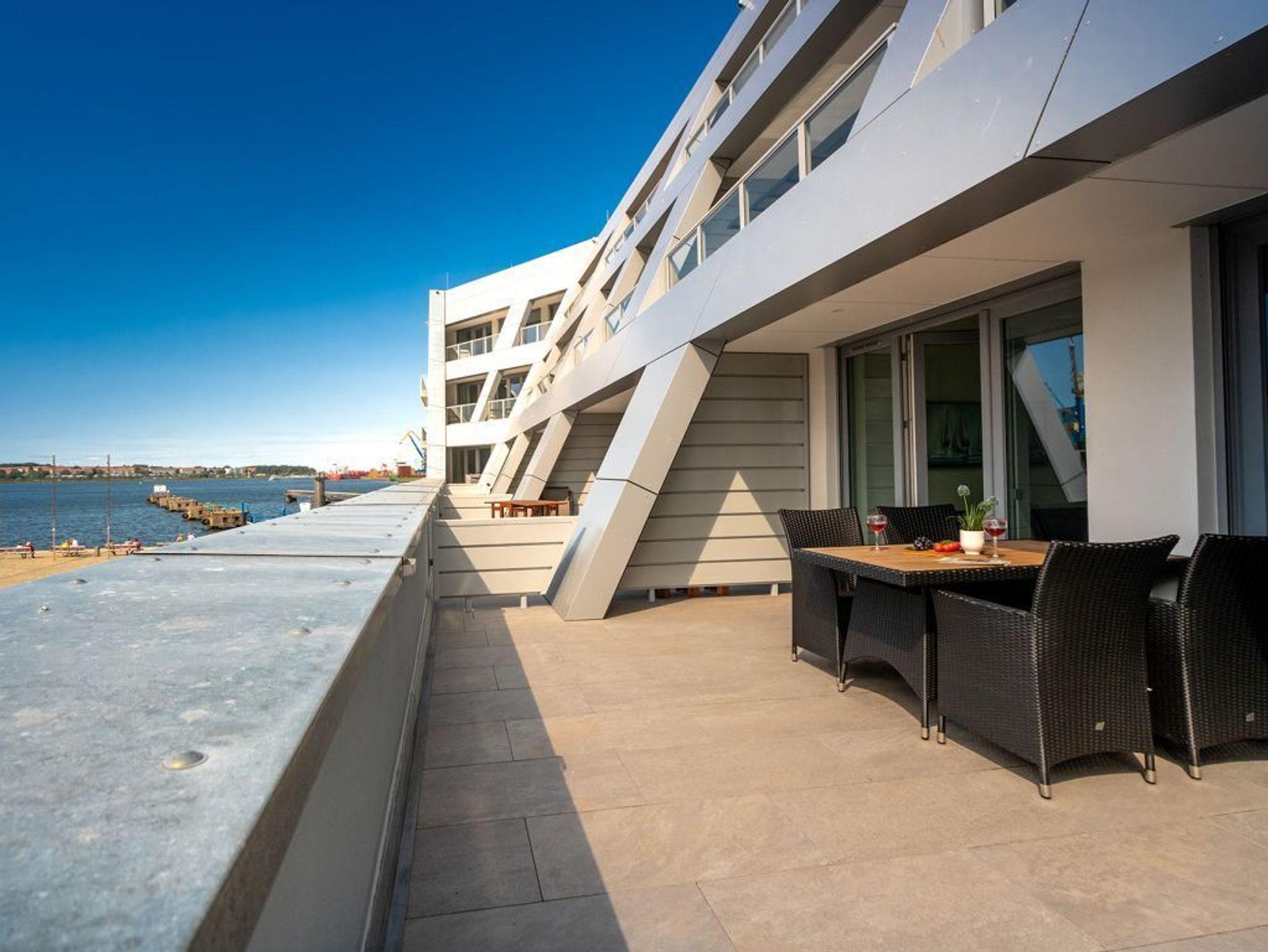 Die hier beschriebenen Ferienwohnung Hafenspitze 10 ist ein sehr ansprechendes 2-Zimmer Appartement mit Terrassenloggia. Die Wohnfläche beträgt 49qm. Eine integrierte, voll ausgestattete Küchenzeile ist vorhanden. Zugehörig sind ein separates Schlafzimmer sowie 1 moderndes Duschbad. Bei Anreise sind bezogene Betten sowie Handtücher für 2 Personen inklusive. Eine Belegung dieser Wohnung ist mit maximal 4 Personen möglich. Es handelt sich um eine Nichtraucherwohnung. Parkmöglichkeiten gegen Gebühr befinden sich im Parkhaus in ca. 300 Meter.