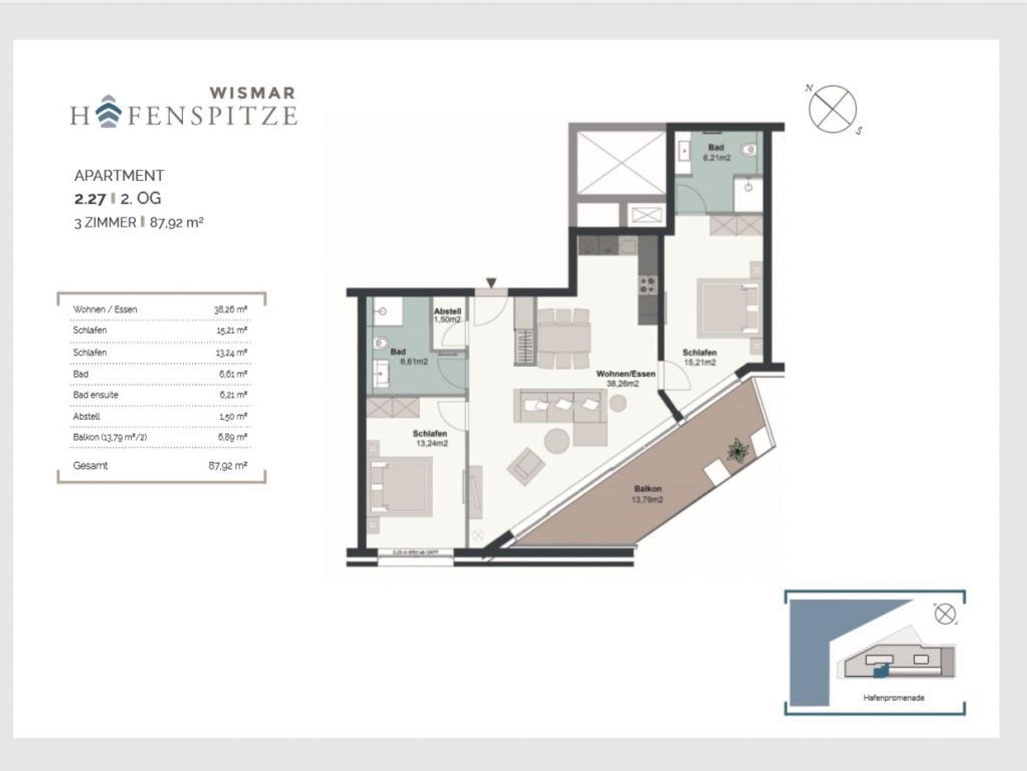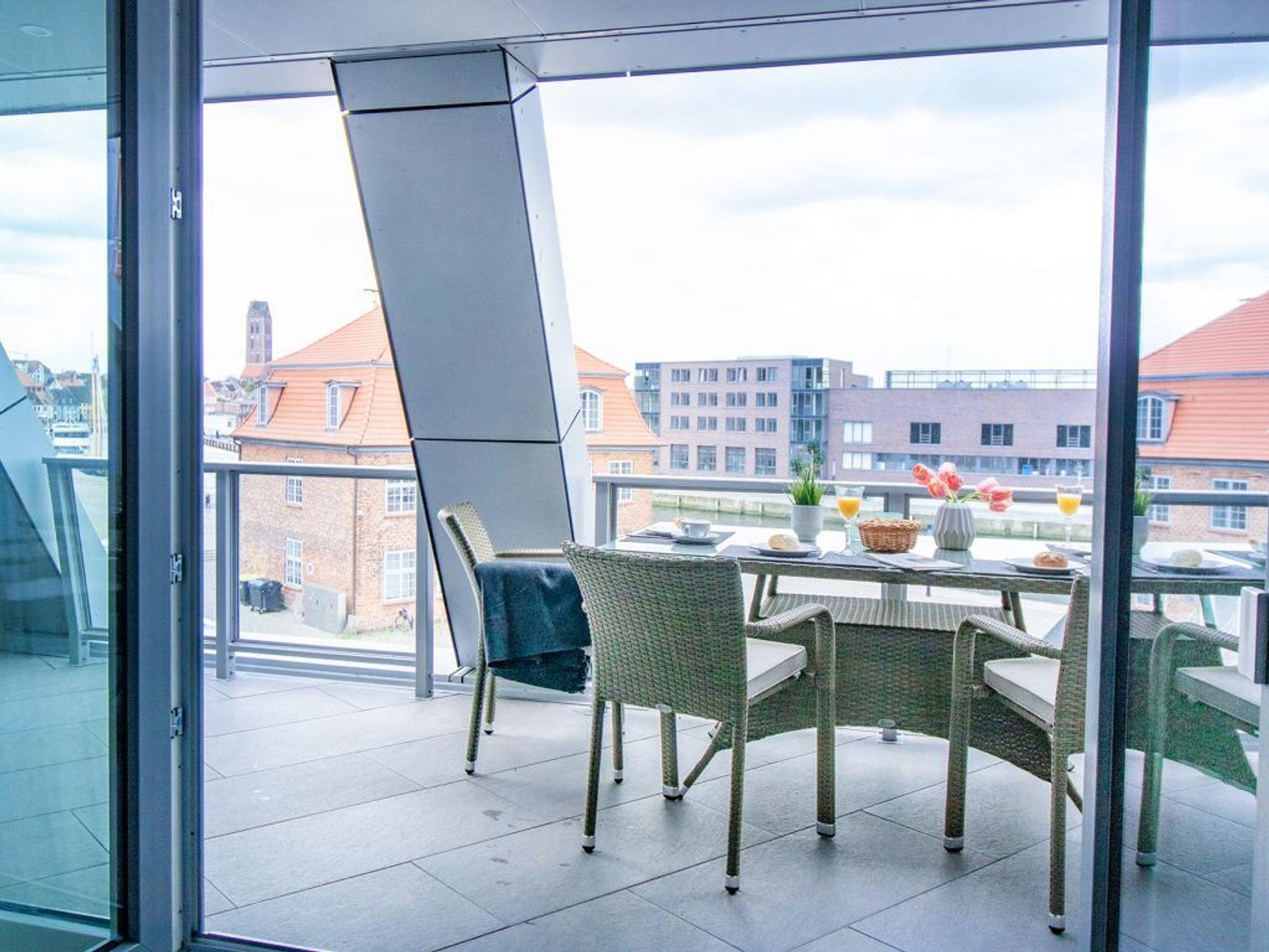 Das außergewöhnlich großzügige 3-Zimmer Komfort Appartement Hafenspitze 27 mit großem Balkon und Sicht auf den lebendigen Hafen, ist mit eine Wohnfläche von 88qm perfekt für bis zu 4 Personen. Eine hochwertige Wohnküche ist integriert. Zwei separate Schlafzimmer sowie zwei Badezimmer sind vorhanden. Bei Anreise sind die Betten für 2 Personen bereits bezogen. Handtücher sind ebenfalls für 2 Personen inklusive. Es handelt sich um eine Nichtraucherwohnung im 2. Obergeschoss. Parken gegen Gebühr ermöglicht das neue Parkhaus am Alten Hafen in 300 Meter.