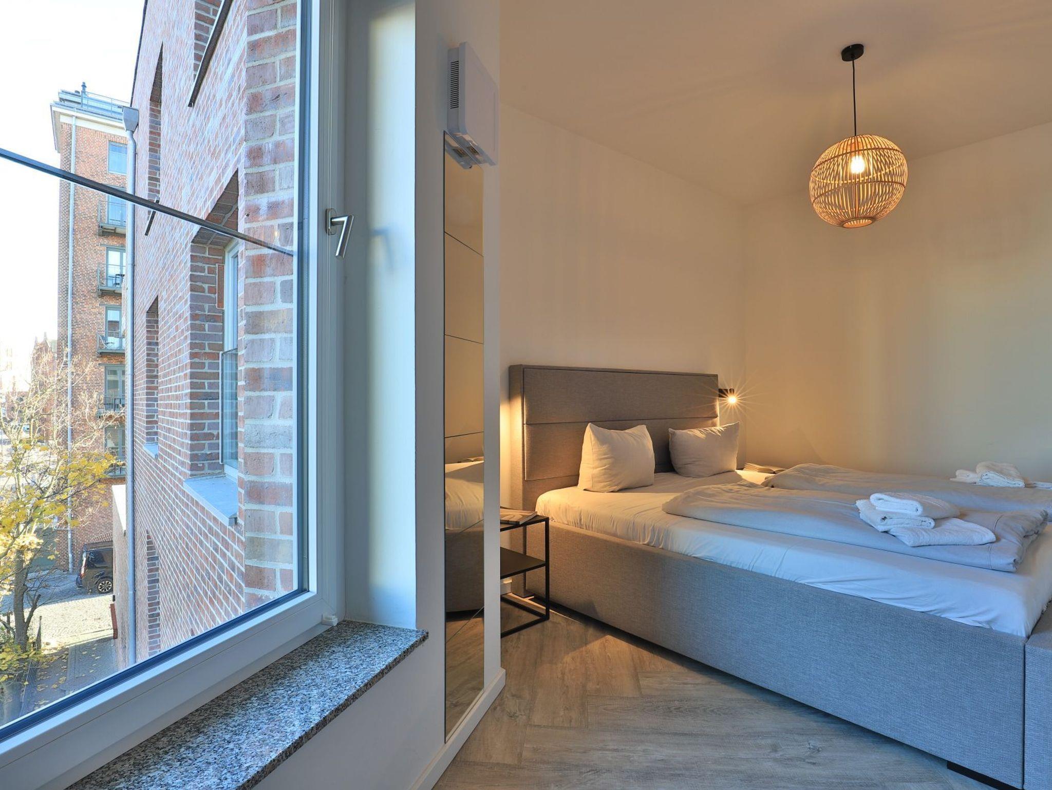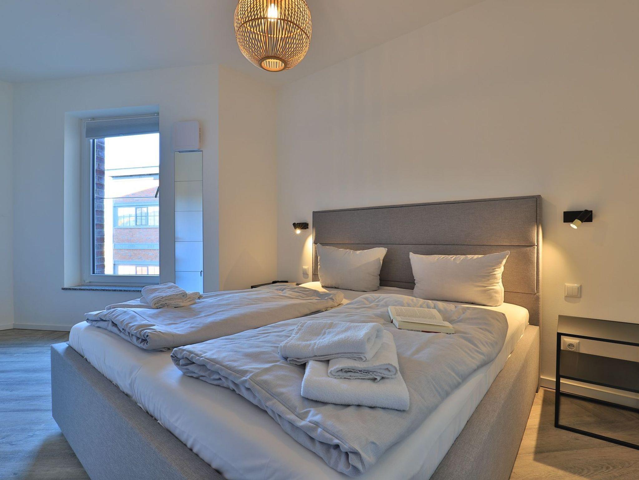 Das hier beschriebene Domizil Hafenspitze 21 bietet als 2-Zimmer-Ferienwohnung mit Balkon besten Komfort. Die geräumige Wohnfläche beträgt 56qm und ist ideal für eine Belegung mit 2 Personen. Mit maximal 4 Personen ist eine Buchung möglich. Diese Wohneinheit verfügt, wie alle Appartements der Hafenspitze, über eine voll ausgestattete Küchenzeile. Ein separates Schlafzimmer sowie 1 moderndes Duschbad mit Fußbodenheizung sind zugehörig. Bei Anreise mit 2 Personen sind bezogene Betten und Handtücher inklusive. Es handelt sich um eine Wohnung für Nichtraucher. Parkmöglichkeiten gegen Gebühr befinden sich im nah gelegenen Parkhaus in ca. 300 Meter.