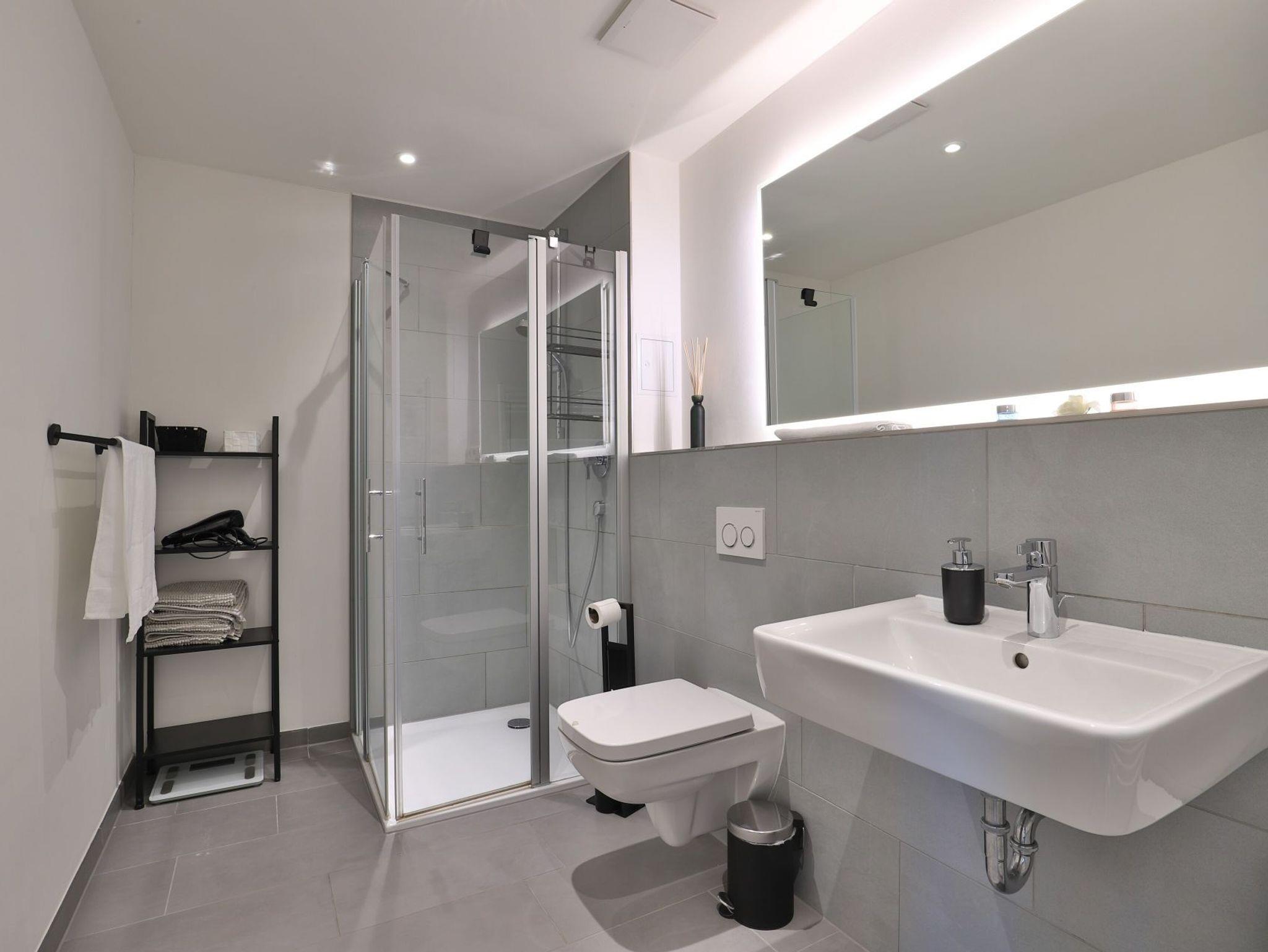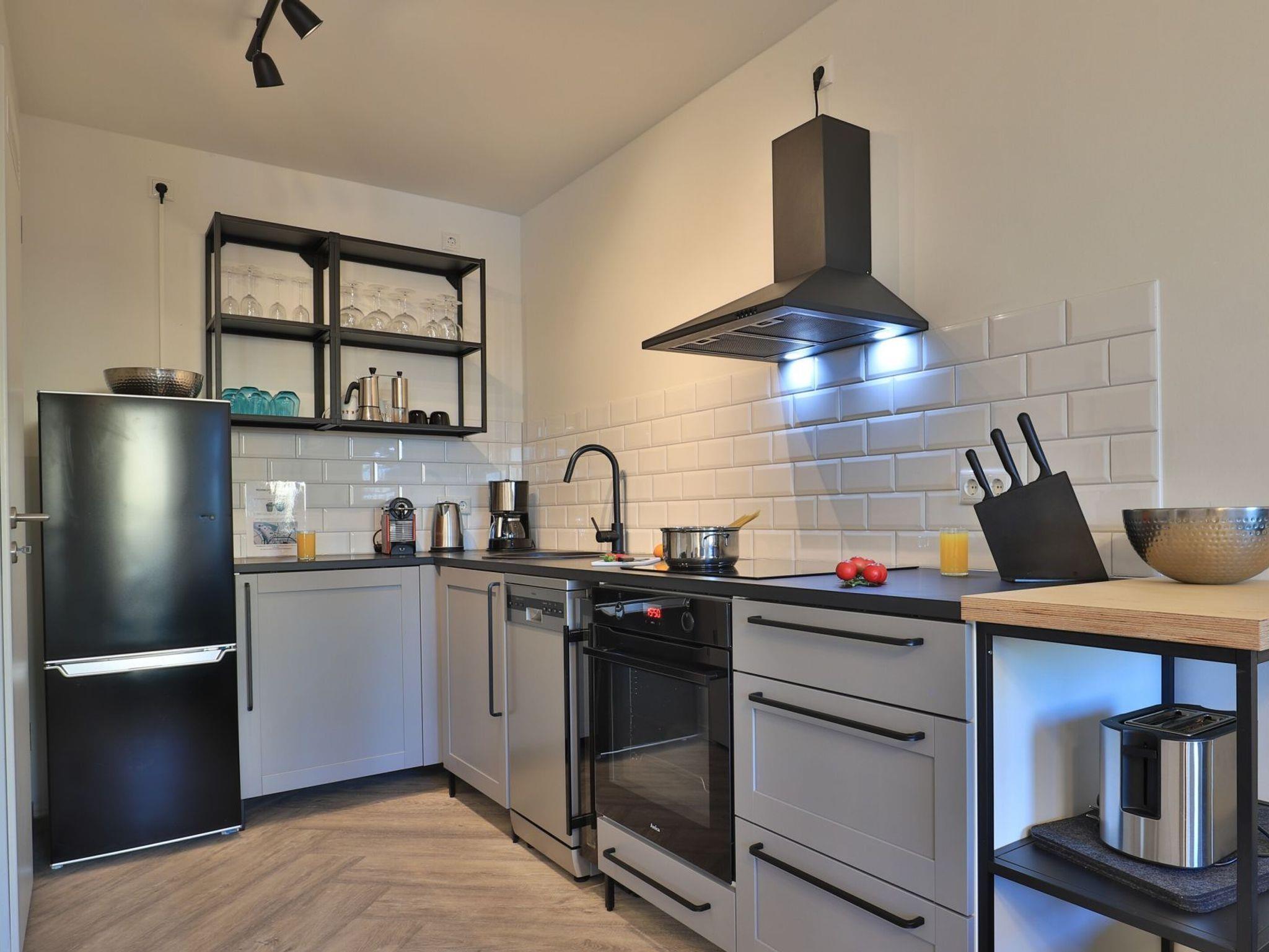 Für gemeinsame Mahlzeiten befindet sich ein großzügiger Esstisch im Wohnraum Ihres Appartements. Integriert ist zudem eine offene Wohnküchenzeile, die bestens ausgestattet ist mit Ceranfeldherd sowie Kleingeräten Toaster, Kaffeemaschine, Wasserkocher usw. Die Ferienwohnung verfügt ebenso über ein separates Schlafzimmer mit Doppelbett und einem Schrank für Ihre Garderobe. Ihr Morgen beginnt in einem komfortablen, innenliegenden Badezimmer mit bodentiefer Dusche, WC und Handtuchheizkörper. Als inklusive Leistung sind bei Ihrer Anreise die Betten für 2 Personen bereits bezogen und auch Hand/ Duschtücher liegen bereit.