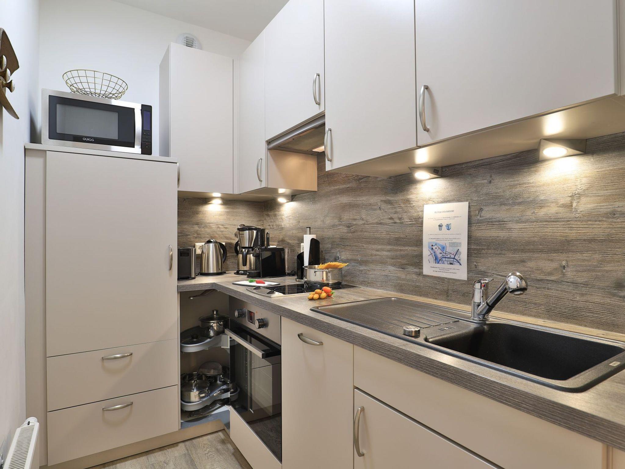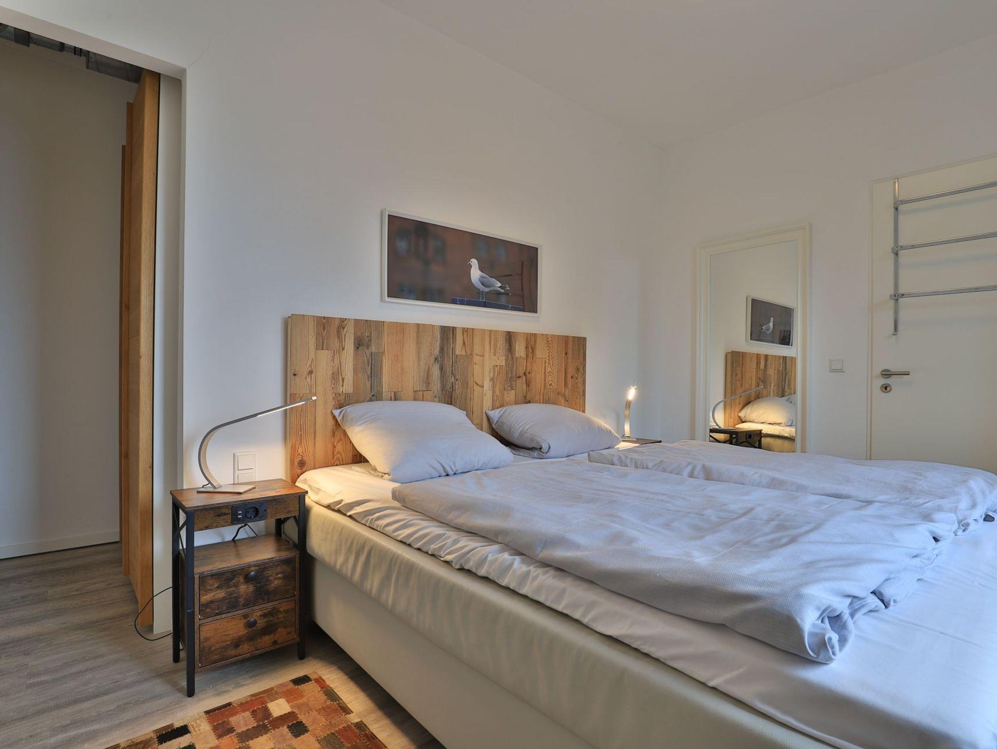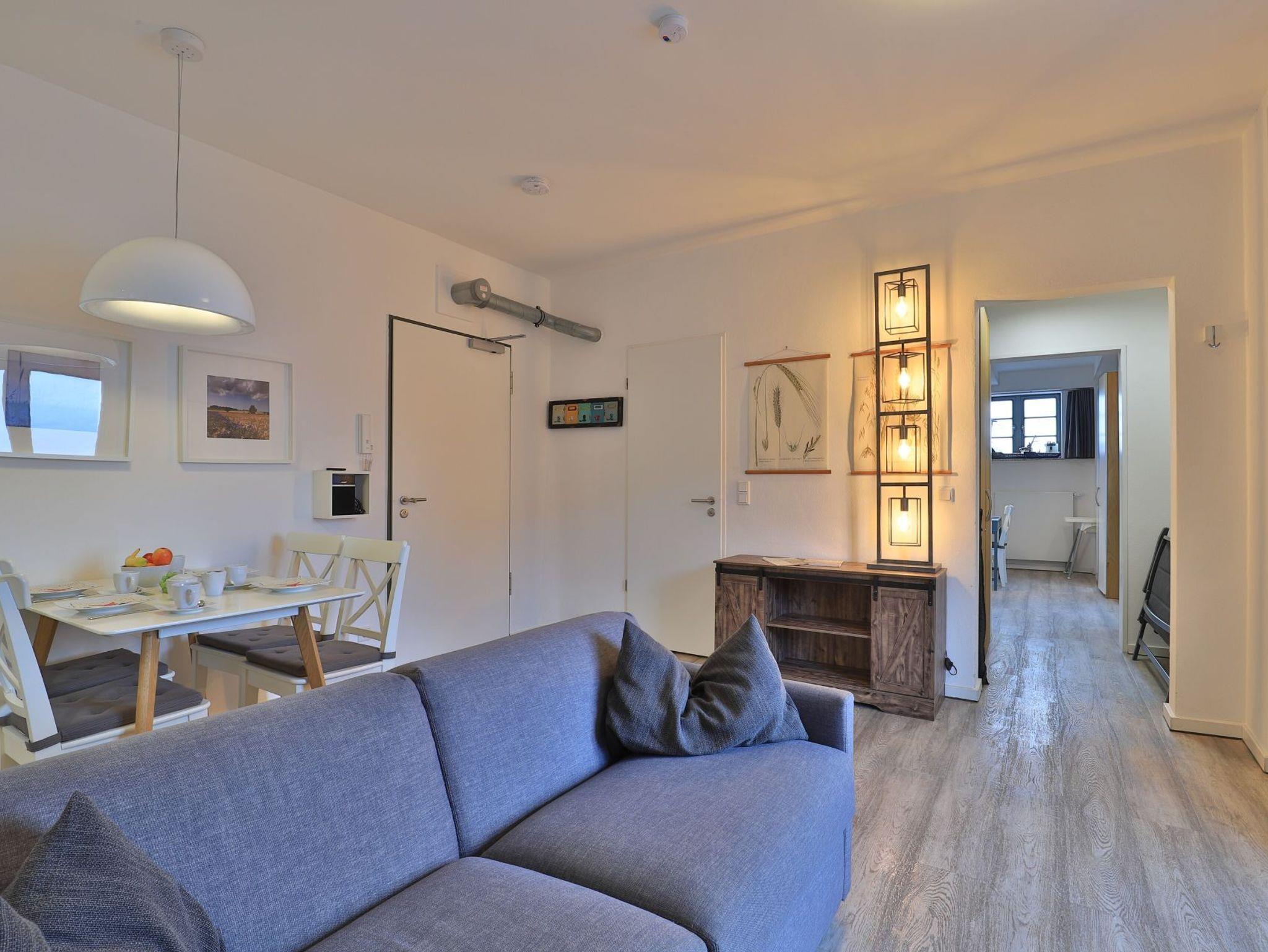 Das hochwertig ausgestattete 3-Zimmer-Appartement befindet sich in der 2.Etage des Gebäudes. In dem Appartement können auf 63 m² bis zu 6 Personen einen traumhaften Urlaub verbringen. Das komfortable Wohnzimmer mit Fernseher und integrierter Küche lädt zum Verweilen ein. Die 2 separaten Schlafzimmer bieten für 4 Personen erholsame Nächte. Des Weiteren verfügt das stilvolle Appartement über ein Duschbad und eine Sauna. Bei Anreise sind 2 Betten bezogen und Handtücher liegen für Sie bereit. WLAN steht Ihnen kostenfrei zur Verfügung. In unmittelbarer Nähe sind öffentliche Parkplätze vorhanden.