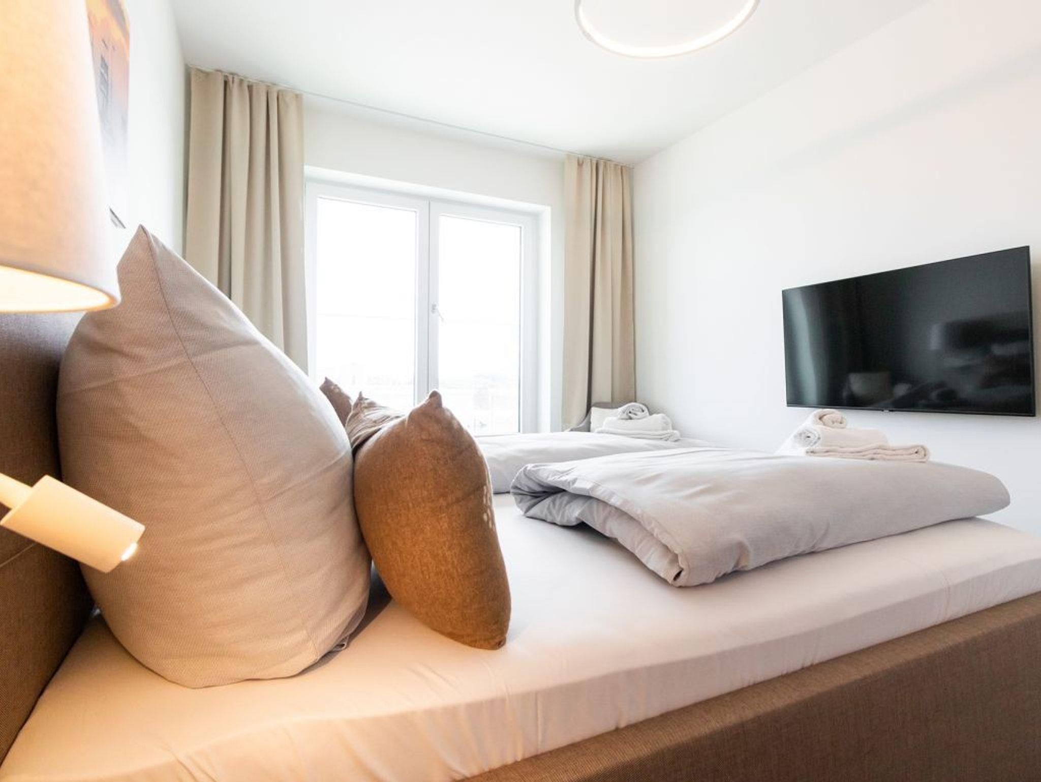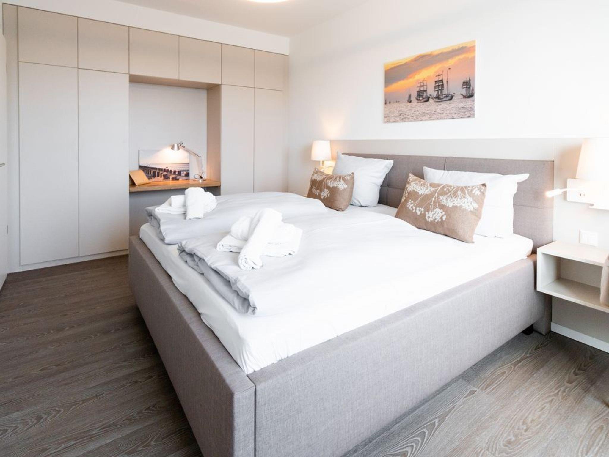 Die 2-Zimmer-Ferienwohnung Hafenspitze 19 ist sehr hochwertig ausgestattet. Vom Balkon blicken Sie auf das Geschehen im Hafen. Die Wohnfläche umfasst 59qm und bietet ein gutes Platzangebot für bis zu 4 Personen. Eine offene, voll ausgestattete Wohnküche ermöglicht Ihnen bei Bedarf die Selbstversorgung. Die Wohneinheit verfügt über ein separates Schlafzimmer zudem ein Bad mit bodengleicher Duschkabine. Bei Anreise sind bezogene Betten sowie Handtücher für 2 Personen inklusive. Das im 2. Obergeschoss gelegene Appartement ist bequem mit dem Fahrstuhl erreichbar. Es handelt sich um eine Nichtraucherwohnung. Parkmöglichkeiten finden Sie gegen Gebühr im Parkhaus in ca. 300 Meter.