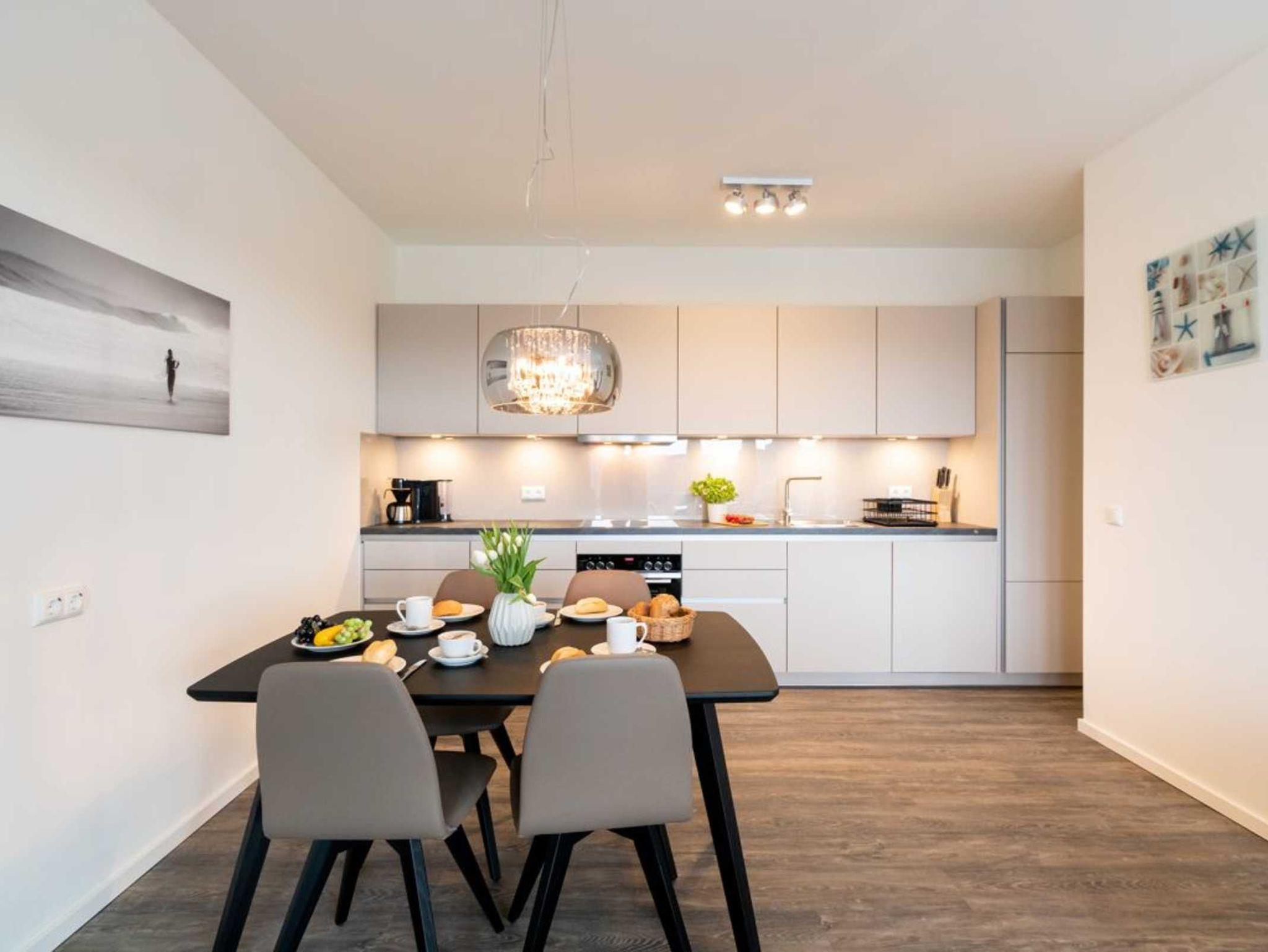 In der 3. Wohnebene befindet sich das lichtdurchflutete 2-Zimmer-Appartement in der Hafenspitze 39, welches bequem mit dem Fahrstuhl erreichbar ist und ideale Voraussetzungen für einen Urlaub mit gehobenen Ansprüchen bietet. Die vorteilhaft unterteilte Wohnfläche ermöglicht mit 66qm eine Belegung mit bis zu 4 Personen. Begeistern wird Sie auch die großzügige, saisonal möblierte Hafenblick Loggia, die sowohl vom Wohnbereich als auch vom Schlafzimmer aus begehbar ist. Der behaglich möblierte Wohn-Essbereich verfügt über ein hochwertiges Schlafsofa mit zwei Schlafgelegenheiten, einen Esstisch sowie Flachbild Fernseher und Internetradio mit Hotelmodus. Kostenfrei steht für Sie die Nutzung des hauseigenen WLAN-Anschluss bereit.