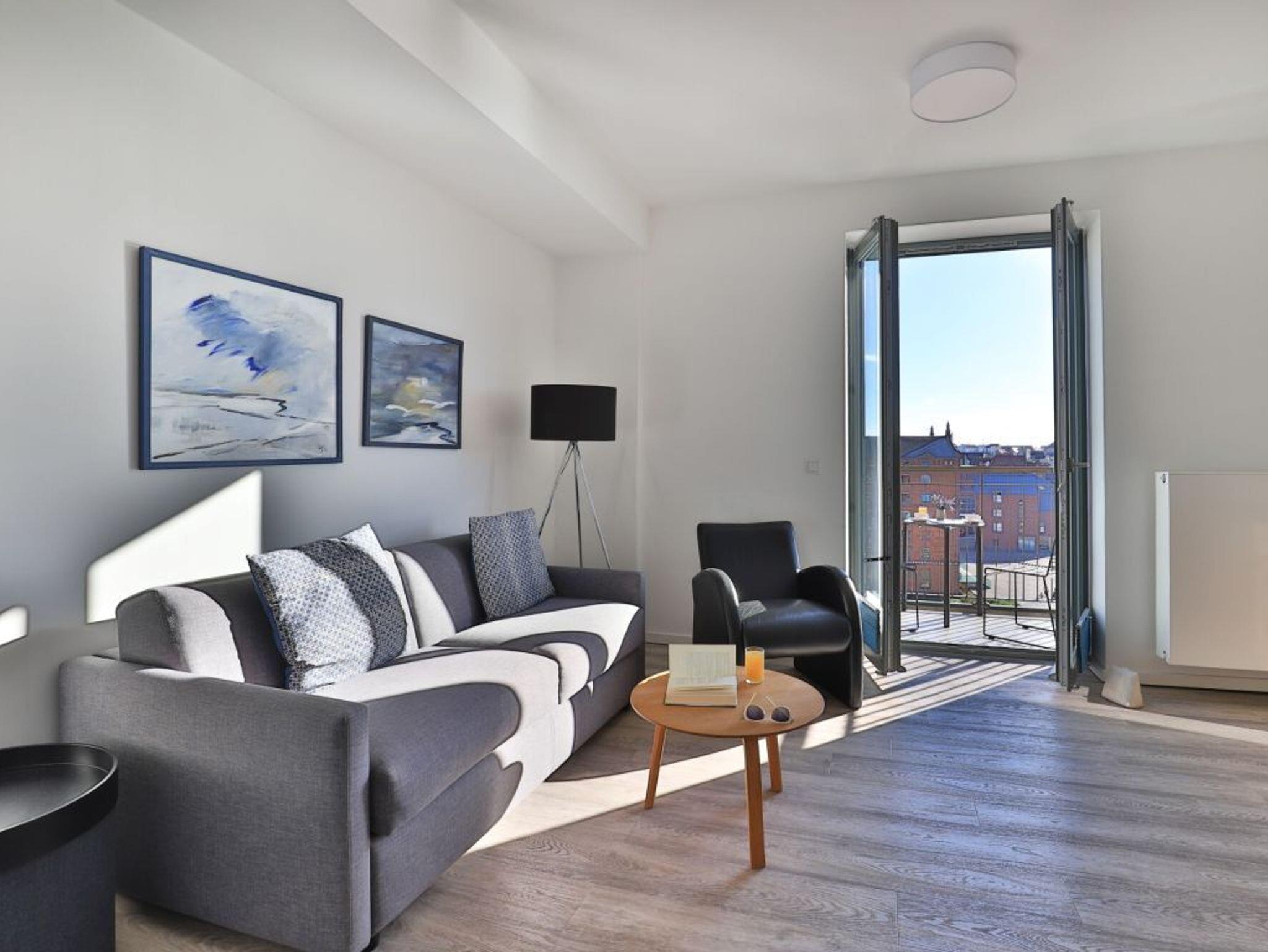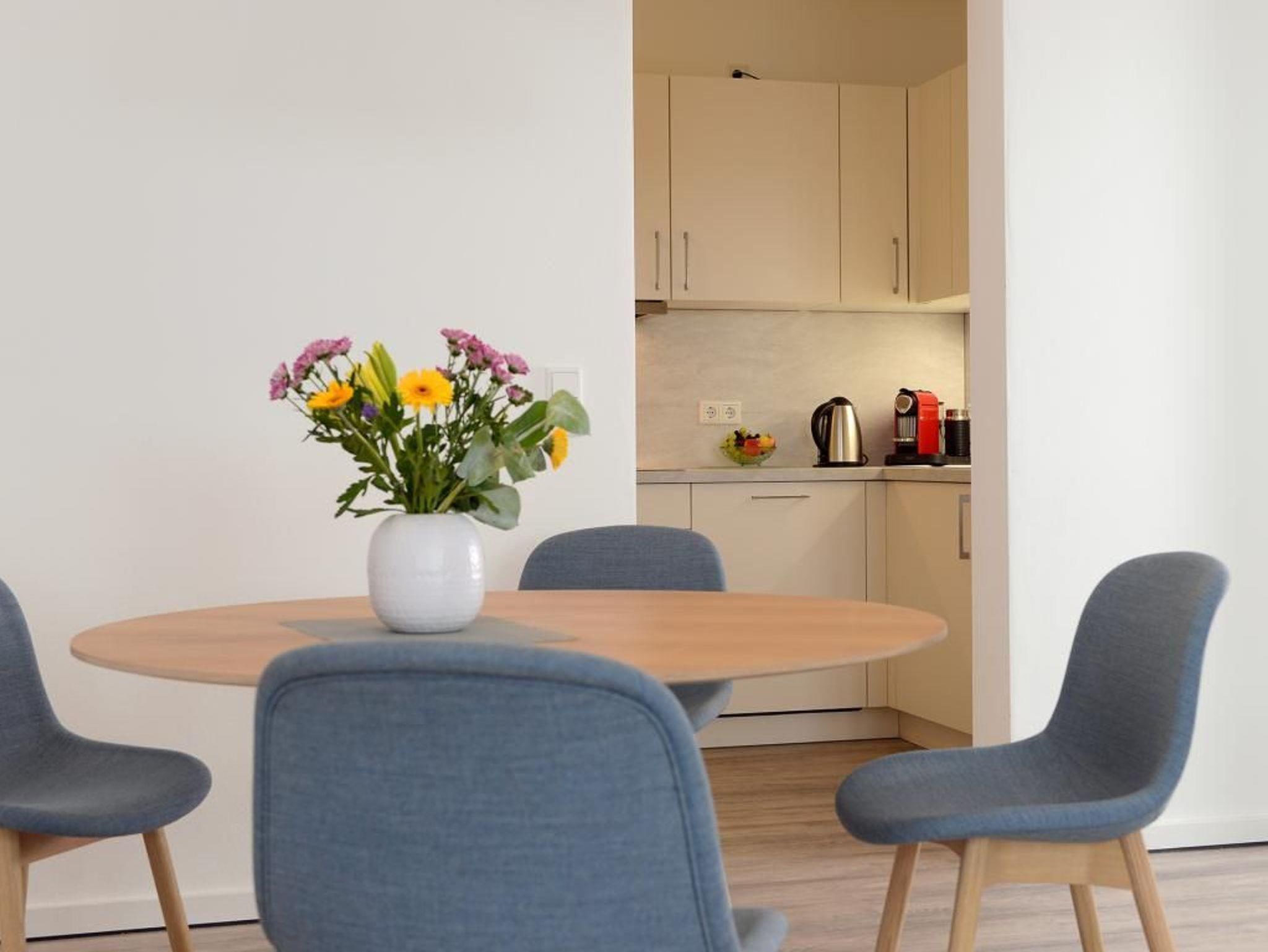 Das charmante 2- Zimmer-Appartement lässt sich durch den Lift auf der 5. Etage leicht erreichen. Mit seinen 51 m² Wohnfläche bietet es ausreichend Platz für 4 Personen. Der hell und freundlich eingerichtete Wohn-/Essbereich ist mit einem Sofa und einem TV Gerät ausgestattet. Von dort aus haben Sie direkten Zugang zum Balkon, von dem Sie einen spektakulären Ausblick genießen können. Die hochwertige Küche ist komplett mit Mikrowelle, Geschirrspüler, Kaffeemaschine, Wasserkocher, Kühlschrank und vielem mehr ausgestattet. Im Schlafzimmer sorgt befindet sich ein weiteres TV-Gerät. Das Duschbad ist sehr stilvoll ausgestattet.