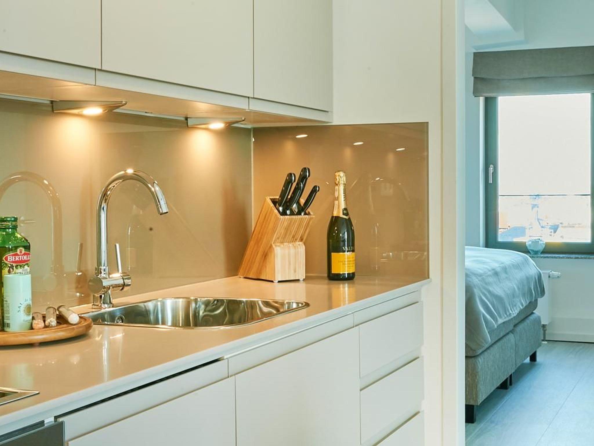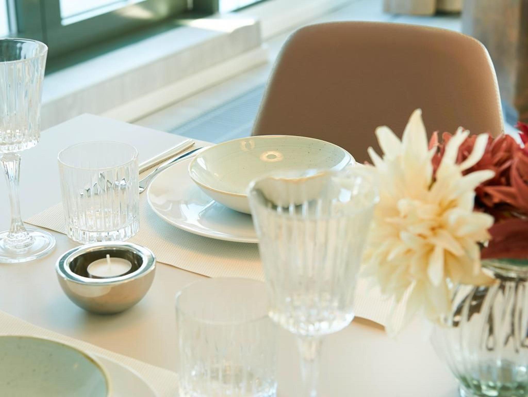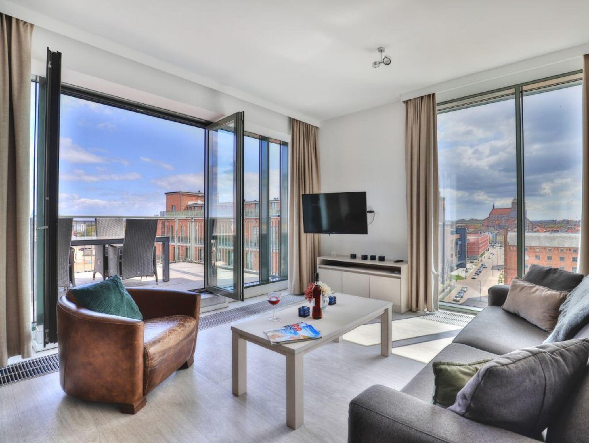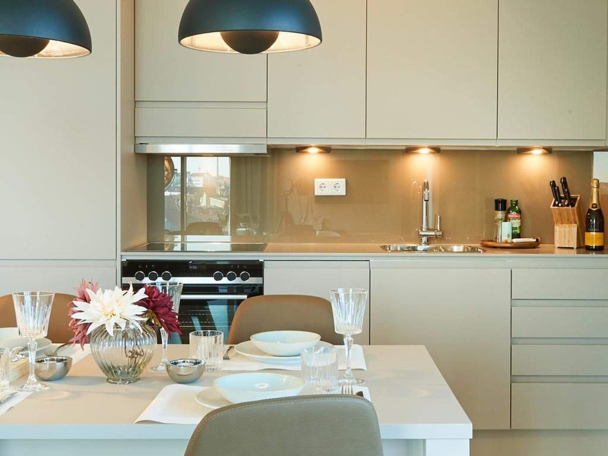 Das exklusive 3-Zimmer-Appartement in der 7. Etage, verfügt über 94m² Wohnfläche und einer Terrasse mit spektakulärem Ausblick. Bis zu 6 Personen können hier einen traumhaften Urlaub verbringen. Das Wohn- / Esszimmer mit integrierter Küche ist sehr geschmackvoll mit einem Sofa, einer Essecke und einem TV- Gerät ausgestattet. Von dort haben Sie den Zugang zur Dachterrasse.