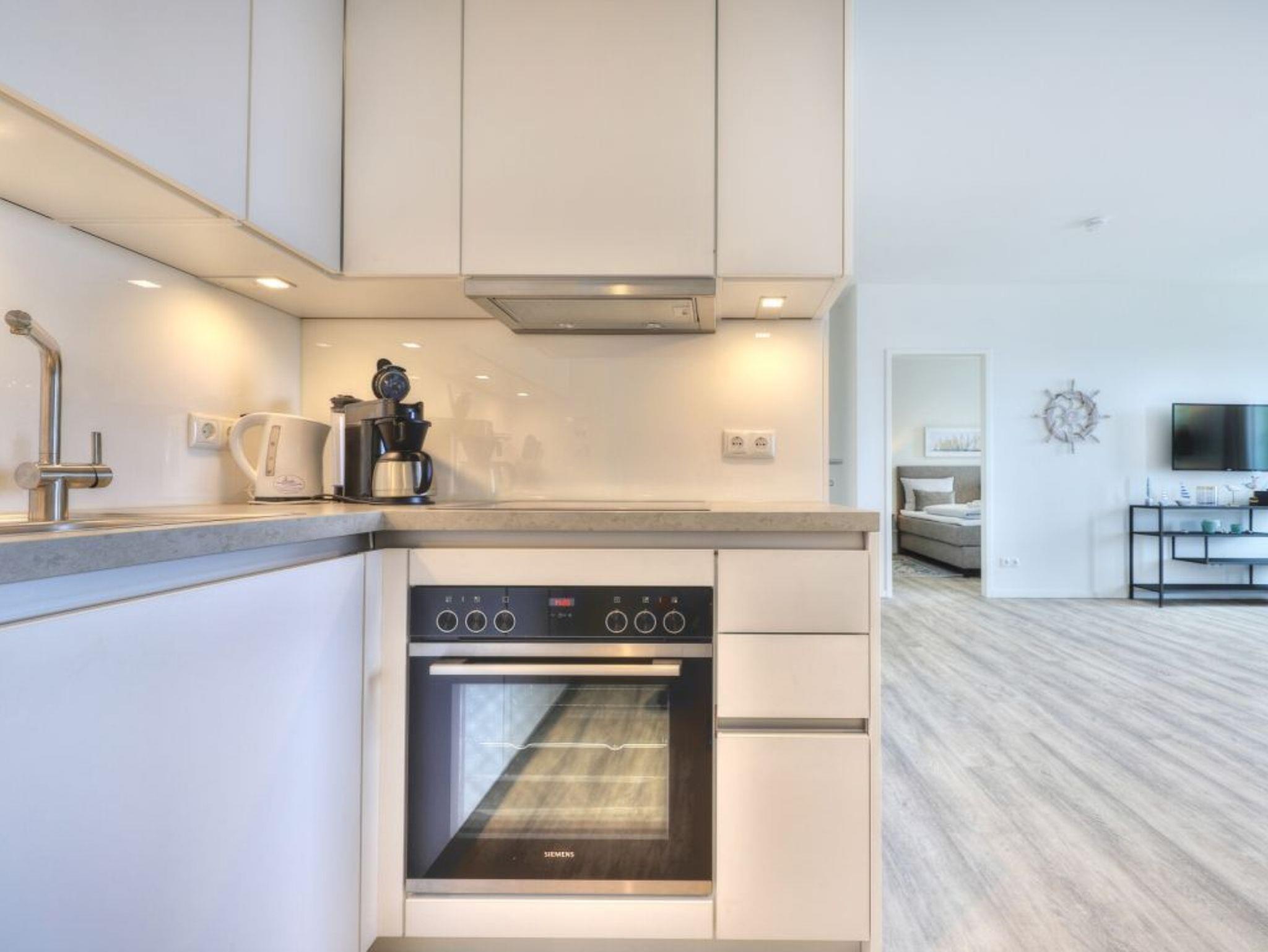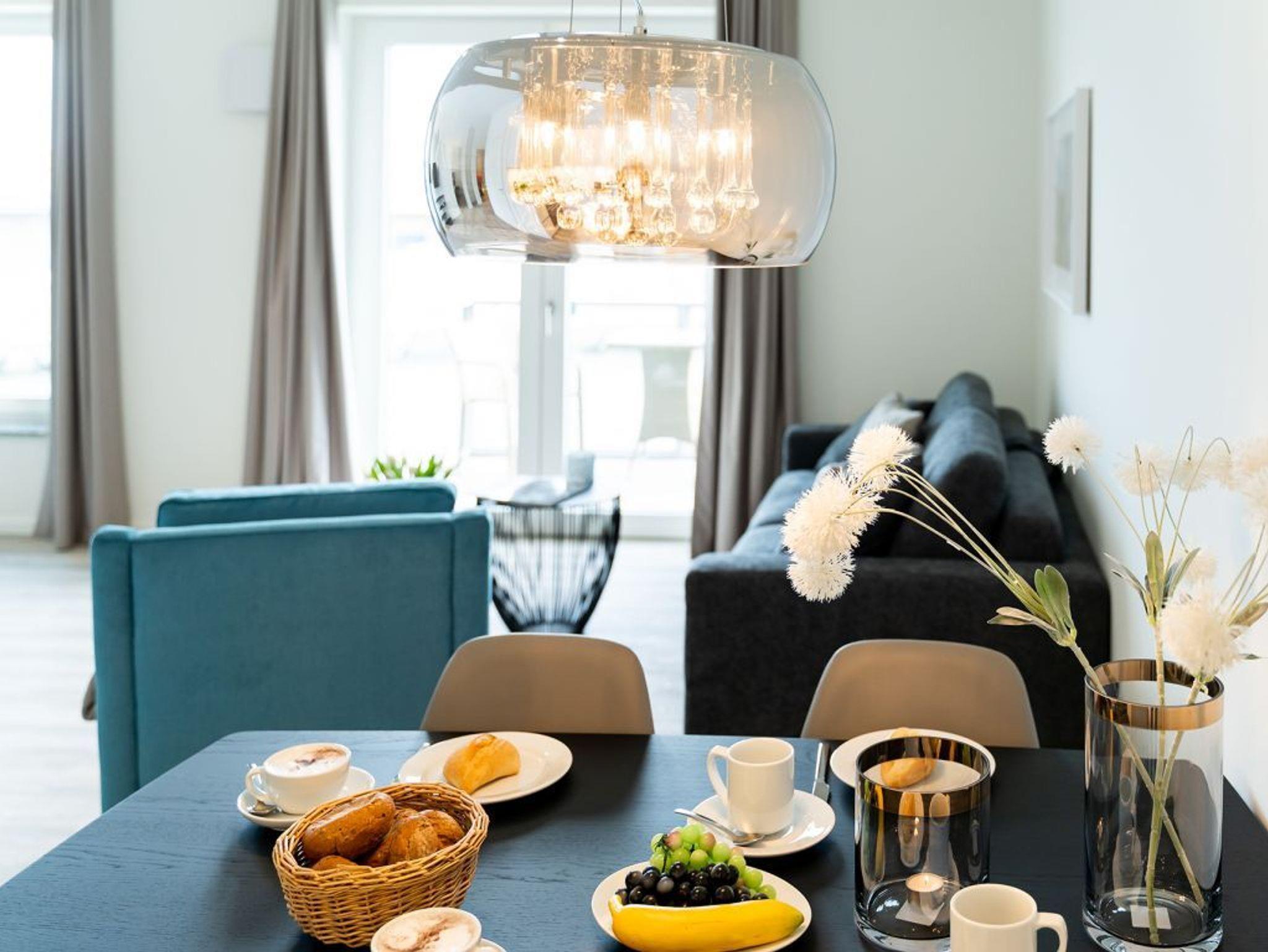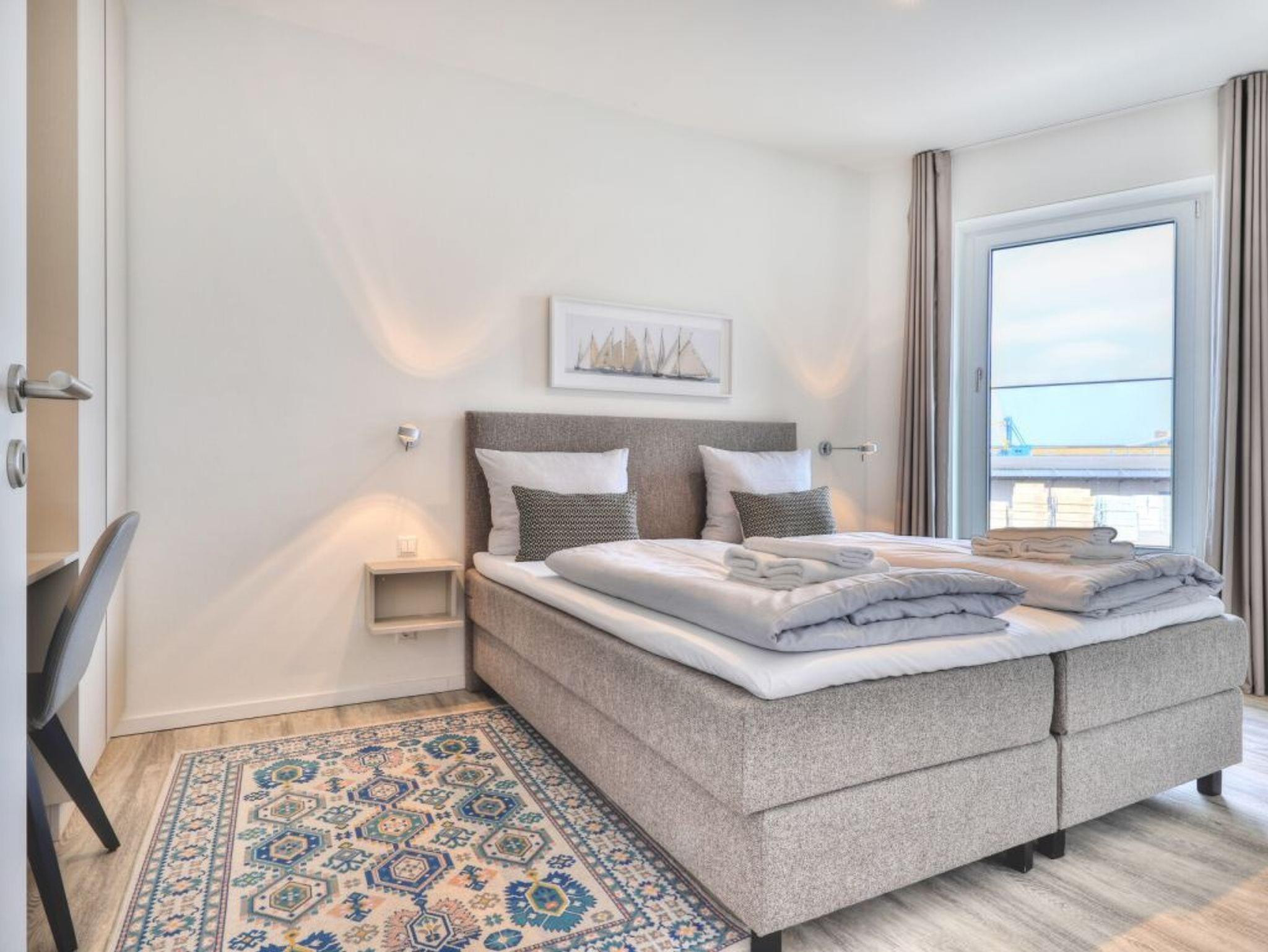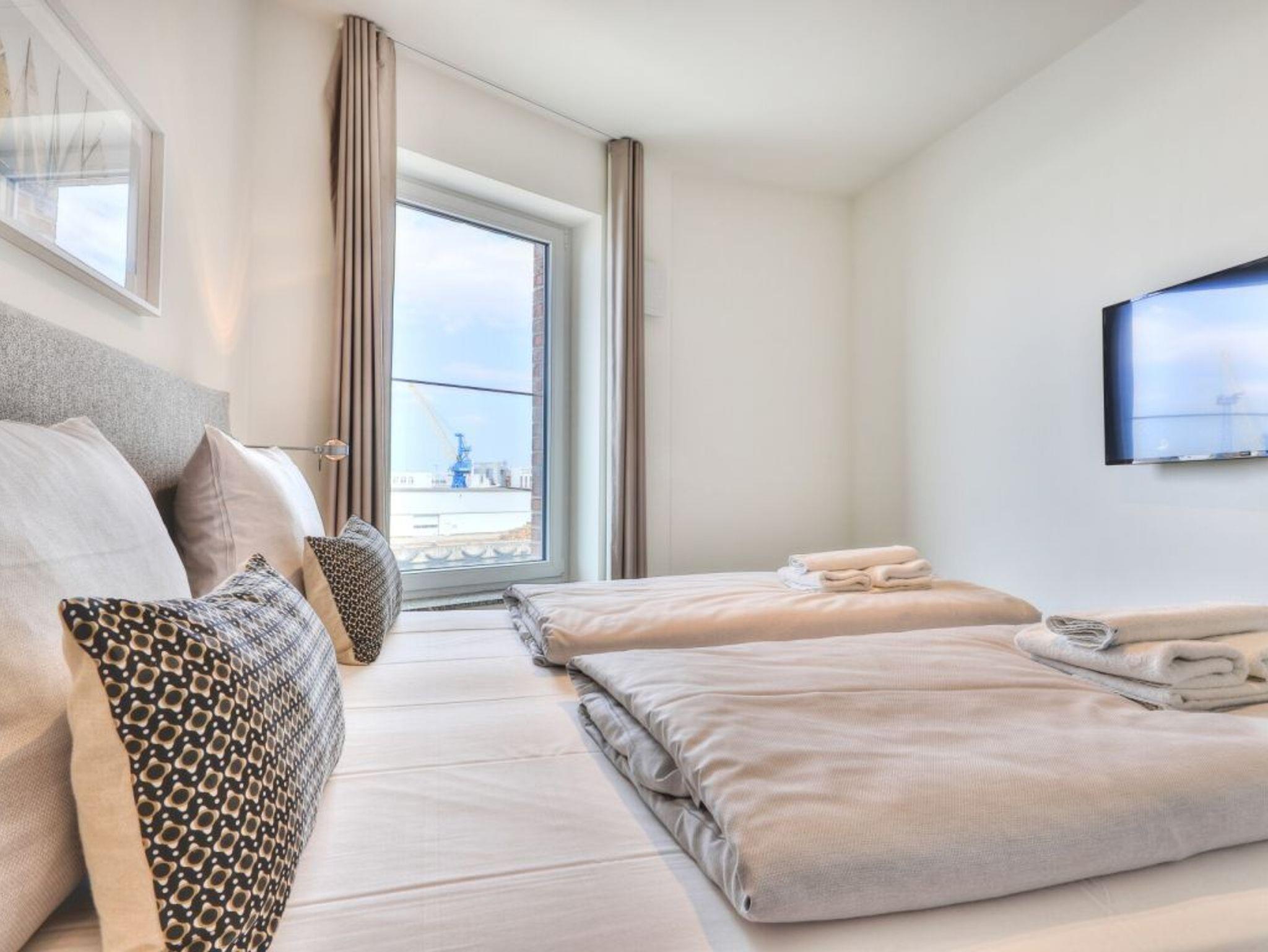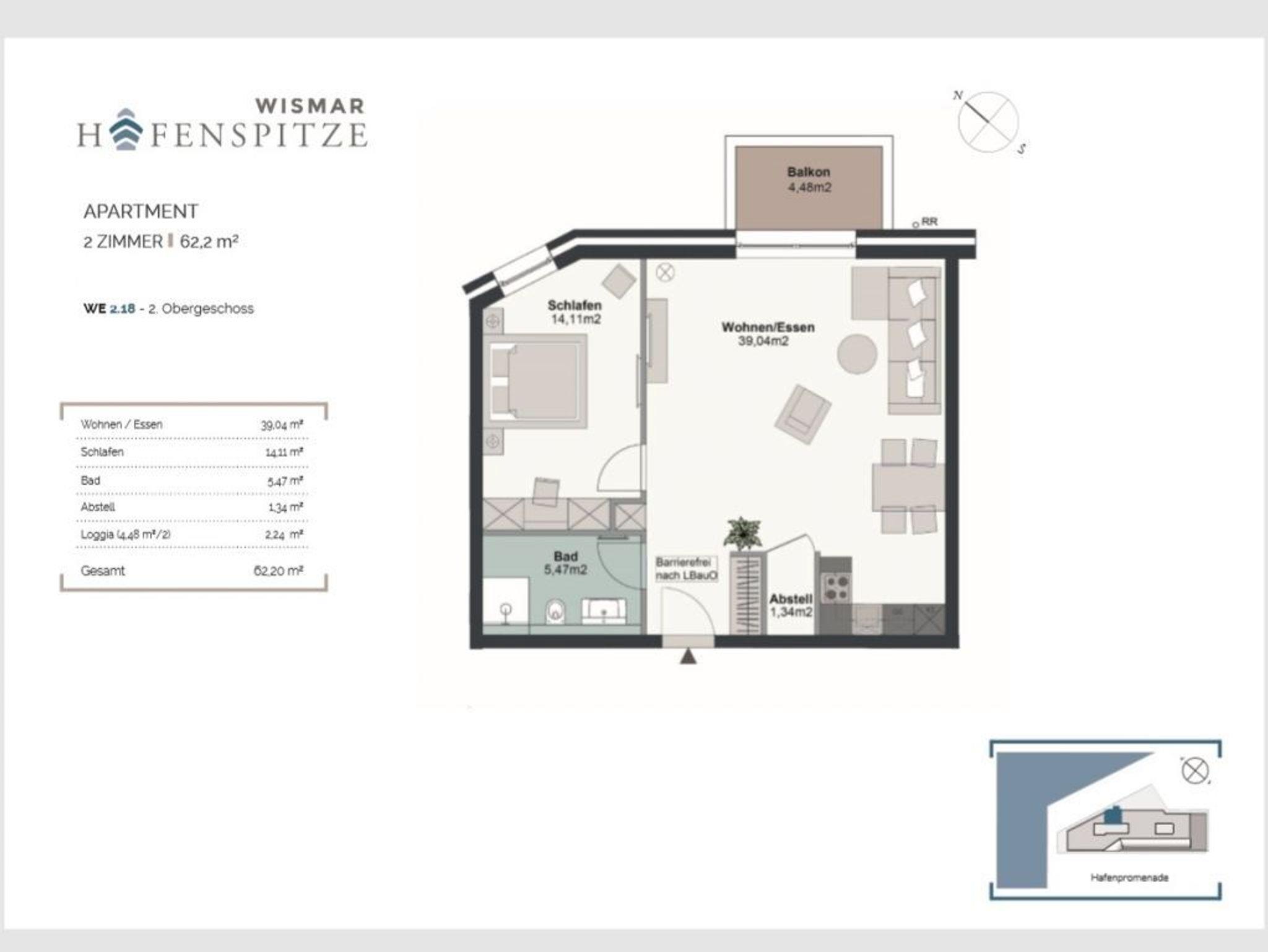 Ankommen und direkt wohlfühlen ermöglicht Ihnen das schicke 2-Zimmer-Appartement Hafenspitze 18, welches sich im 2. Obergeschoss des Hauses befindet. Mit dem Fahrstuhl erreichen Sie bequem die 2. Etage. Es empfängt Sie eine großzügige Ferienwohnung mit einer Wohnfläche von 63qm, welche eine Belegung mit bis zu 4 Personen ermöglicht. Der helle Wohn-Essbereich ist sehr modern gestalten und besitzt einen Balkon mit Hafenblick in Richtung Holzhafen sowie der einfahrenden Kreuzfahrtschiffe. Zur technischen Unterhaltung sind Internet Fernseher mit Hotelmodus, Internetradio und kostenfreie WLAN-Nutzung vorhanden.