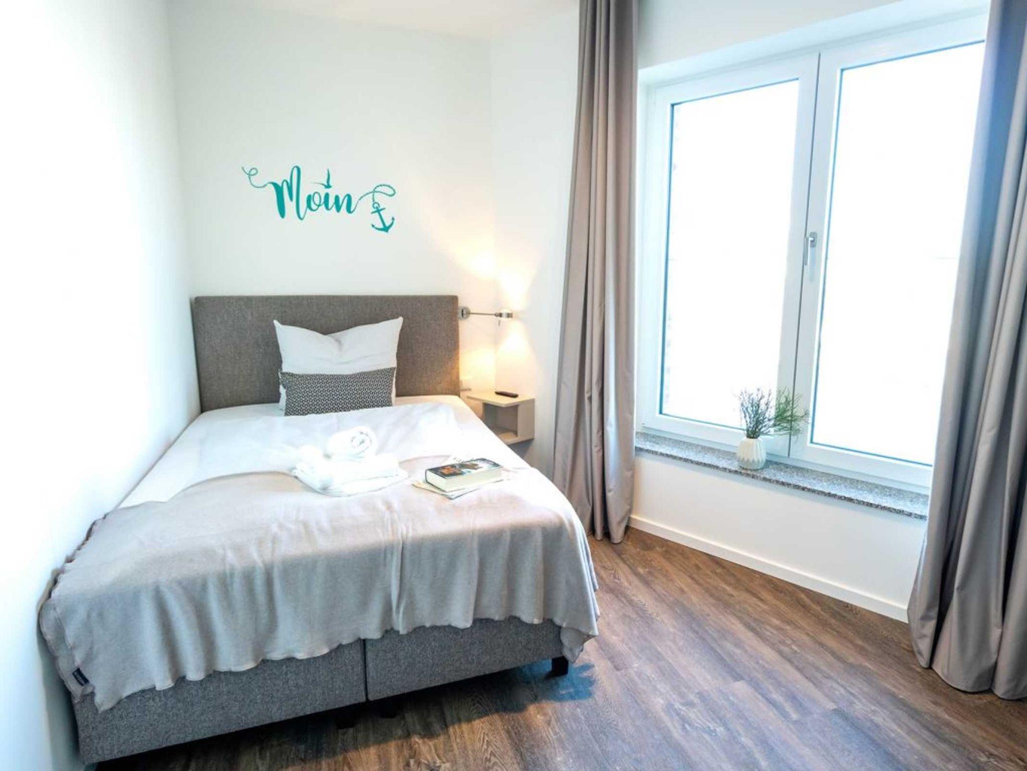 Internetfähiges Fernsehen mit Hotelmodus sowie ein Internetradio stehen ebenso zur Verfügung, wie kostenfreie WLAN-Nutzung. Das schicke Appartement bietet zudem einen saisonal möblierten Balkon in nördliche Ausrichtung, von dem Sie auf das Meer sowie den Holzhafen schauen. Die Belegung dieser Wohneinheit ist ideal für bis zu 3 Personen, da die großzügige Aufteilung mit zwei separaten Schlafzimmern nahezu ideal ist.