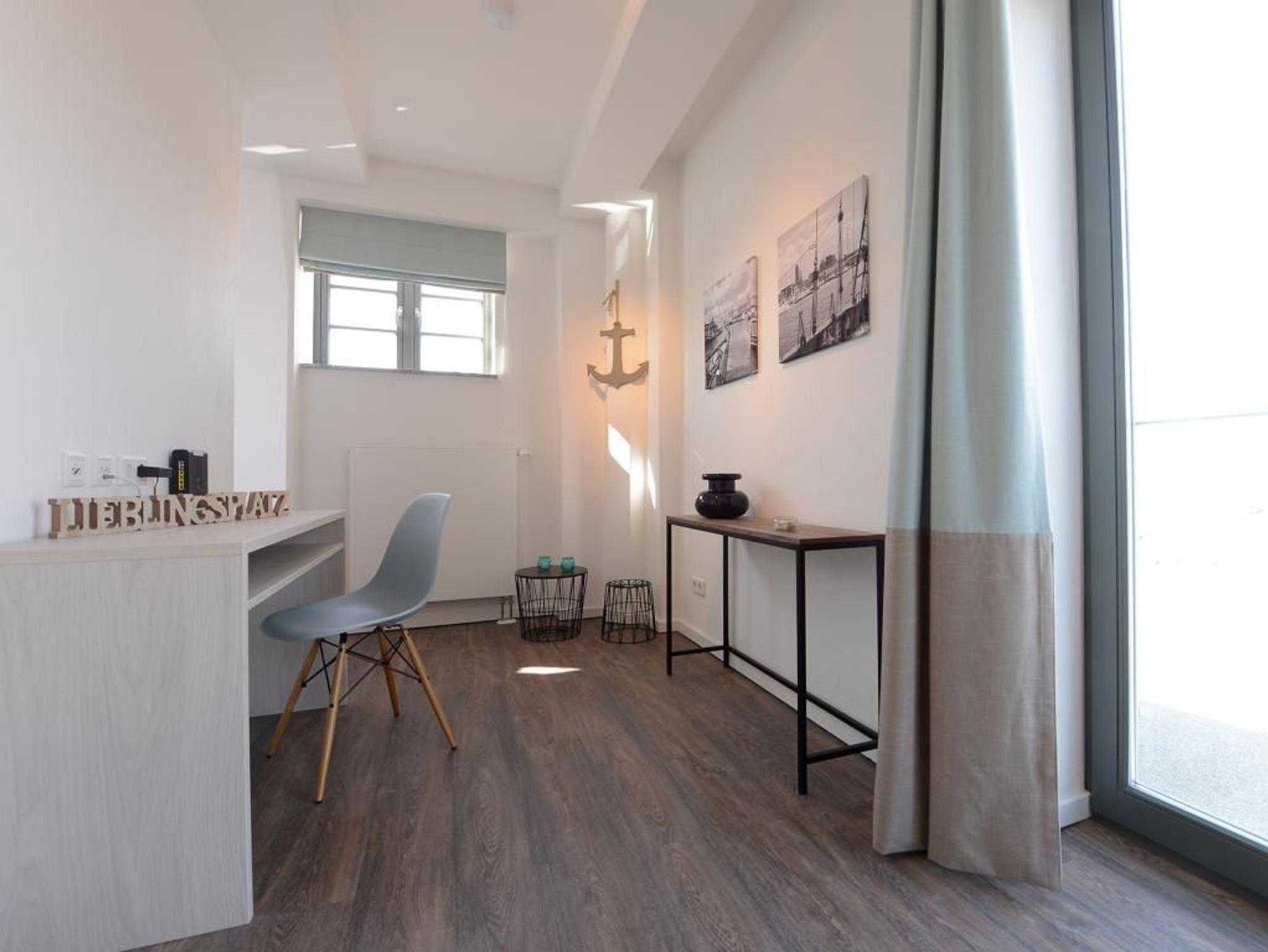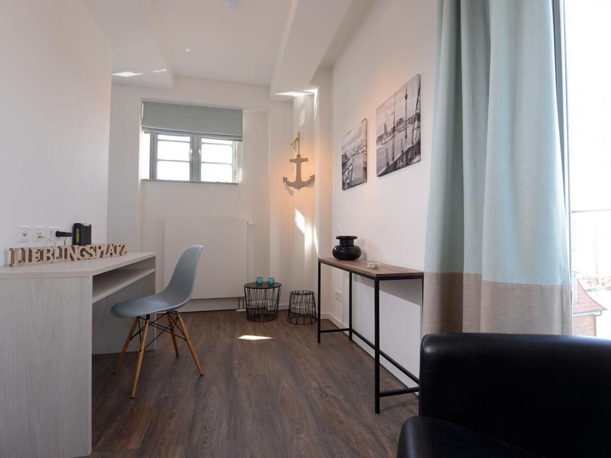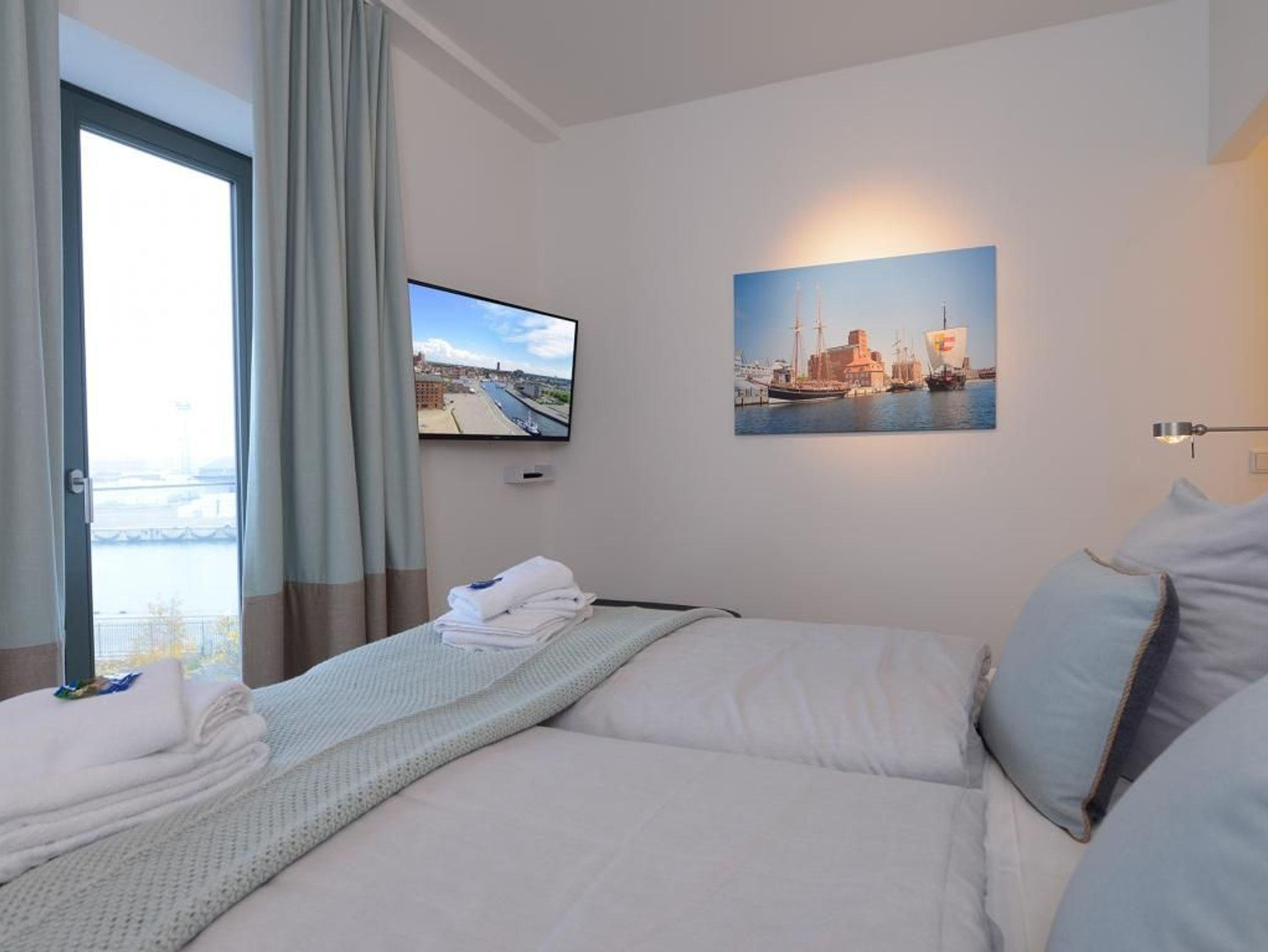 Appartementhaus mit 48 Appartements. Das hochwertig eingerichtete 3-Zimmer-Appartement mit einer Größe von 63 m² befindet sich in der 3. Etage des Speichers. Bis zu 4 Personen können hier einen Urlaub der Extraklasse verbringen. Der kombinierte Wohn- und Essbereich mit Sofa, TV Gerät und Esstisch ist sehr komfortabel eingerichtet. Von hier gelangen Sie auf den nach Nord/West gerichteten Balkon und genießen einen bezaubernden Blick über den Wismarer Hafen. Die separate Küche ist voll ausgestattet und lässt somit keine Wünsche offen. Die 2 separaten Schlafzimmer sind jeweils mit einem Doppelbett, einem Kleiderschrank und einem Fernseher ausgestattet. Das moderne Duschbad rundet die exklusive Einrichtung ab. Bei Anreise sind 2 Betten bezogen und Handtücher liegen für Sie bereit. WLAN steht Ihnen kostenfrei zur Verfügung.