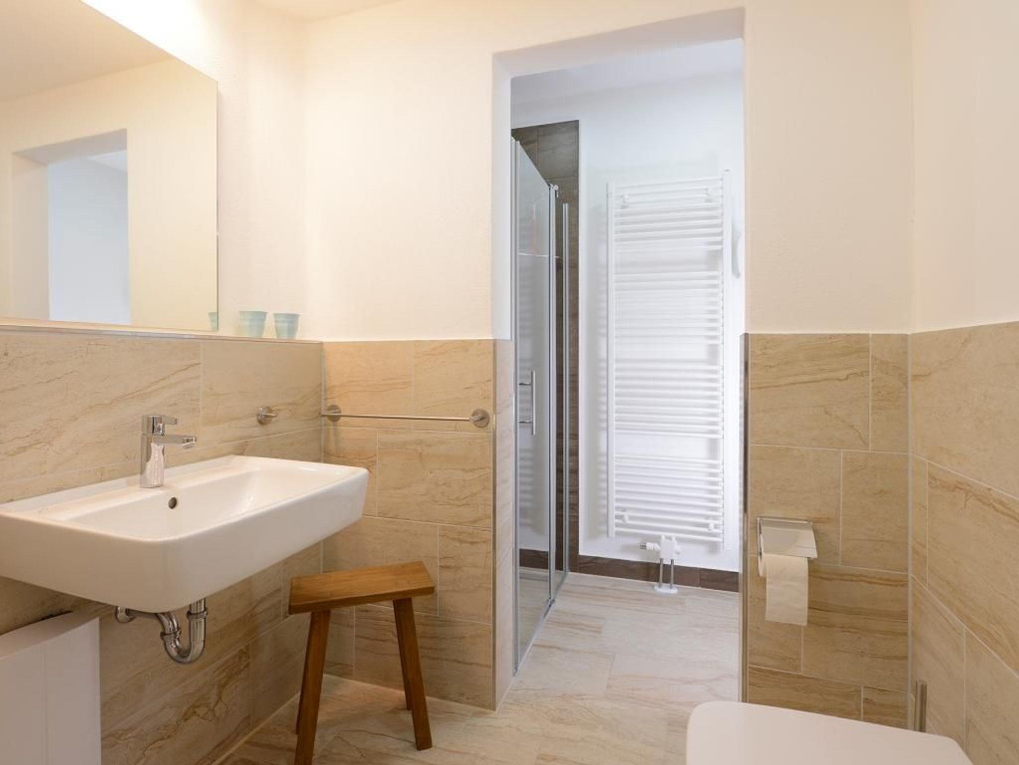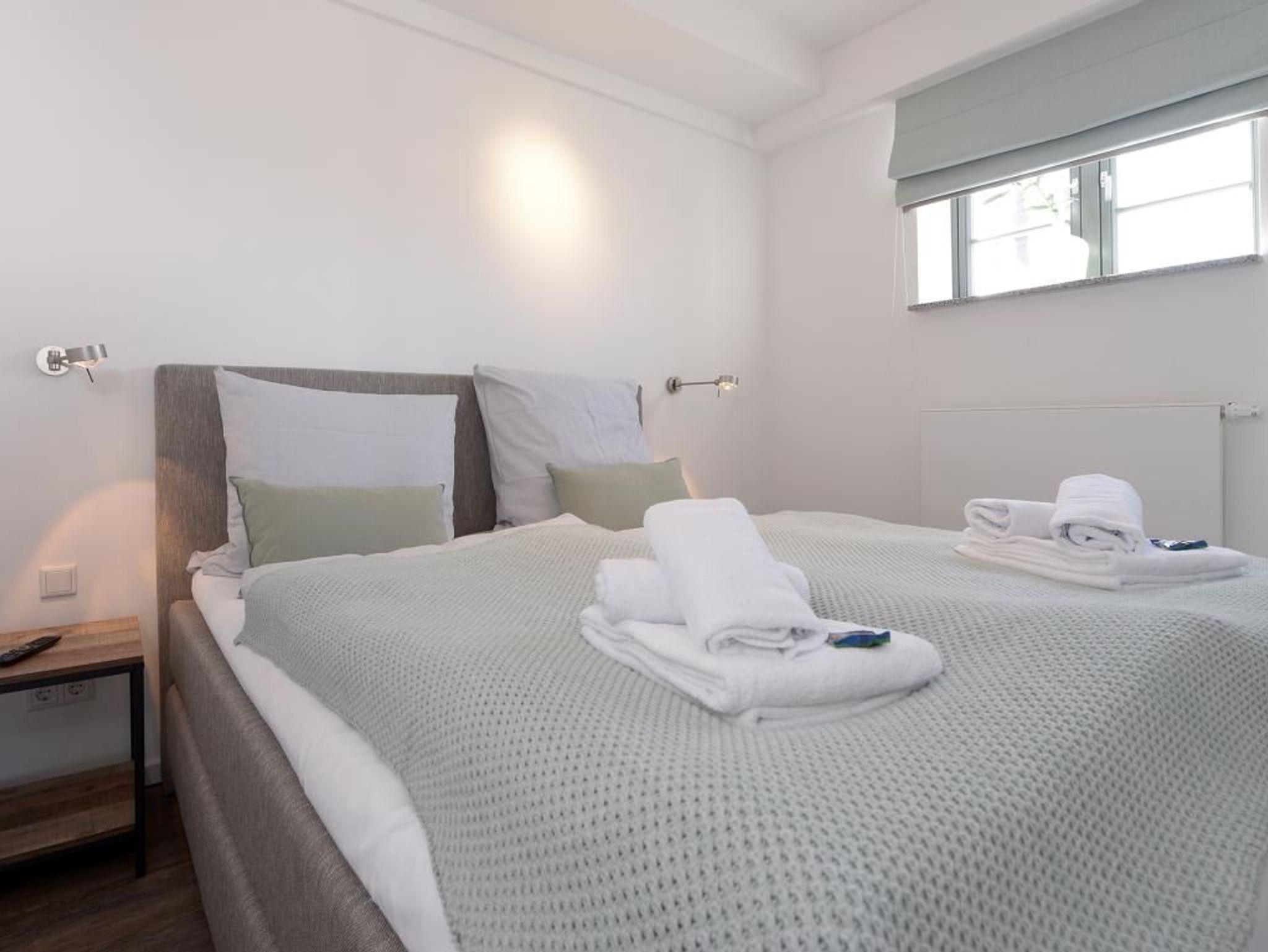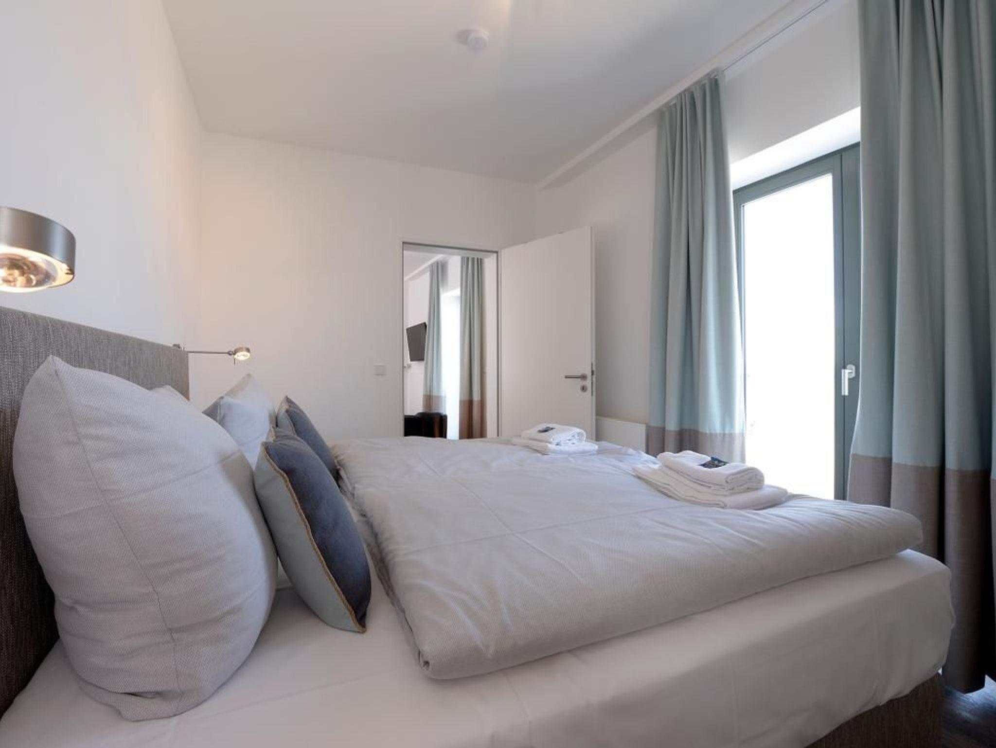 Appartementhaus mit 48 Appartements. Das hochwertig eingerichtete 3-Zimmer-Appartement mit einer Größe von 63 m² befindet sich in der 3. Etage des Speichers. Bis zu 4 Personen können hier einen Urlaub der Extraklasse verbringen. Der kombinierte Wohn- und Essbereich mit Sofa, TV Gerät und Esstisch ist sehr komfortabel eingerichtet. Von hier gelangen Sie auf den nach Nord/West gerichteten Balkon und genießen einen bezaubernden Blick über den Wismarer Hafen. Die separate Küche ist voll ausgestattet und lässt somit keine Wünsche offen. Die 2 separaten Schlafzimmer sind jeweils mit einem Doppelbett, einem Kleiderschrank und einem Fernseher ausgestattet. Das moderne Duschbad rundet die exklusive Einrichtung ab. Bei Anreise sind 2 Betten bezogen und Handtücher liegen für Sie bereit. WLAN steht Ihnen kostenfrei zur Verfügung.