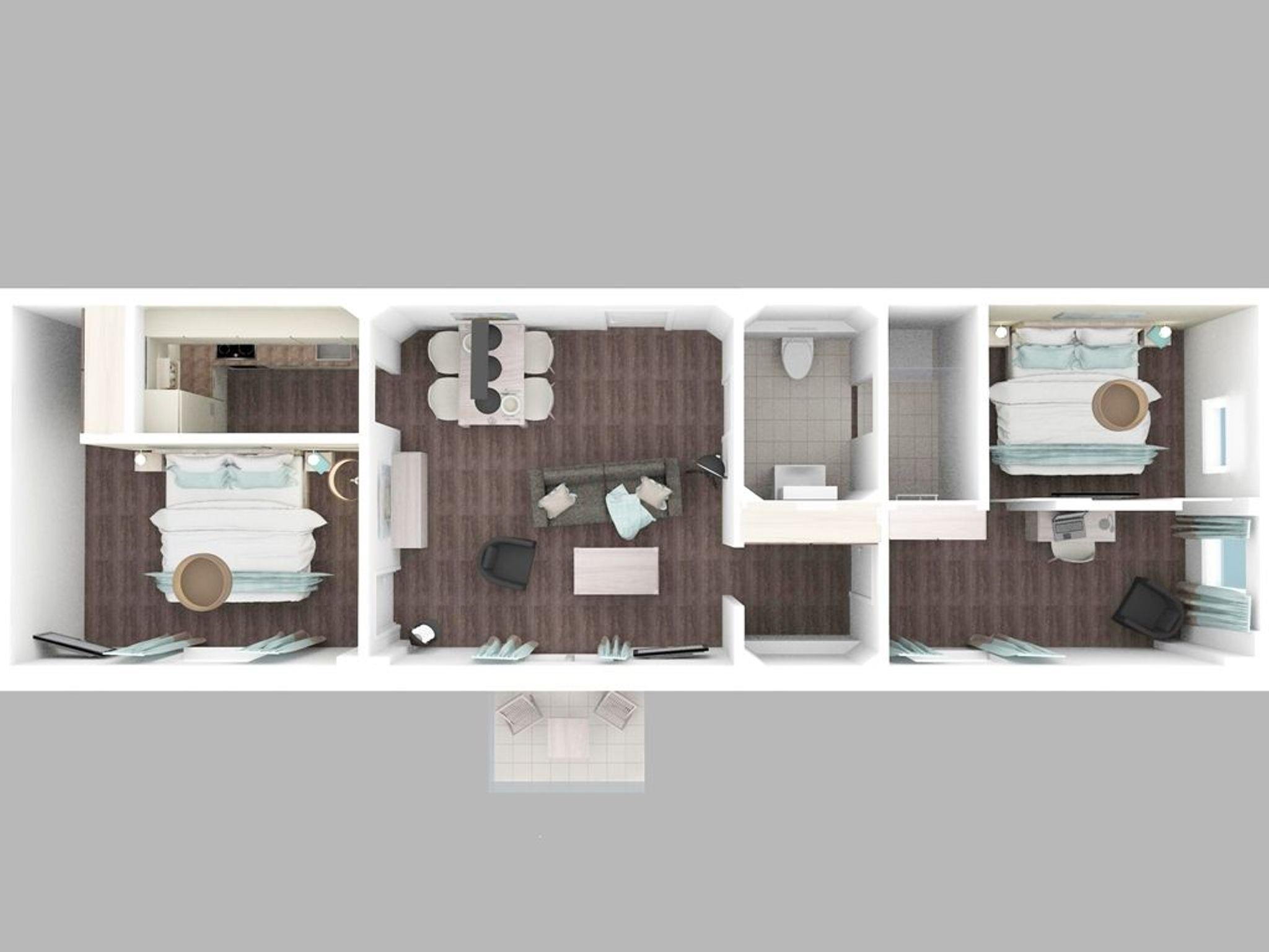 Das hochwertig eingerichtete 3-Zimmer-Appartement mit einer Größe von 63 m² befindet sich in der 3. Etage des Speichers. Bis zu 4 Personen können hier einen Urlaub der Extraklasse verbringen. Der kombinierte Wohn- und Essbereich mit Sofa, TV Gerät und Esstisch ist sehr komfortabel eingerichtet. Von hier gelangen Sie auf den nach Nord/West gerichteten Balkon und genießen einen bezaubernden Blick über den Wismarer Hafen. Die separate Küche ist voll ausgestattet und lässt somit keine Wünsche offen. Die 2 separaten Schlafzimmer sind jeweils mit einem Doppelbett, einem Kleiderschrank und einem Fernseher ausgestattet. Das moderne Duschbad rundet die exklusive Einrichtung ab. Bei Anreise sind 2 Betten bezogen und Handtücher liegen für Sie bereit. WLAN steht Ihnen kostenfrei zur Verfügung.