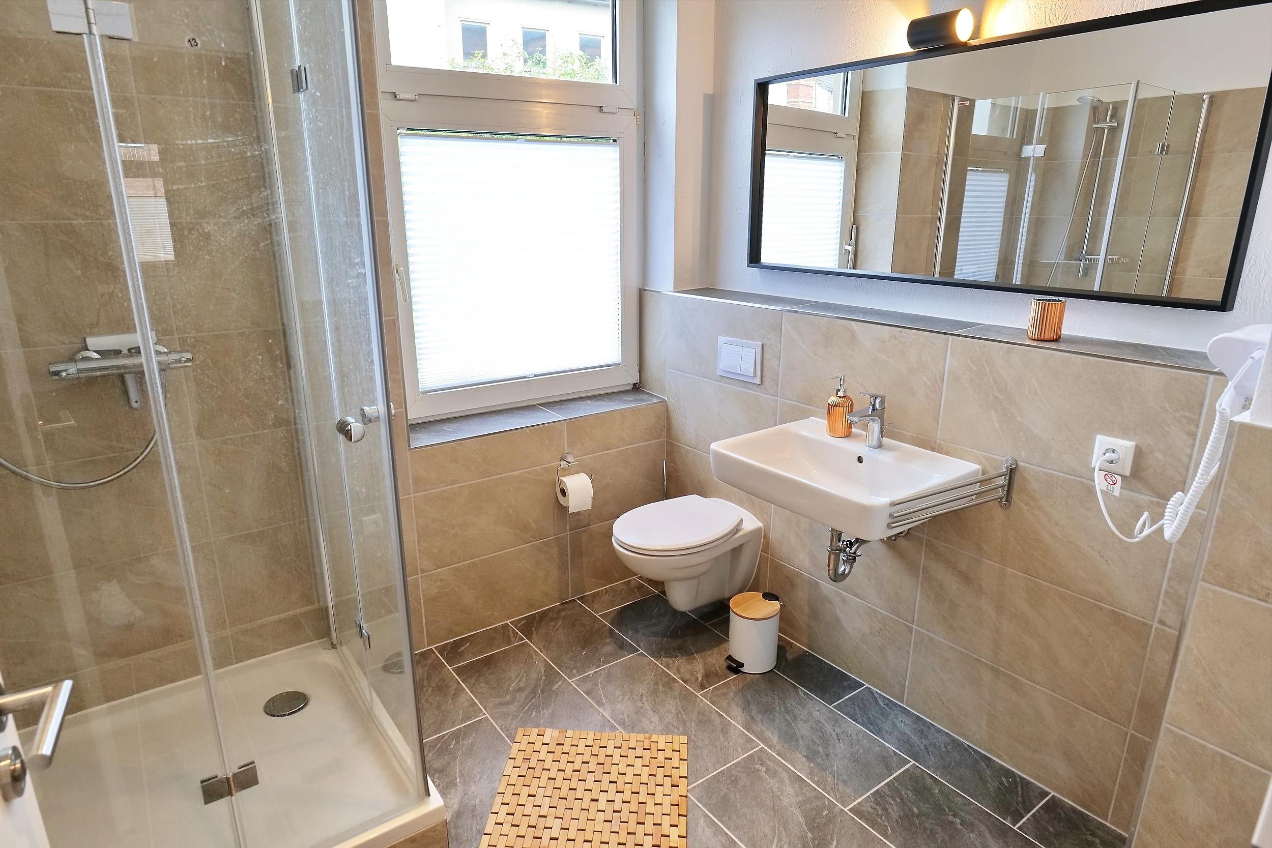 - Duschbad mit Dusche, WC, Spiegel und Ablage