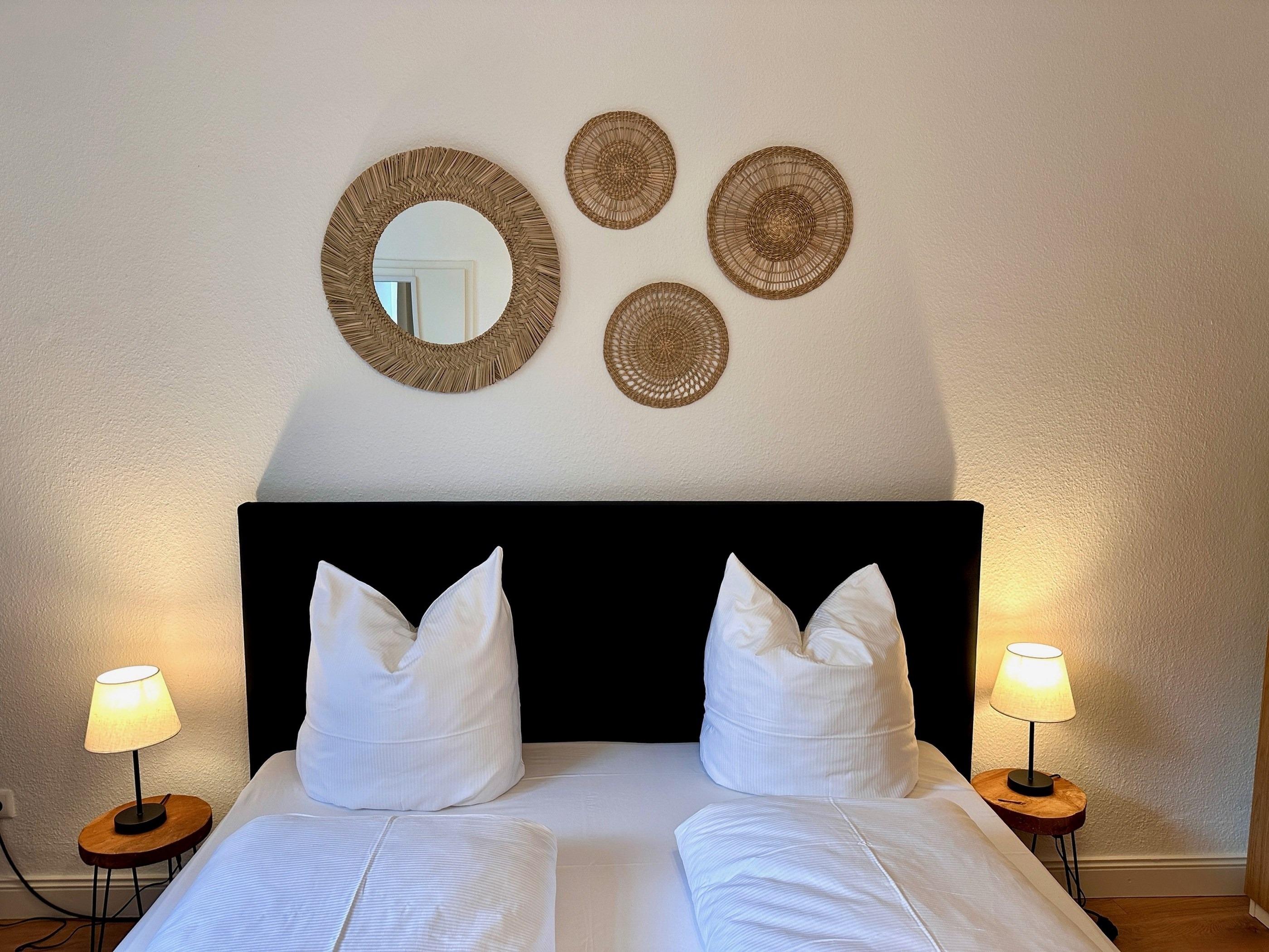 1 getrennes Schlafzimmer mit großem Boxspringbett (1,80 x 2,00 m), sowie ausreichend Stauraum für Ihre Kleidung.